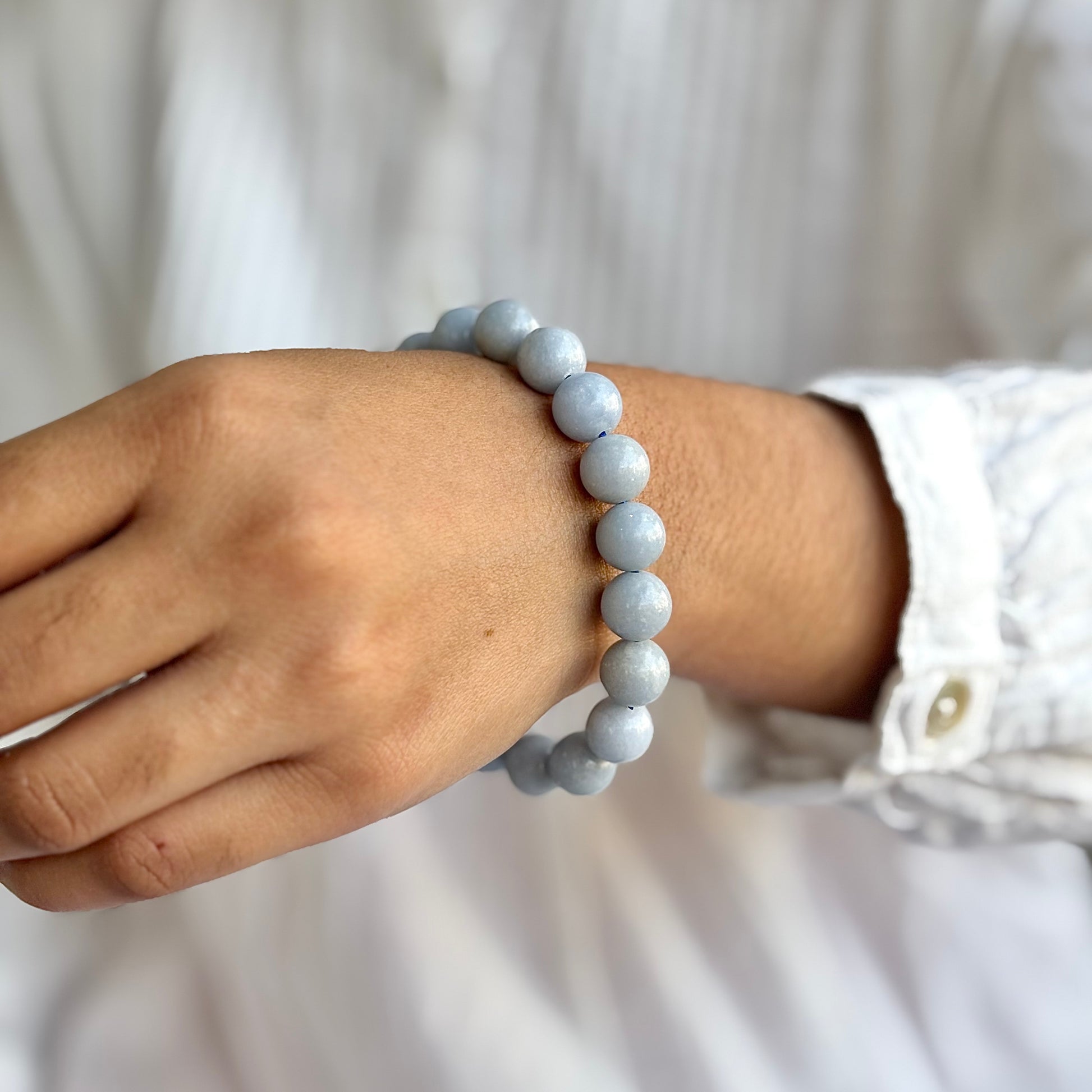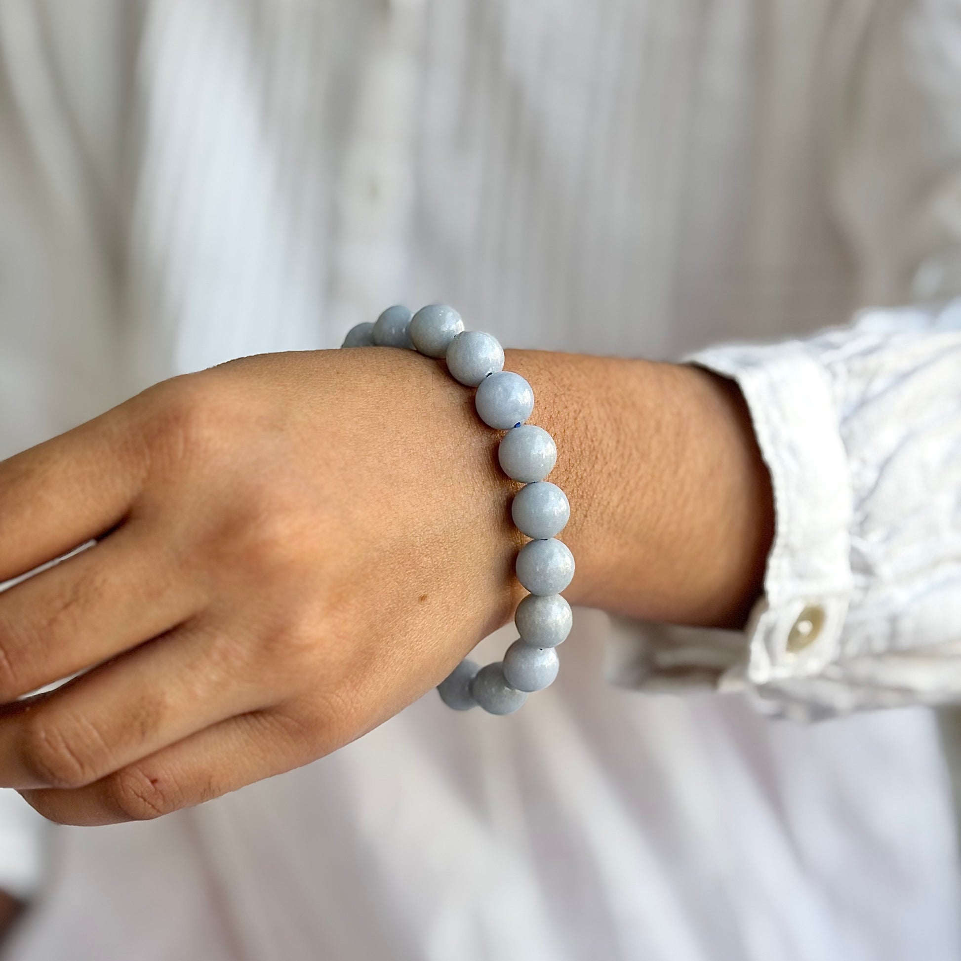 Angelite Bead Bracelet - 10mm | Stone to Connect with Spirit Guides