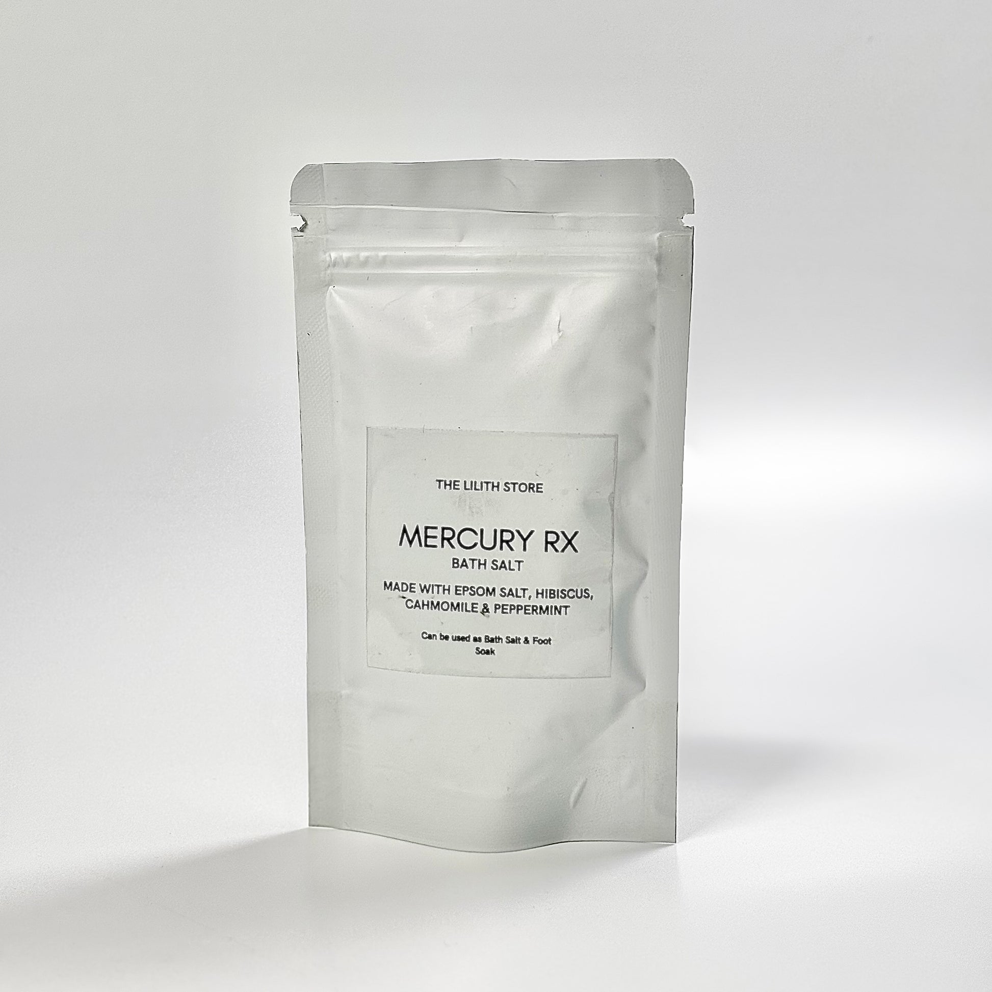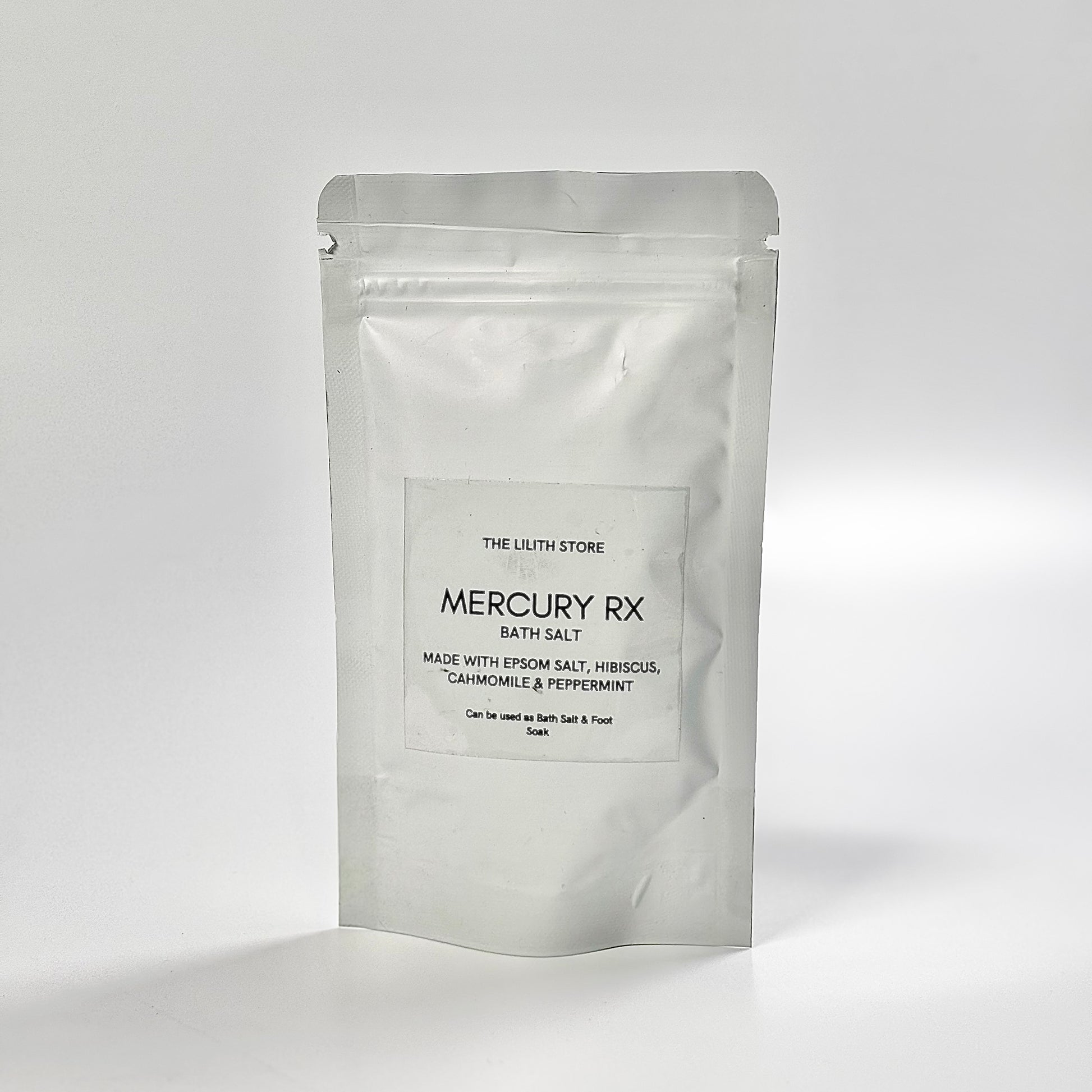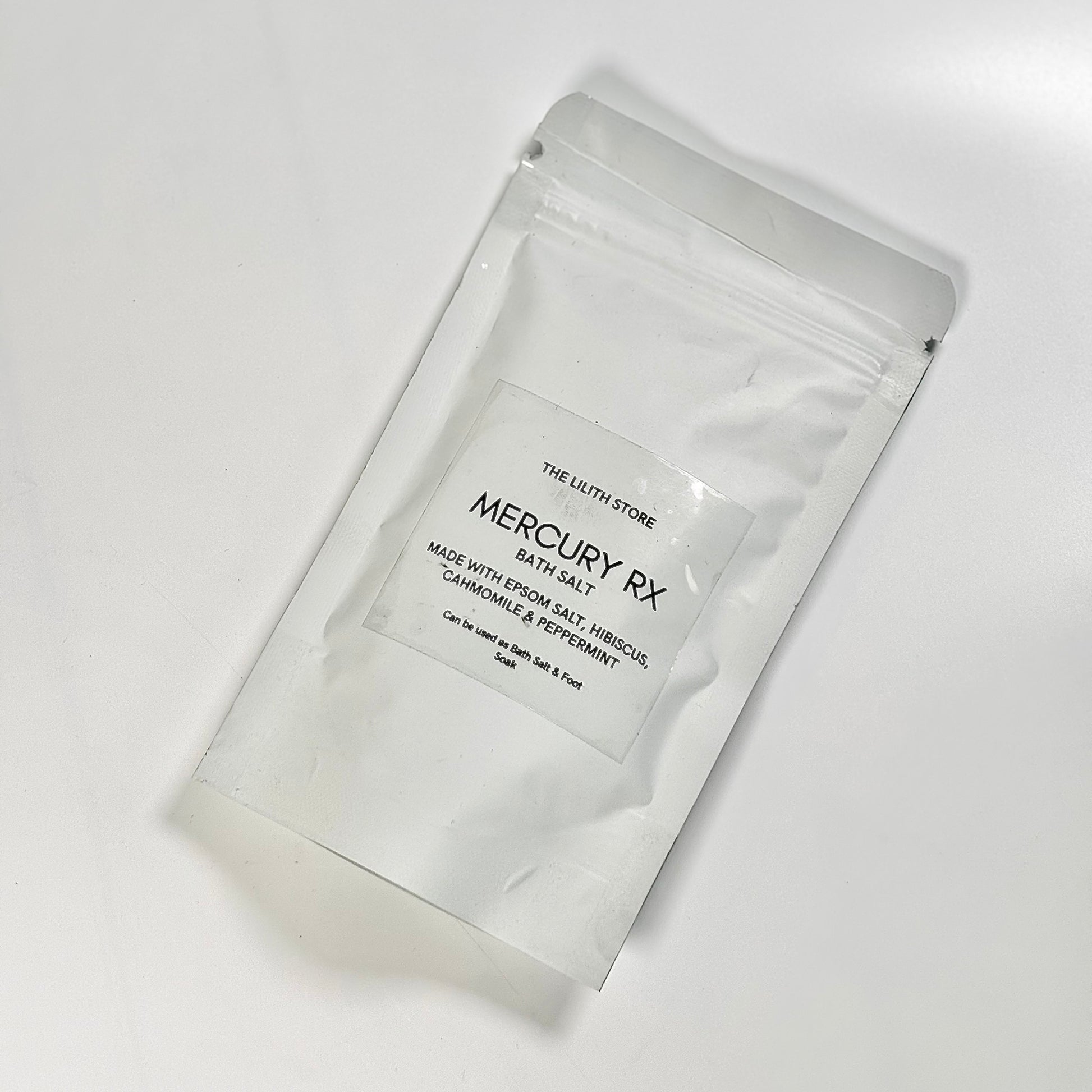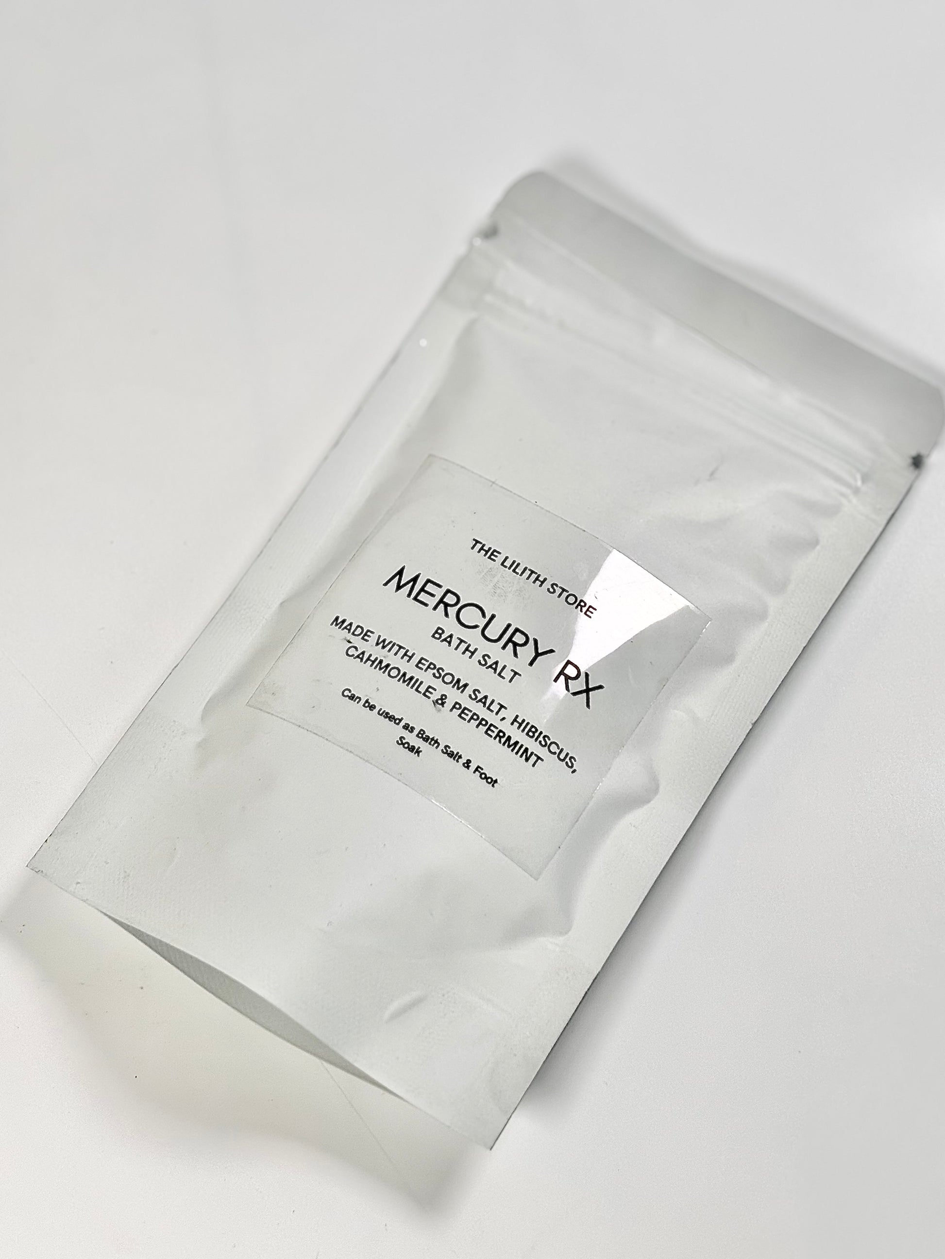 A gentle mineral-salt soak with hibiscus and chamomile. Dissolve in warm bath water or a foot basin to create a calm, reflective mood for Mercury Retrograde—supporting unwinding, review, and a refreshed vibe.