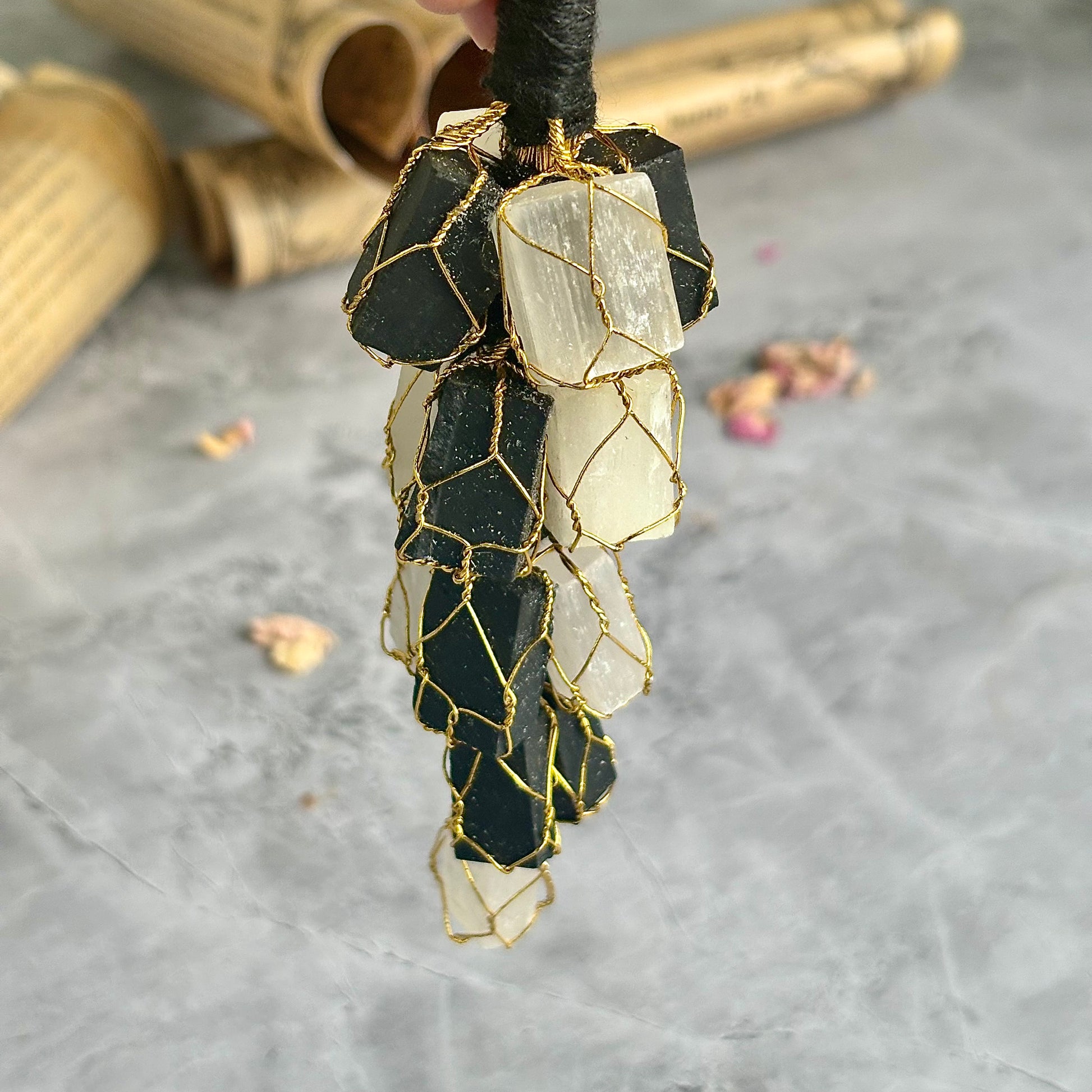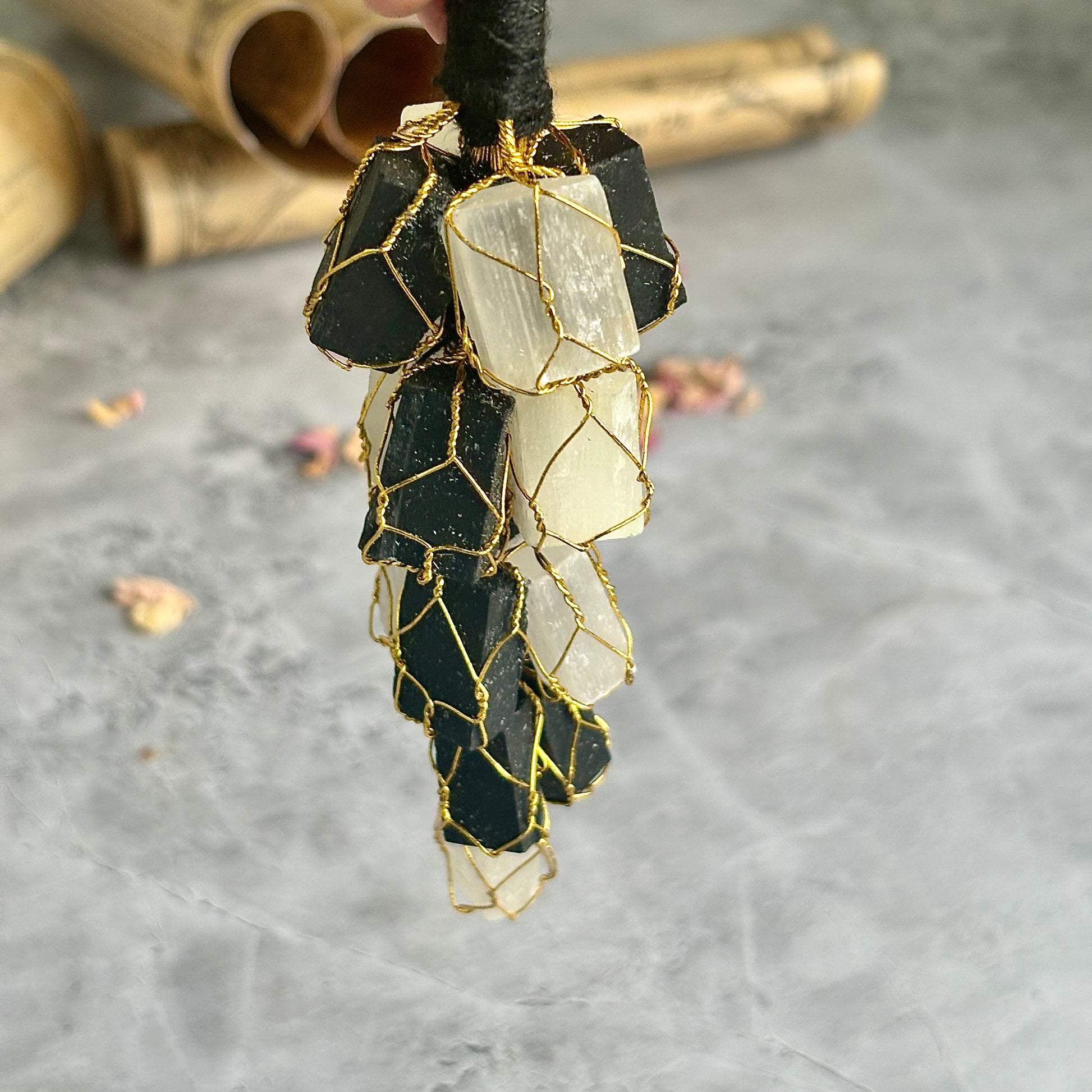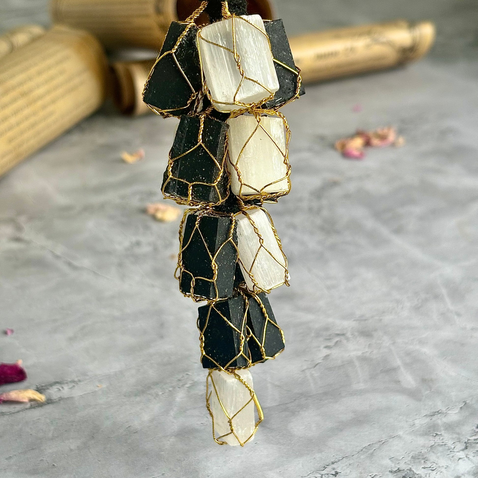 Black Tourmaline + Selenite Chunks Door Hanging | Protection