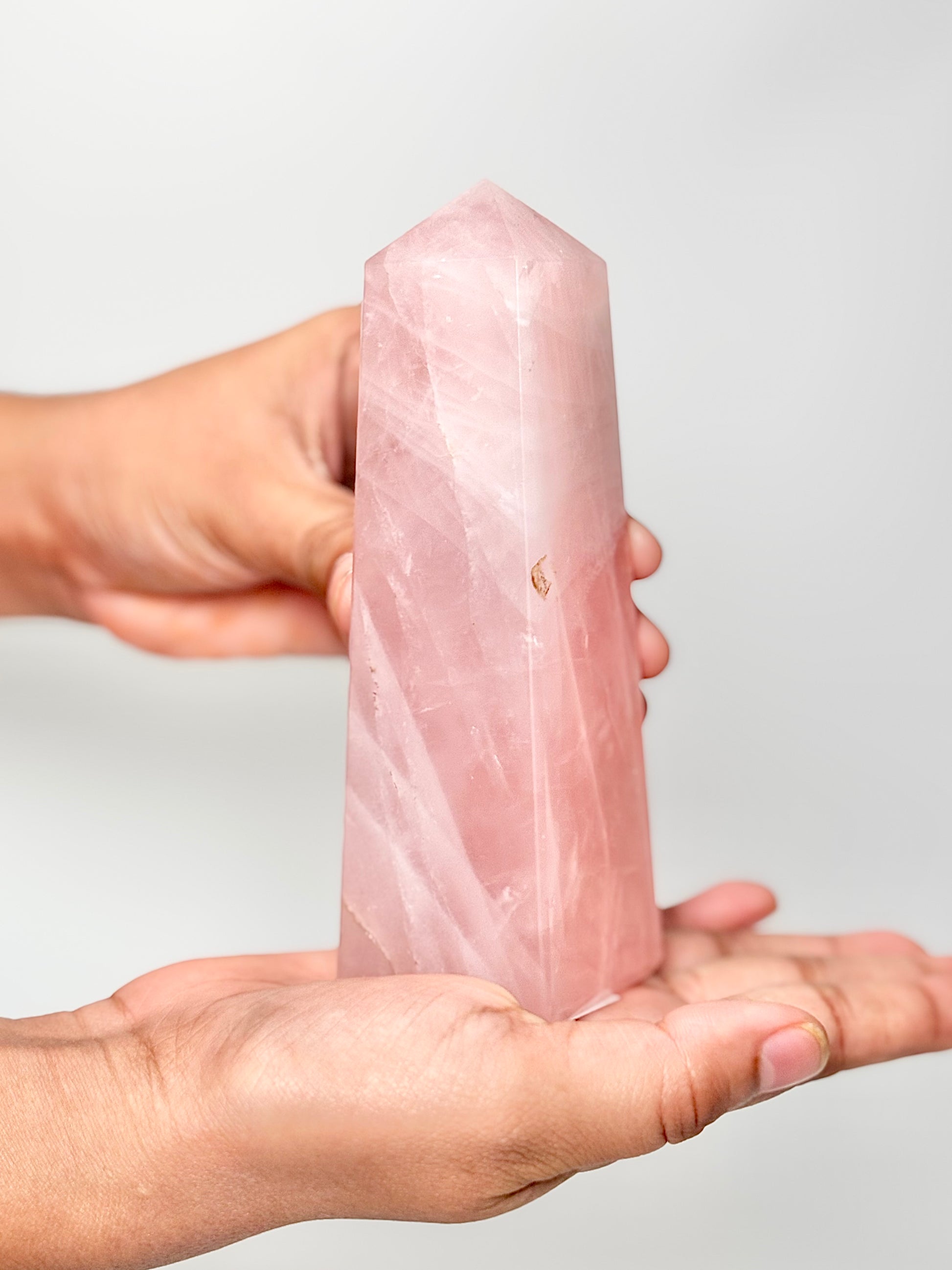 Four Facet Rose Quartz Tower – 380g - Soft Elegance & Balanced Design