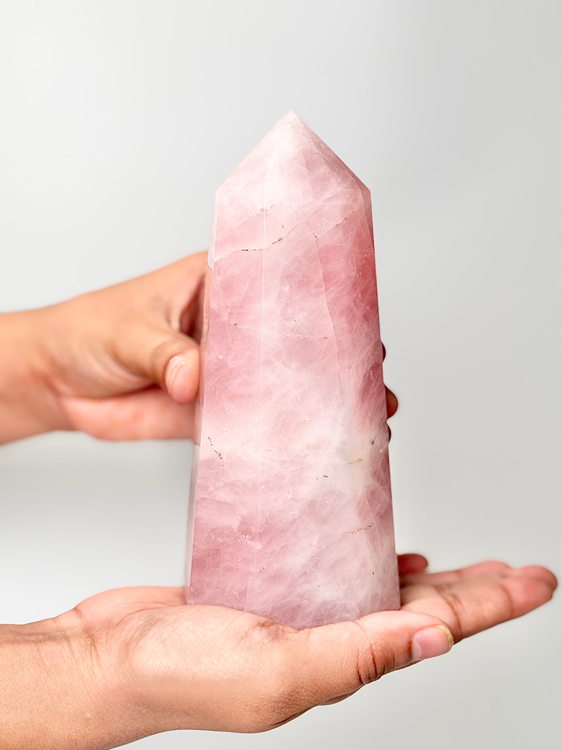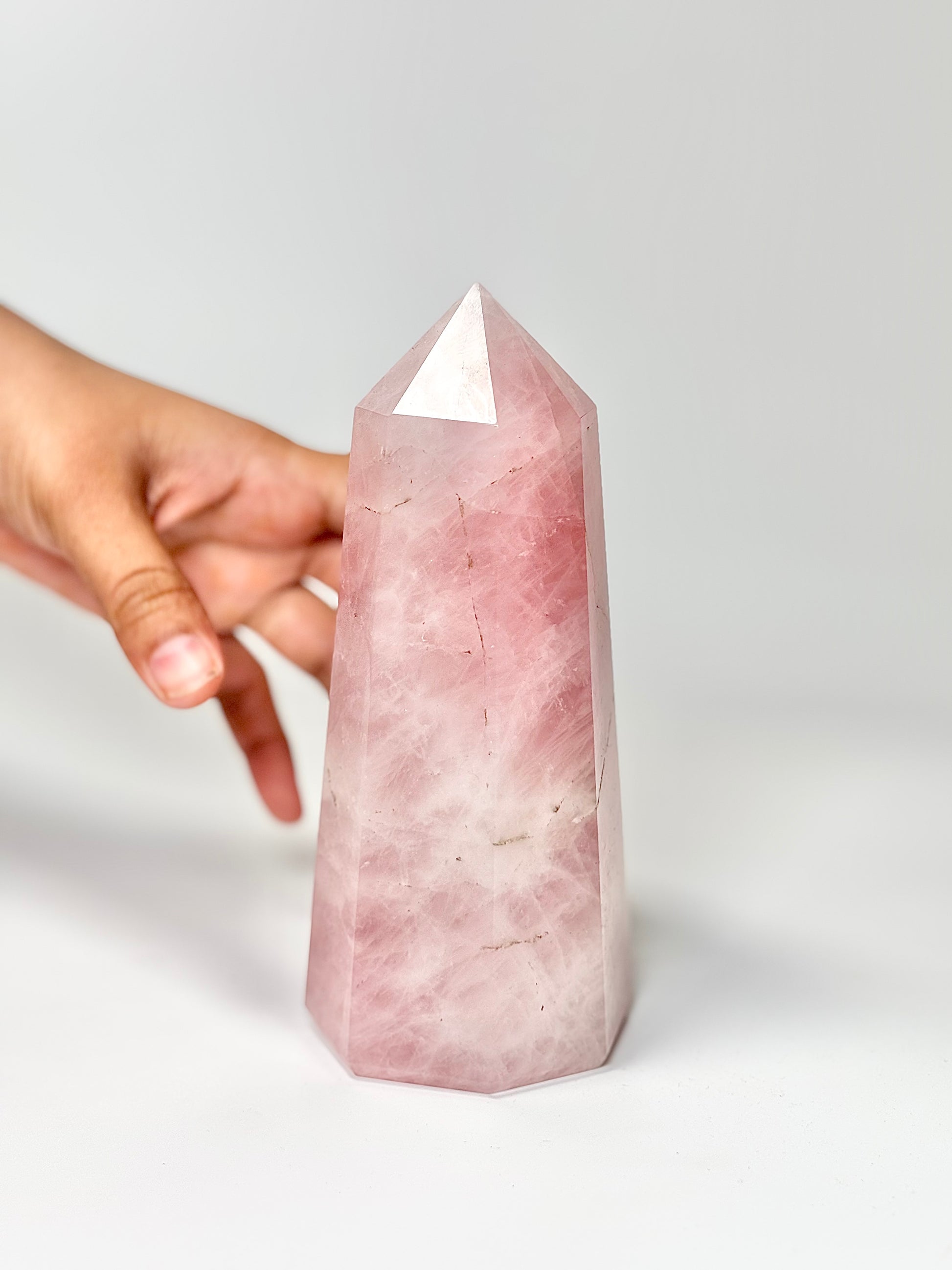 Eight Facet Rose Quartz Tower – 865g - Elegance, Warmth & Gentle Charm
