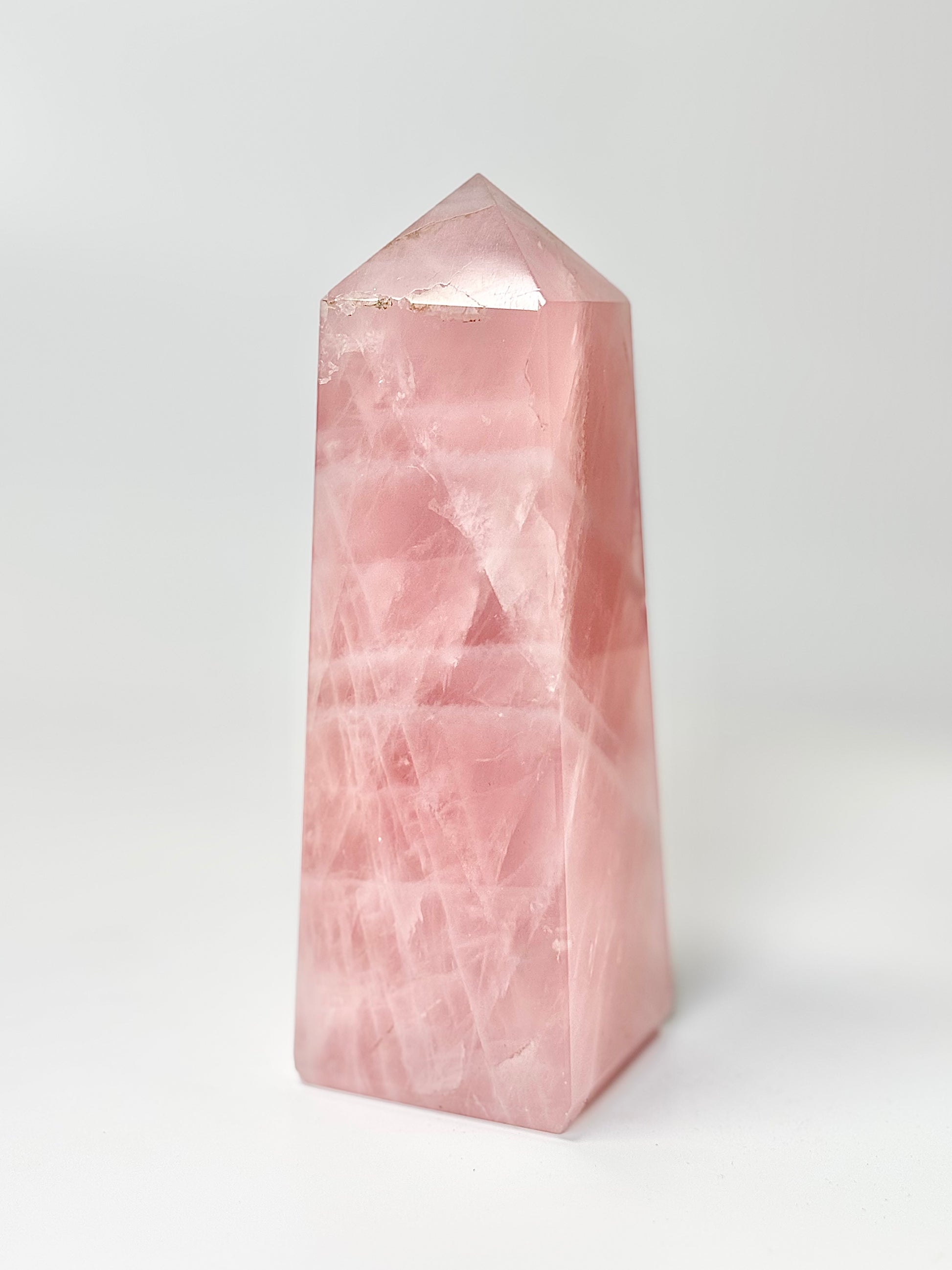 Four Facet Rose Quartz Tower – 820g - Soft Elegance & Balanced Design