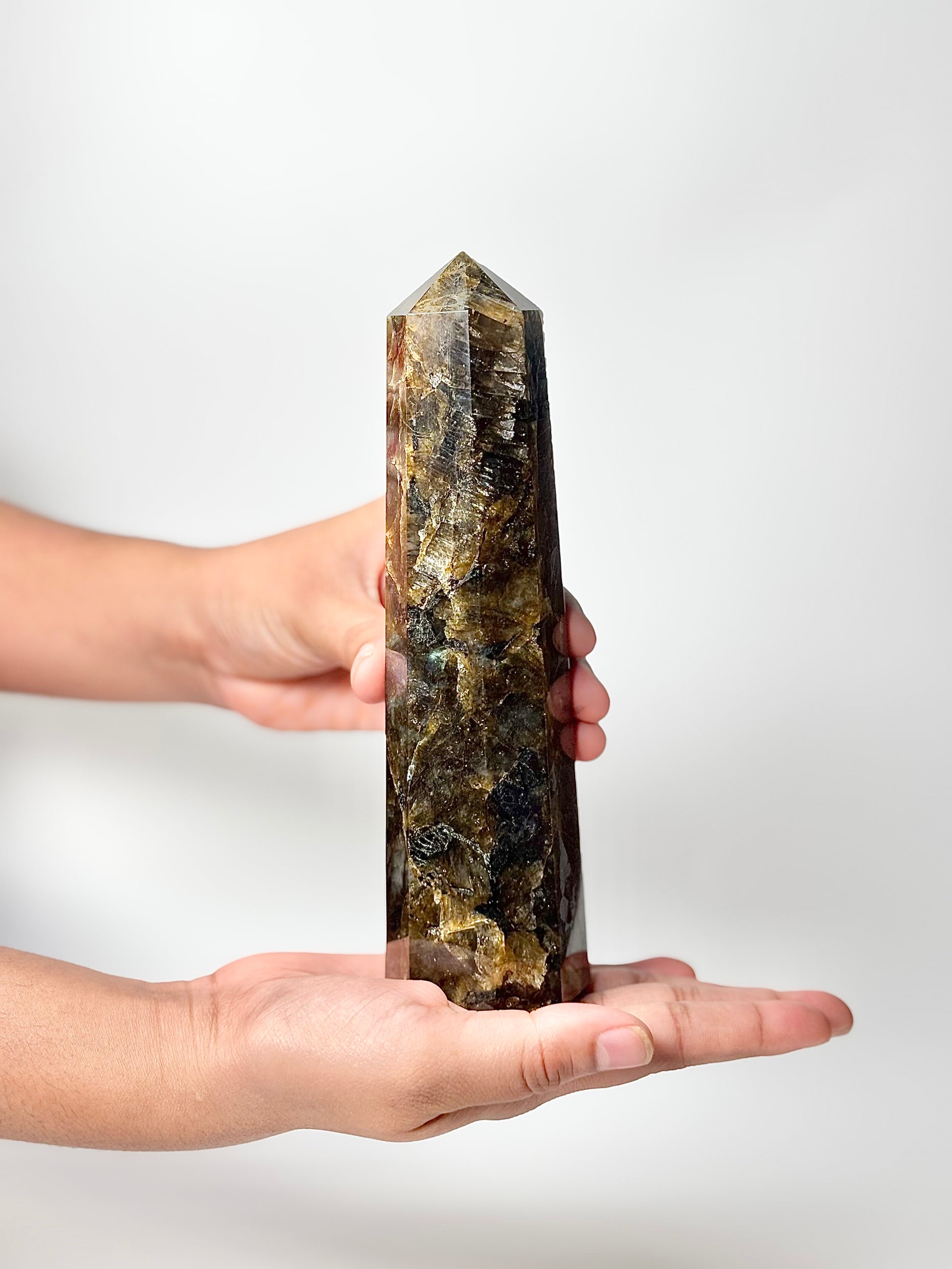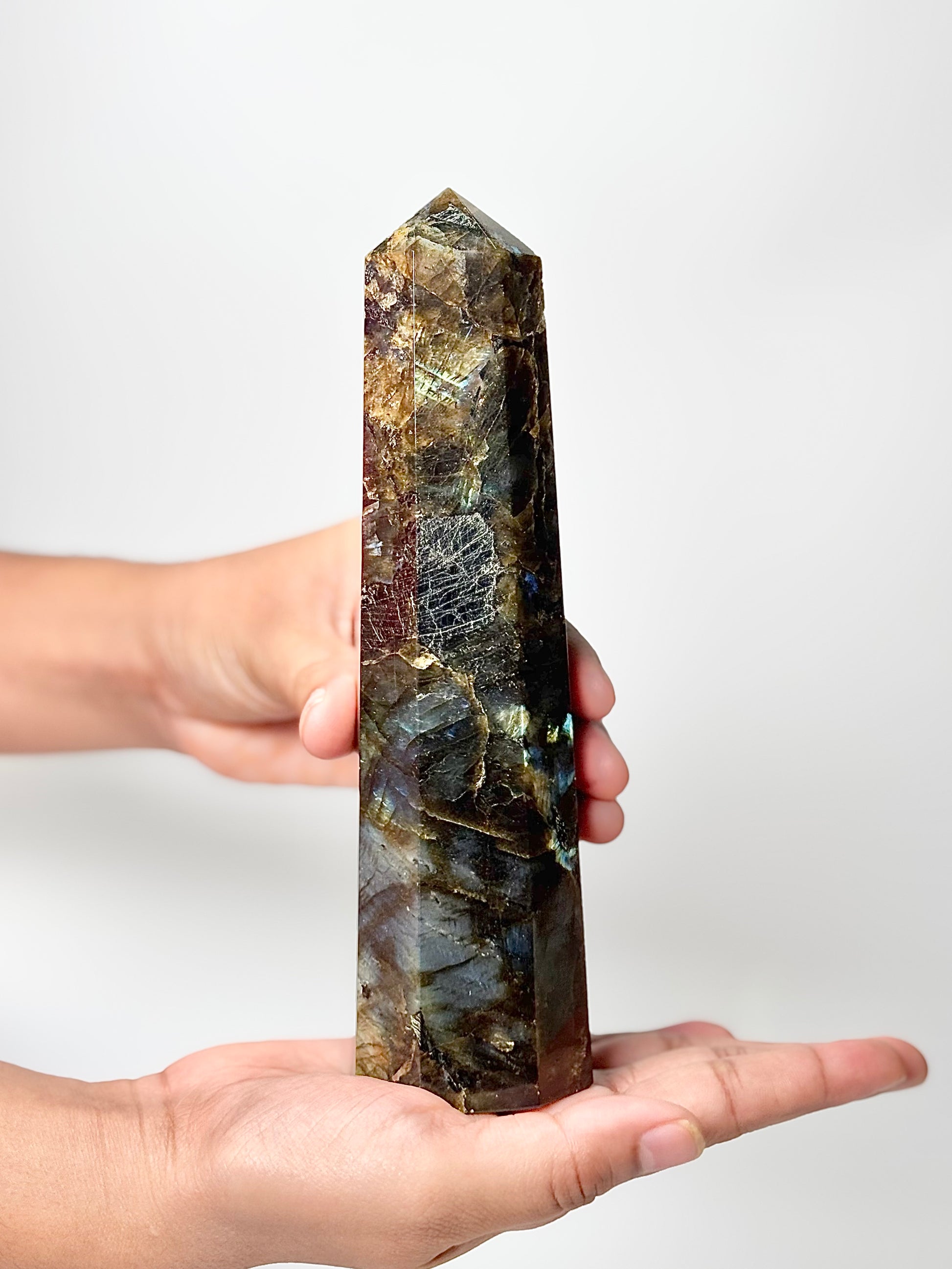 Eight Facet Labradorite Tower – 654g - Elegance, Depth & Reflective Beauty