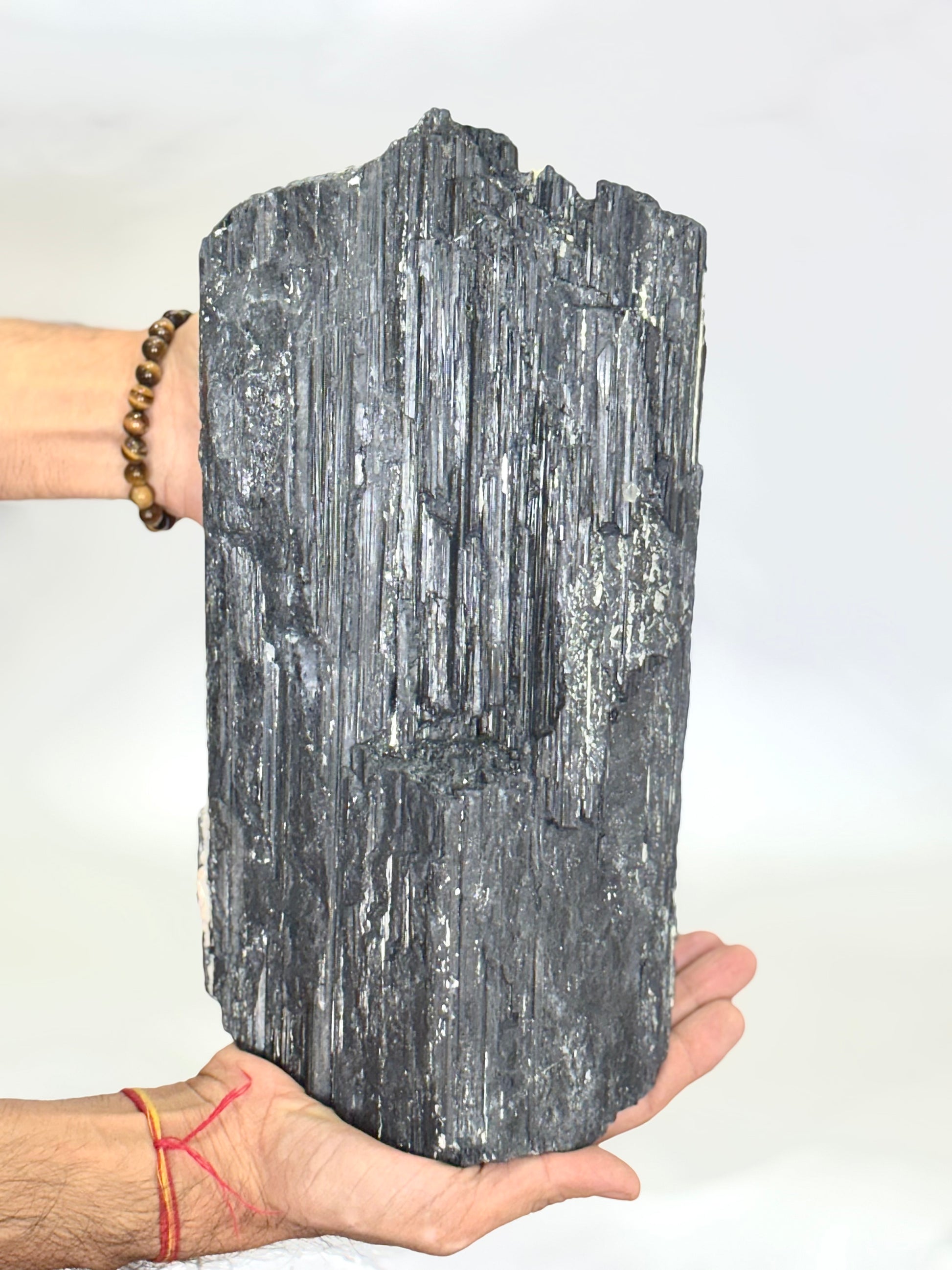 This substantial piece of raw Black Tourmaline weighs over 7.5 Kg and showcases the earth’s untamed beauty with rugged textures and natural inclusions. Known for its grounding and protective qualities, it’s ideal for placement near entryways, workspaces, or meditation areas. Minor surface chipping may occur during transit due to its raw and heavy nature—this is a natural characteristic of the stone.