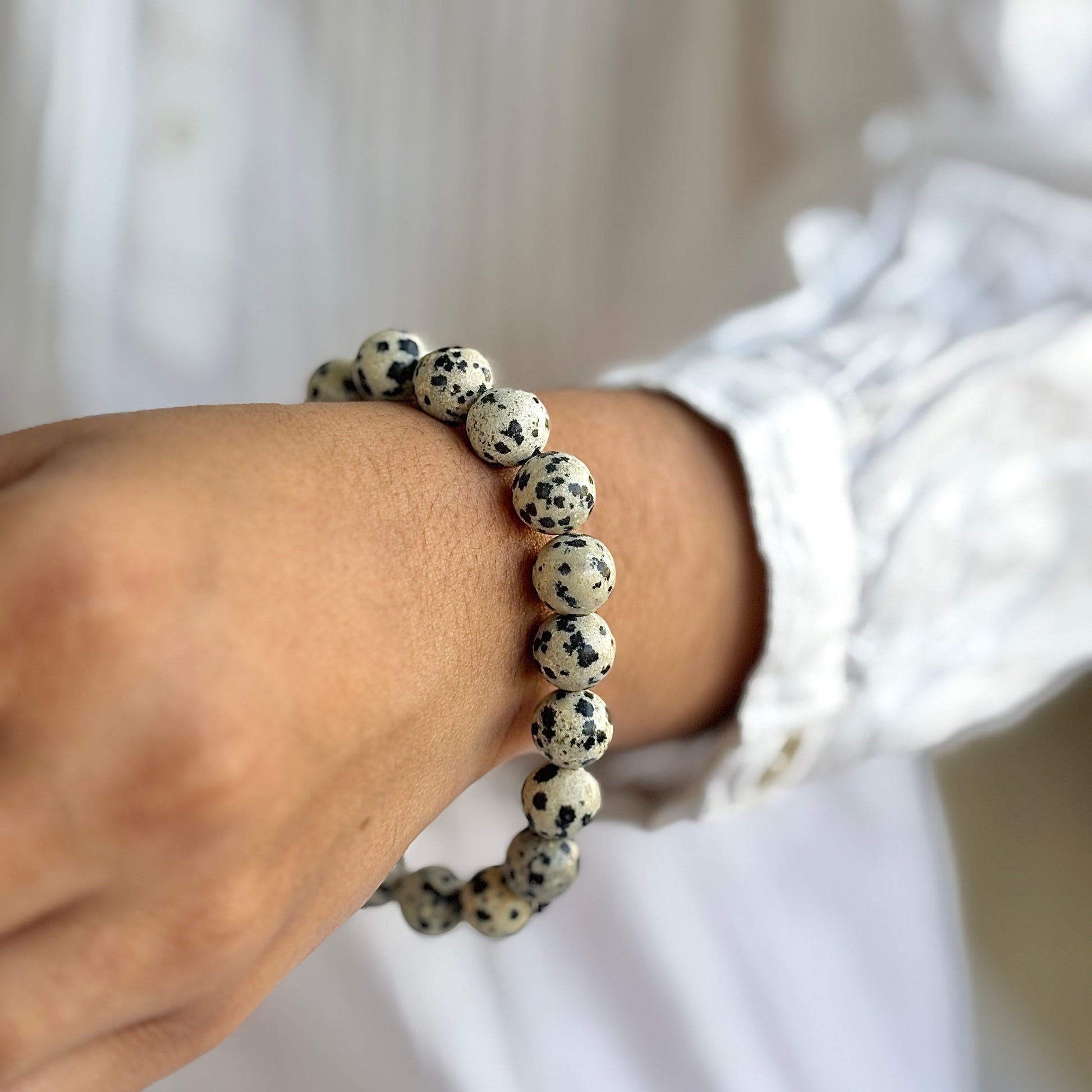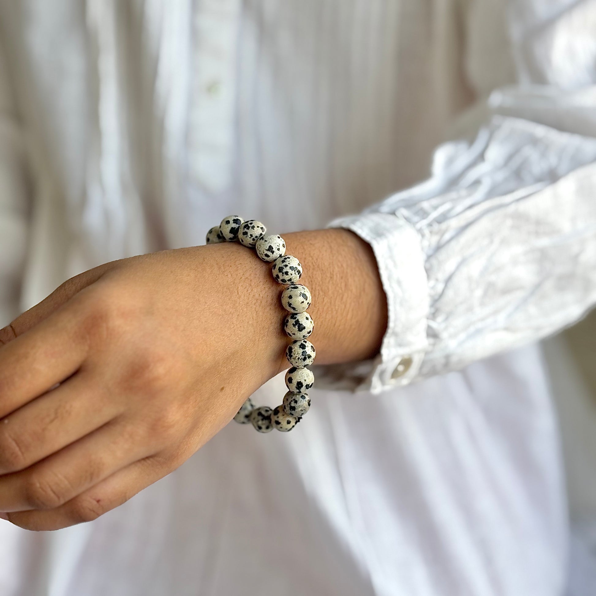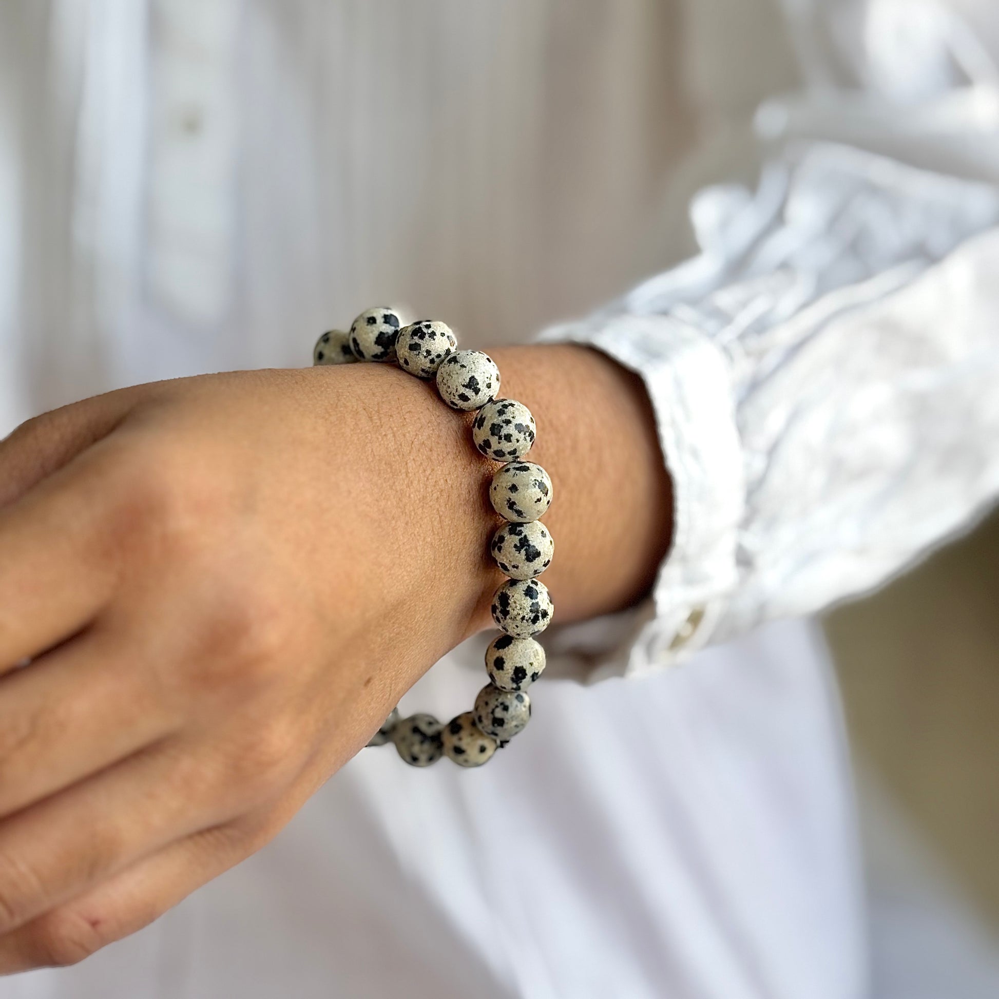 Dalmatian Jasper Bead Bracelet - 10mm | Promotes Joy & Release Negativity