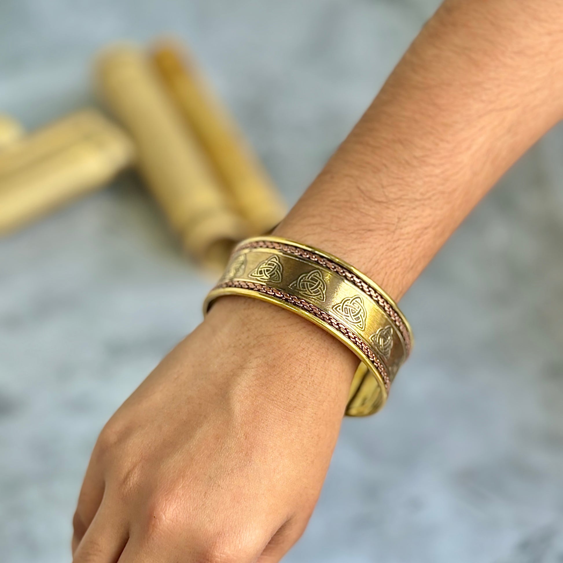 Gold finish Copper Bracelet with Triquetra Symbol