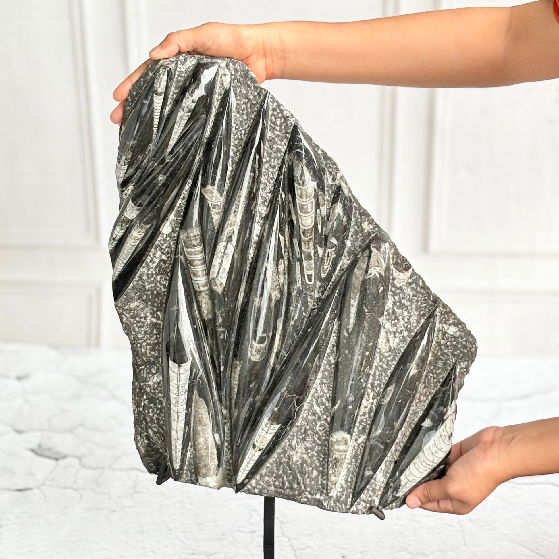 Orthoceras Free Standing Slab with Stand - 6.5 Kg | Associated with Telepathy, Grounding , Transformation & Past lives