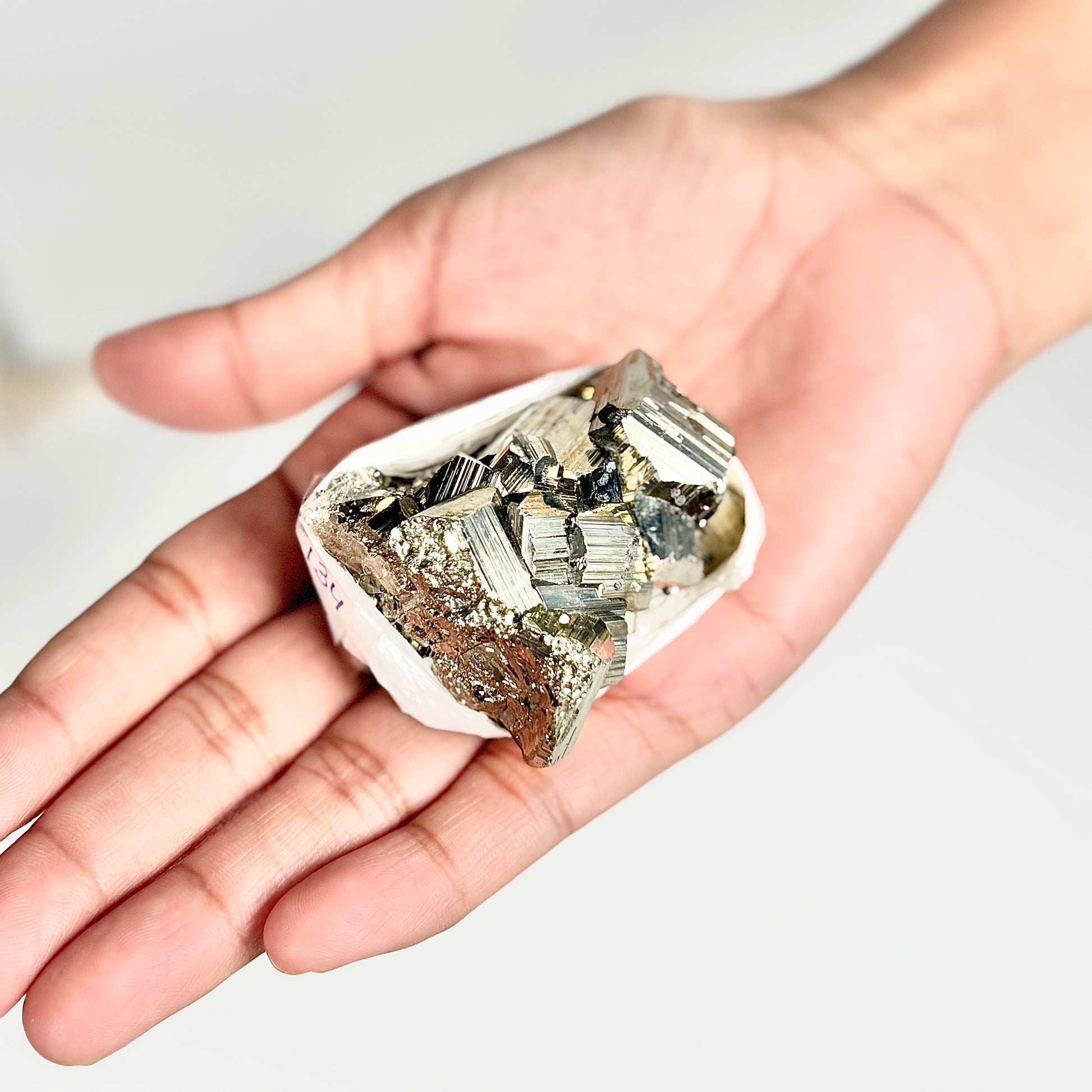 The Peruvian Pyrite Cluster is a natural formation of metallic golden cubes, admired for its geometric beauty and reflective sheen. This distinctive mineral is often associated with qualities such as motivation, confidence, and a strong, uplifting presence. Its bold appearance and natural luster make it a captivating choice for display in both modern and earthy interiors, adding a touch of sophistication and intrigue.