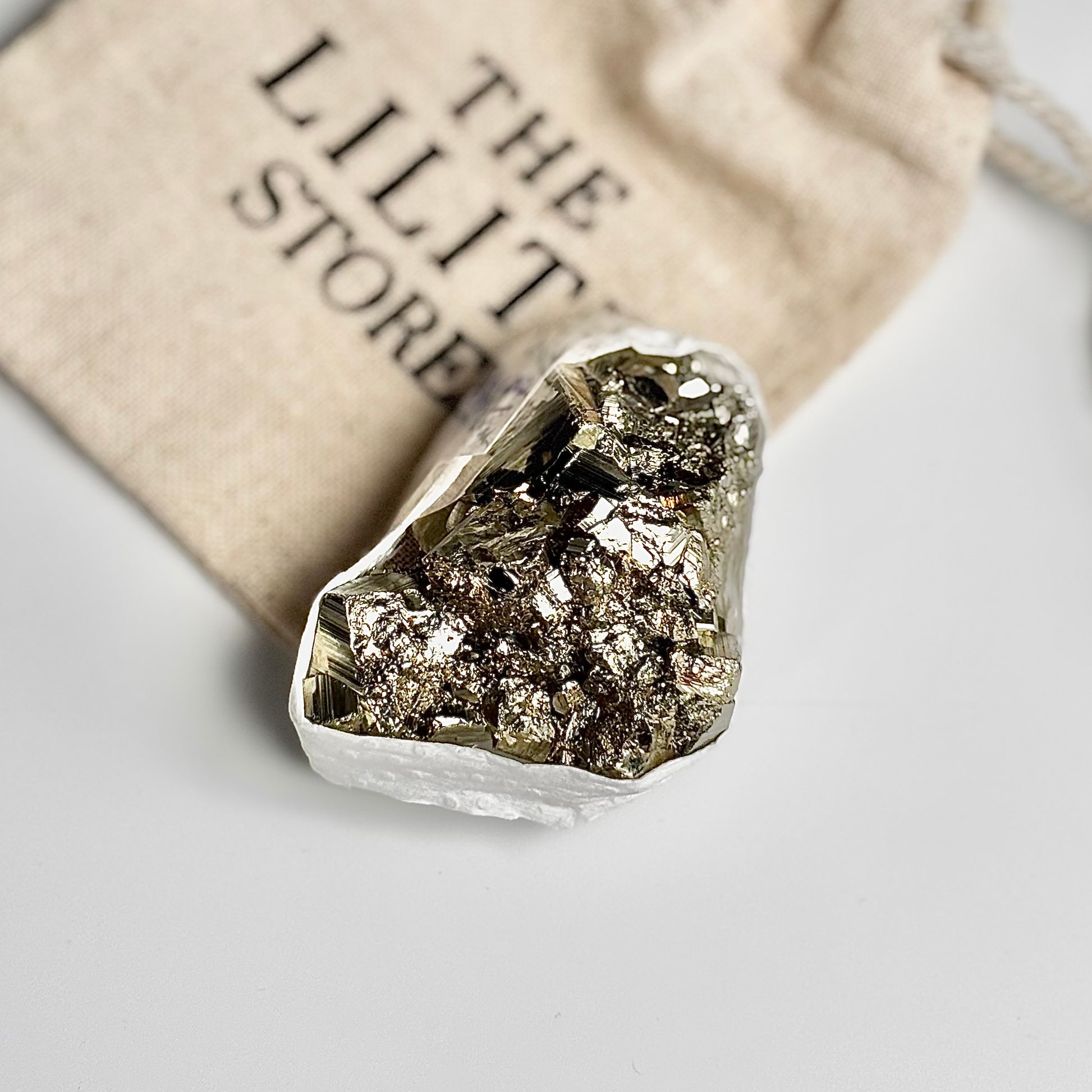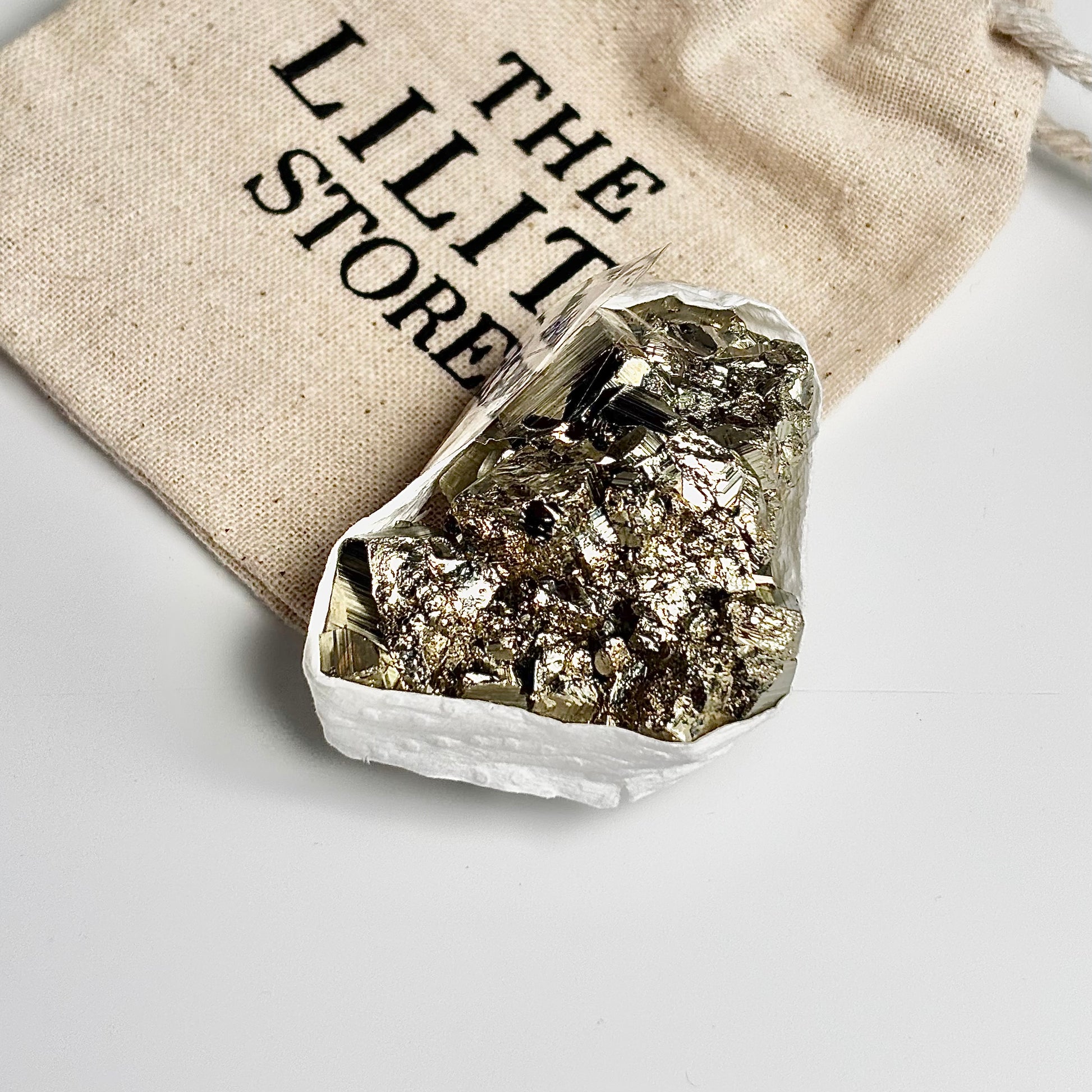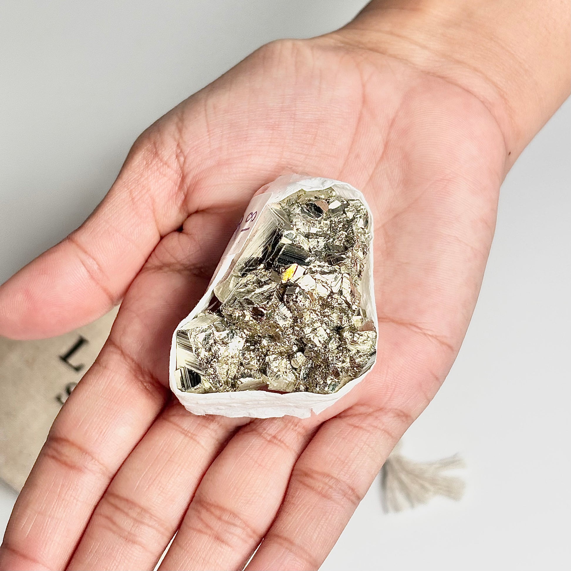 The Peruvian Pyrite Cluster is a natural formation of metallic golden cubes, admired for its geometric beauty and reflective sheen. This distinctive mineral is often associated with qualities such as motivation, confidence, and a strong, uplifting presence. Its bold appearance and natural luster make it a captivating choice for display in both modern and earthy interiors, adding a touch of sophistication and intrigue.