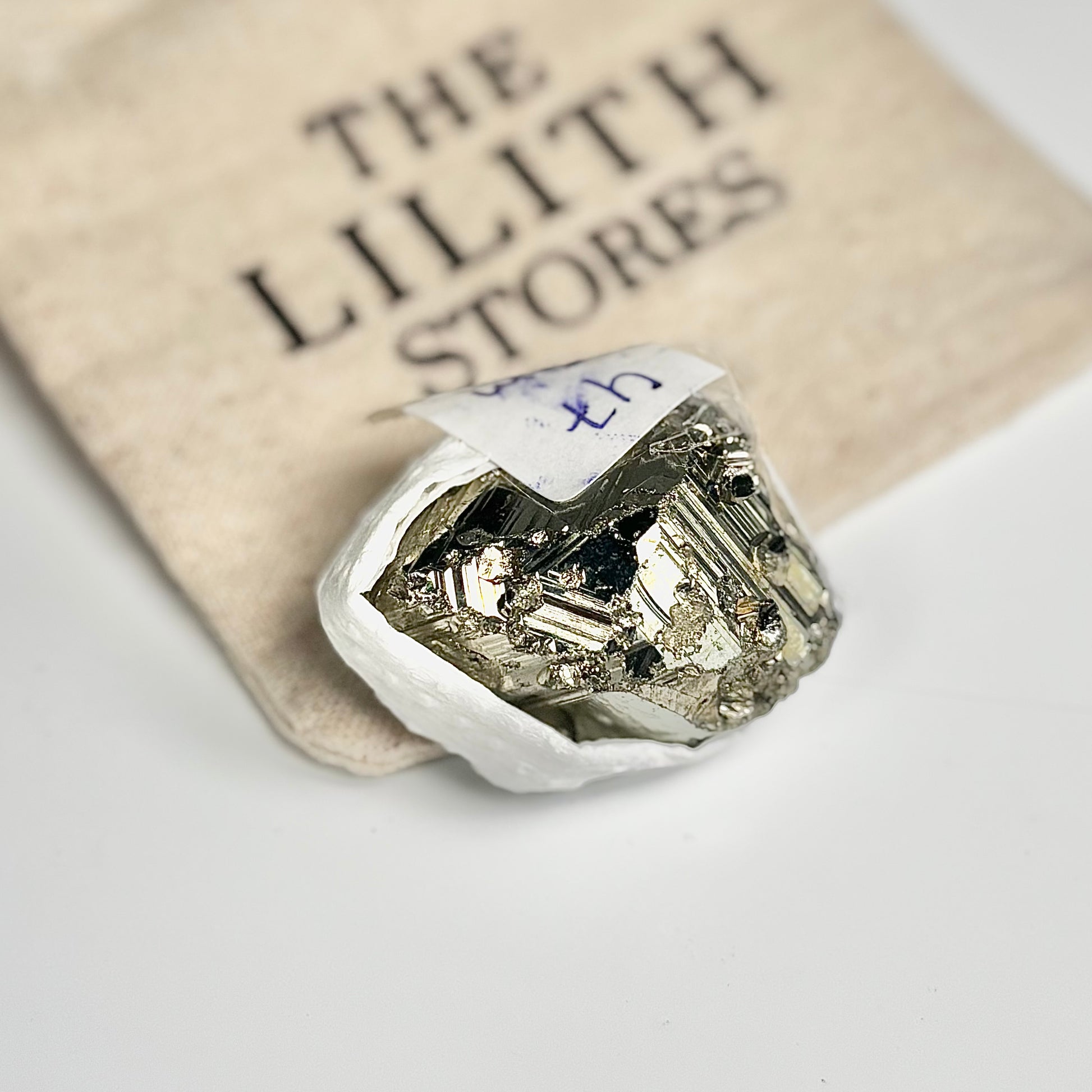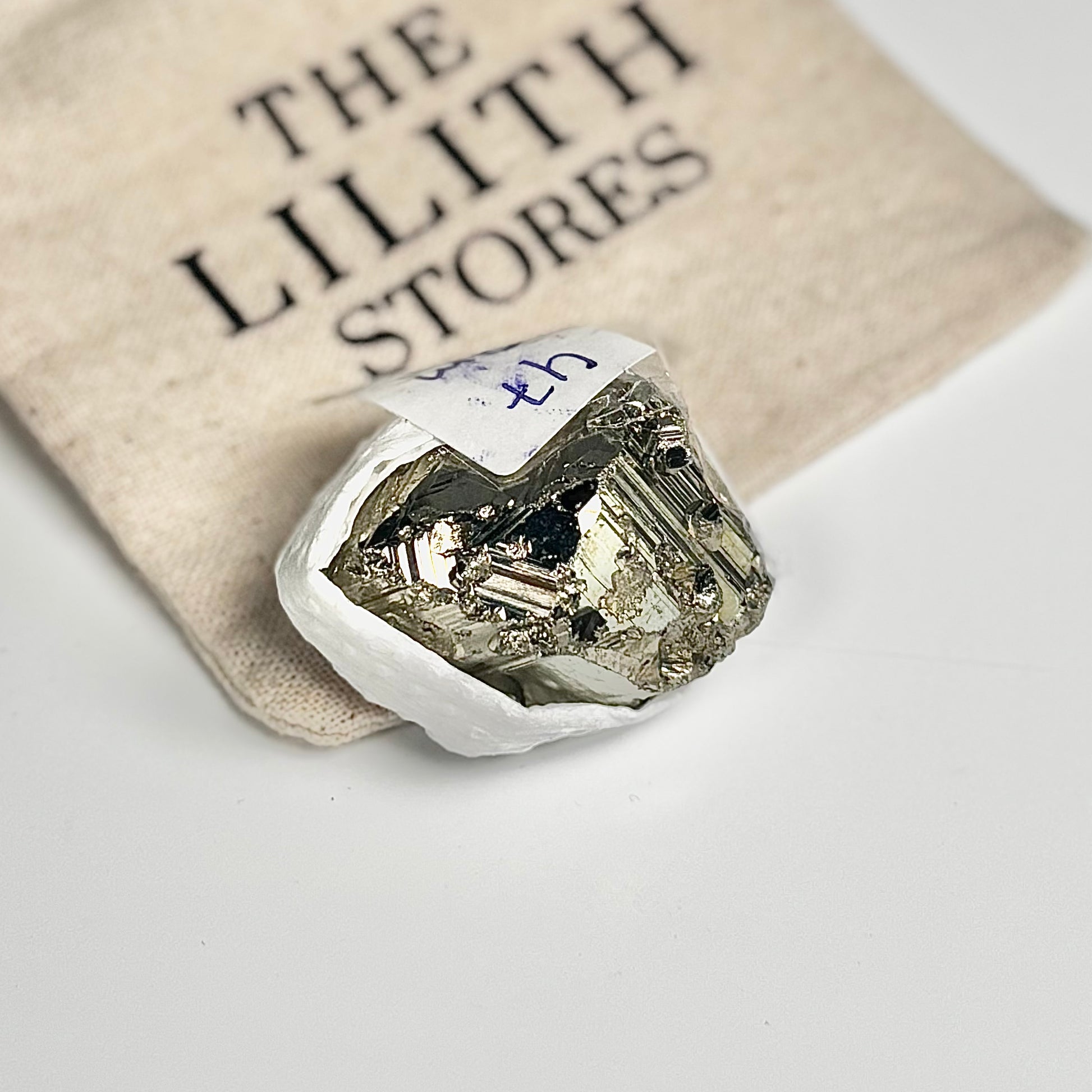 The Peruvian Pyrite Cluster is a natural formation of metallic golden cubes, admired for its geometric beauty and reflective sheen. This distinctive mineral is often associated with qualities such as motivation, confidence, and a strong, uplifting presence. Its bold appearance and natural luster make it a captivating choice for display in both modern and earthy interiors, adding a touch of sophistication and intrigue.