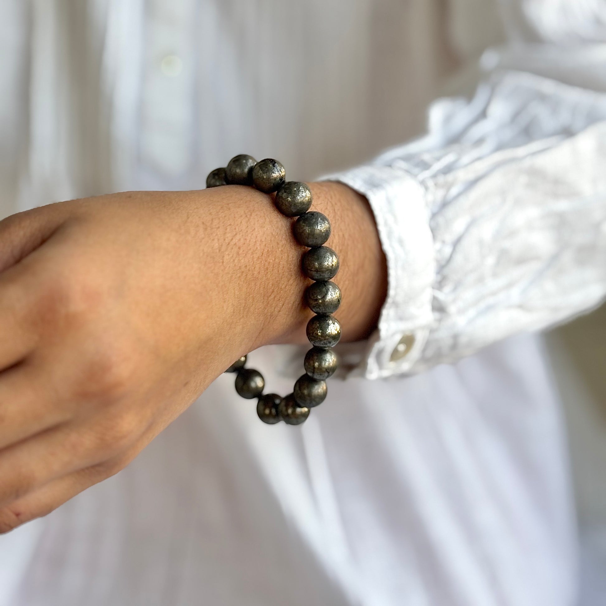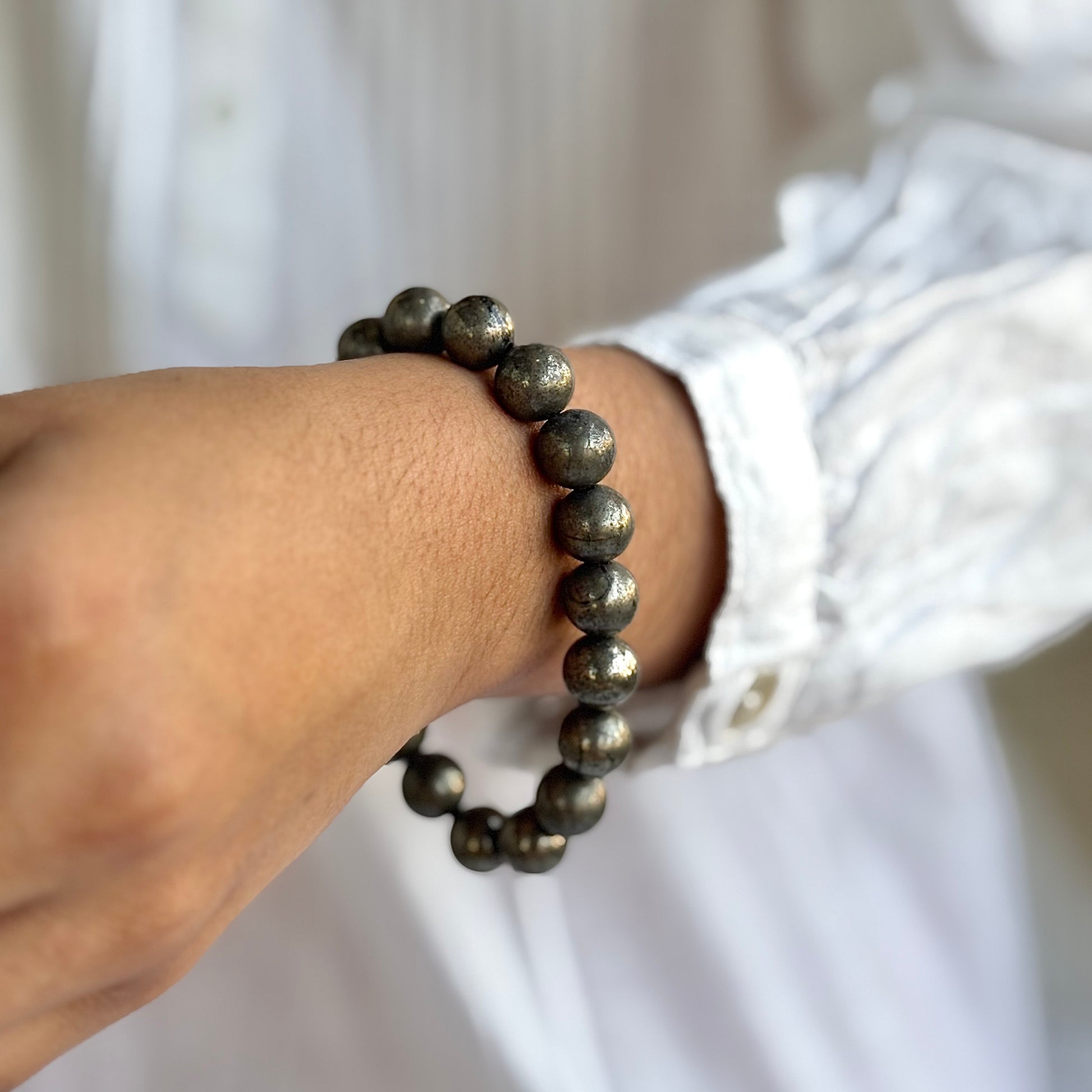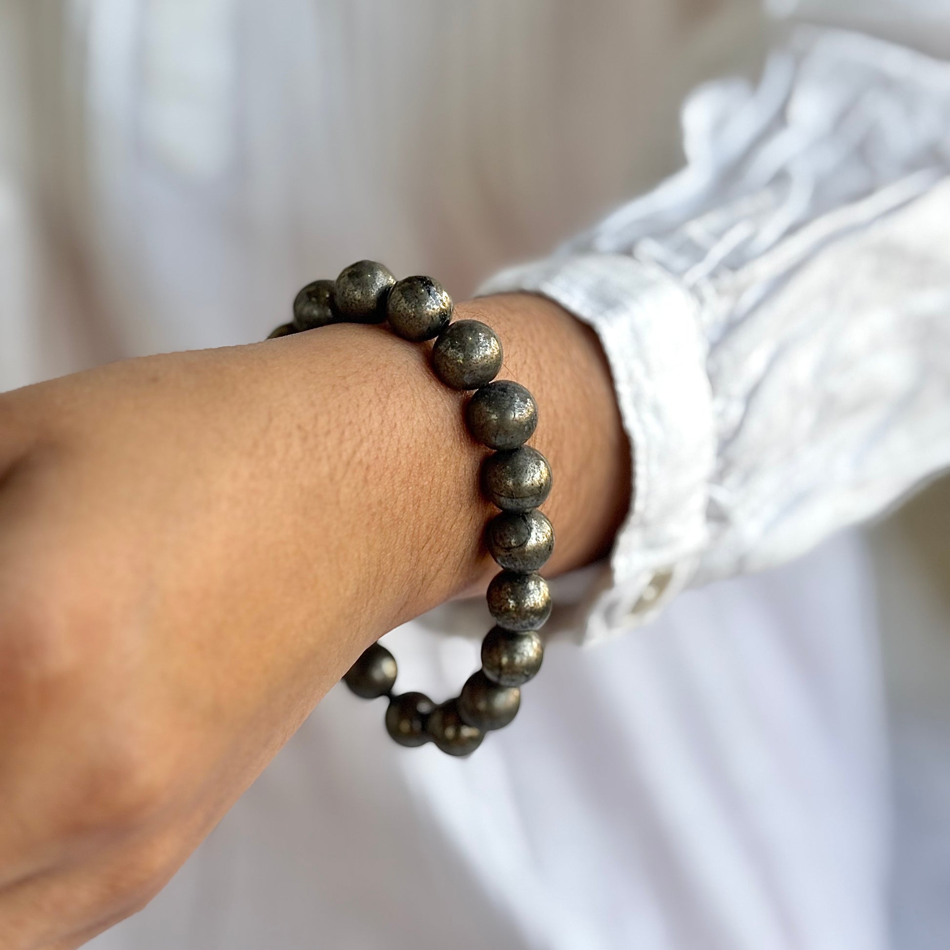 Pyrite Bead Bracelet - 10mm | Prosperity & Abundance | Stone for financial abundance