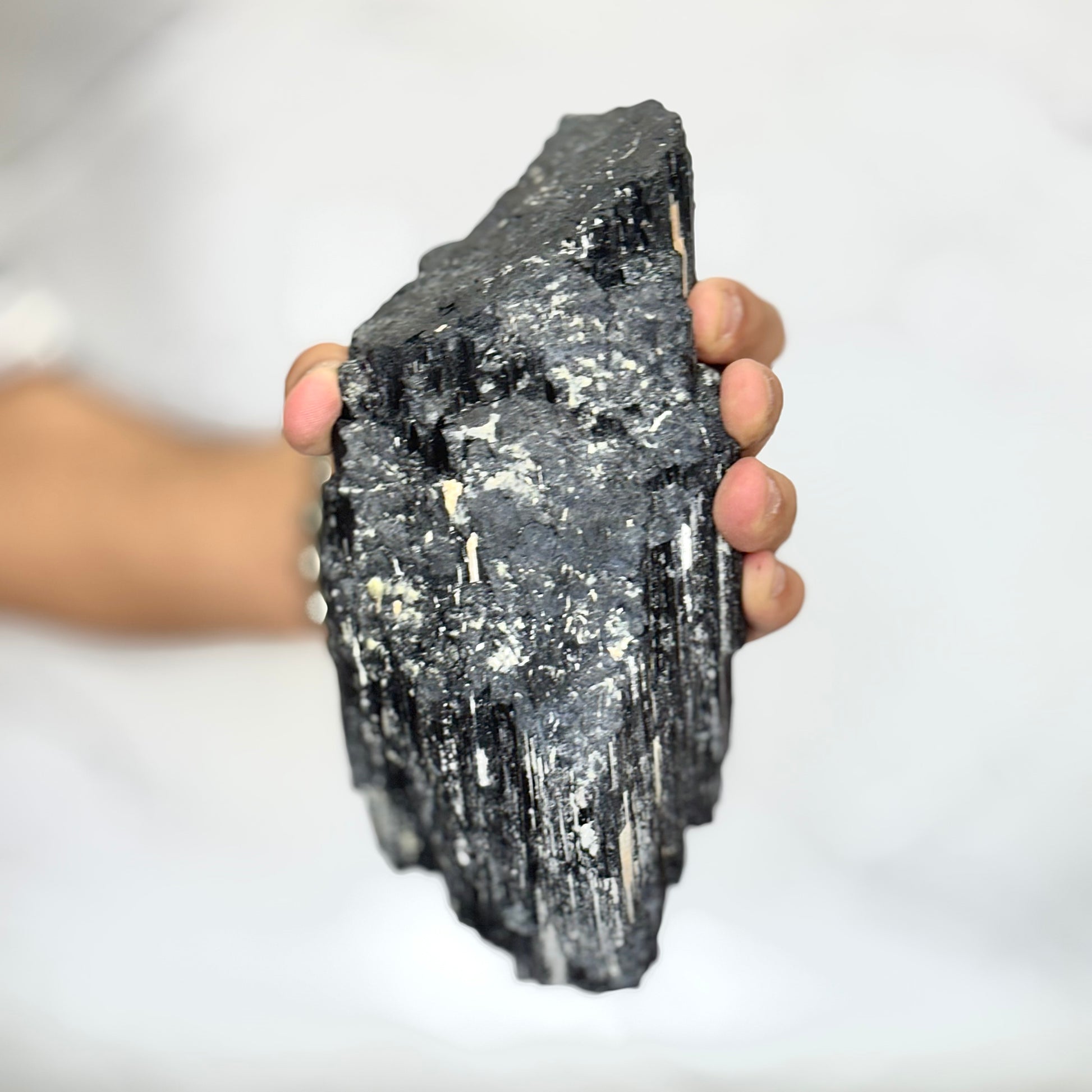 This substantial piece of raw Black Tourmaline weighs over 2 Kg and showcases the earth’s untamed beauty with rugged textures and natural inclusions. Known for its grounding and protective qualities, it’s ideal for placement near entryways, workspaces, or meditation areas. Minor surface chipping may occur during transit due to its raw and heavy nature—this is a natural characteristic of the stone.