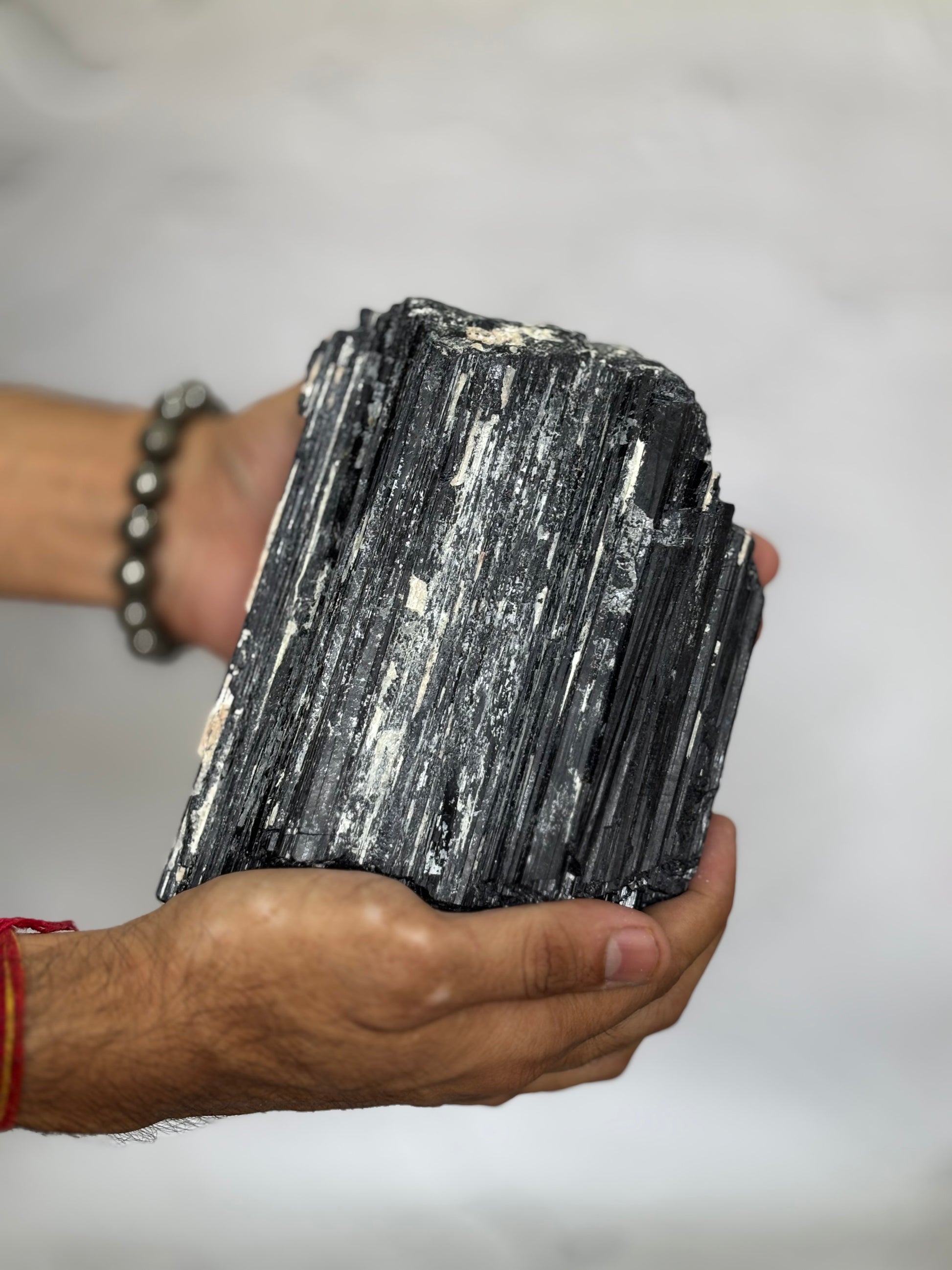 This substantial piece of raw Black Tourmaline weighs over 2.8 Kg and showcases the earth’s untamed beauty with rugged textures and natural inclusions. Known for its grounding and protective qualities, it’s ideal for placement near entryways, workspaces, or meditation areas. Minor surface chipping may occur during transit due to its raw and heavy nature—this is a natural characteristic of the stone.