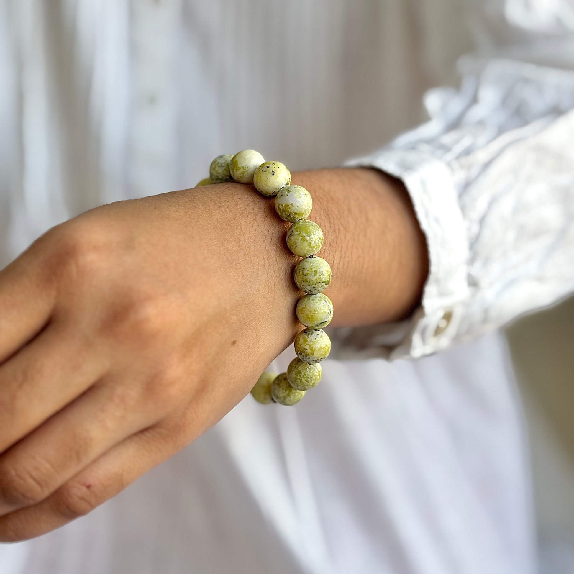 Serpentine Bead Bracelet - 10mm | Wisdom, Past Life memories, Intuition
