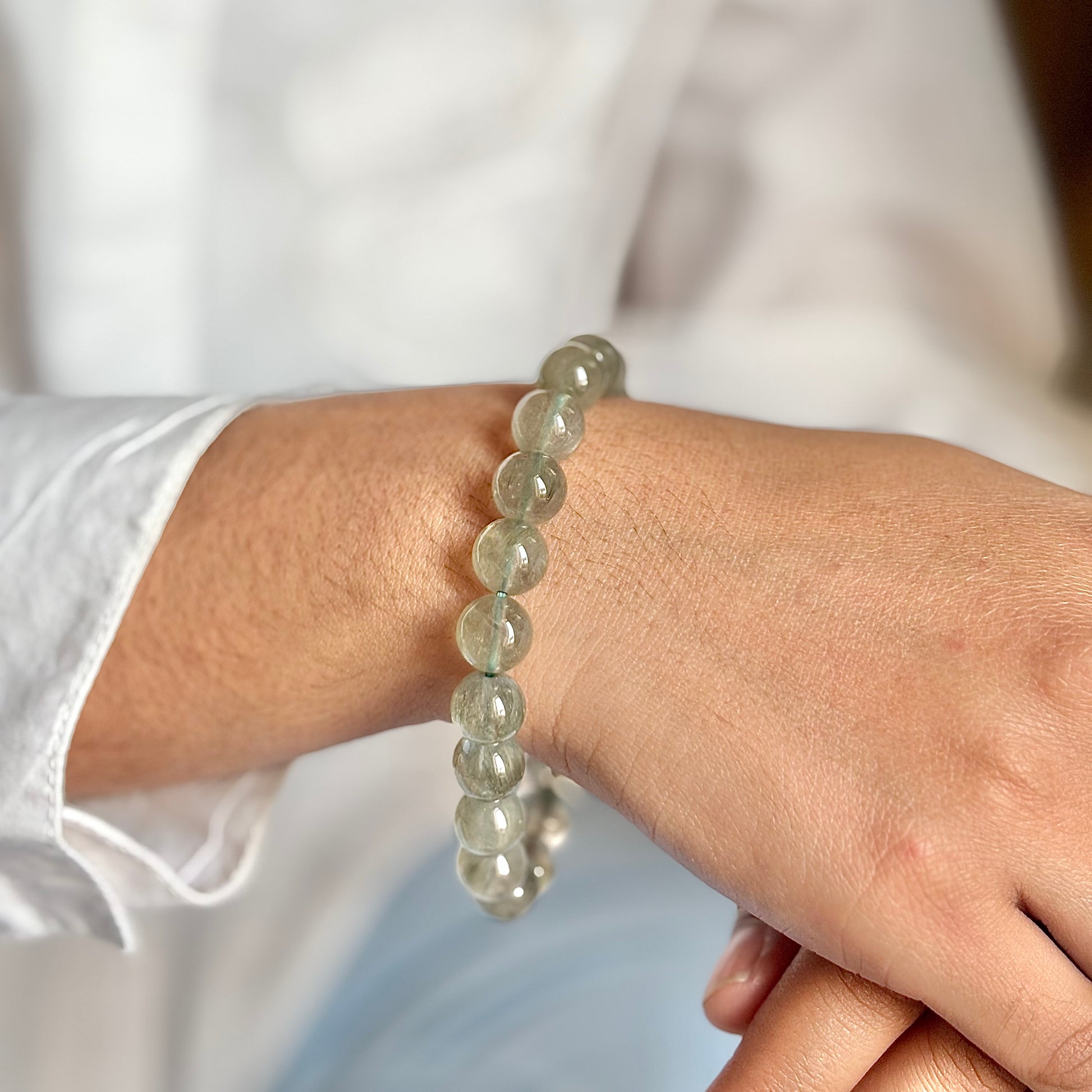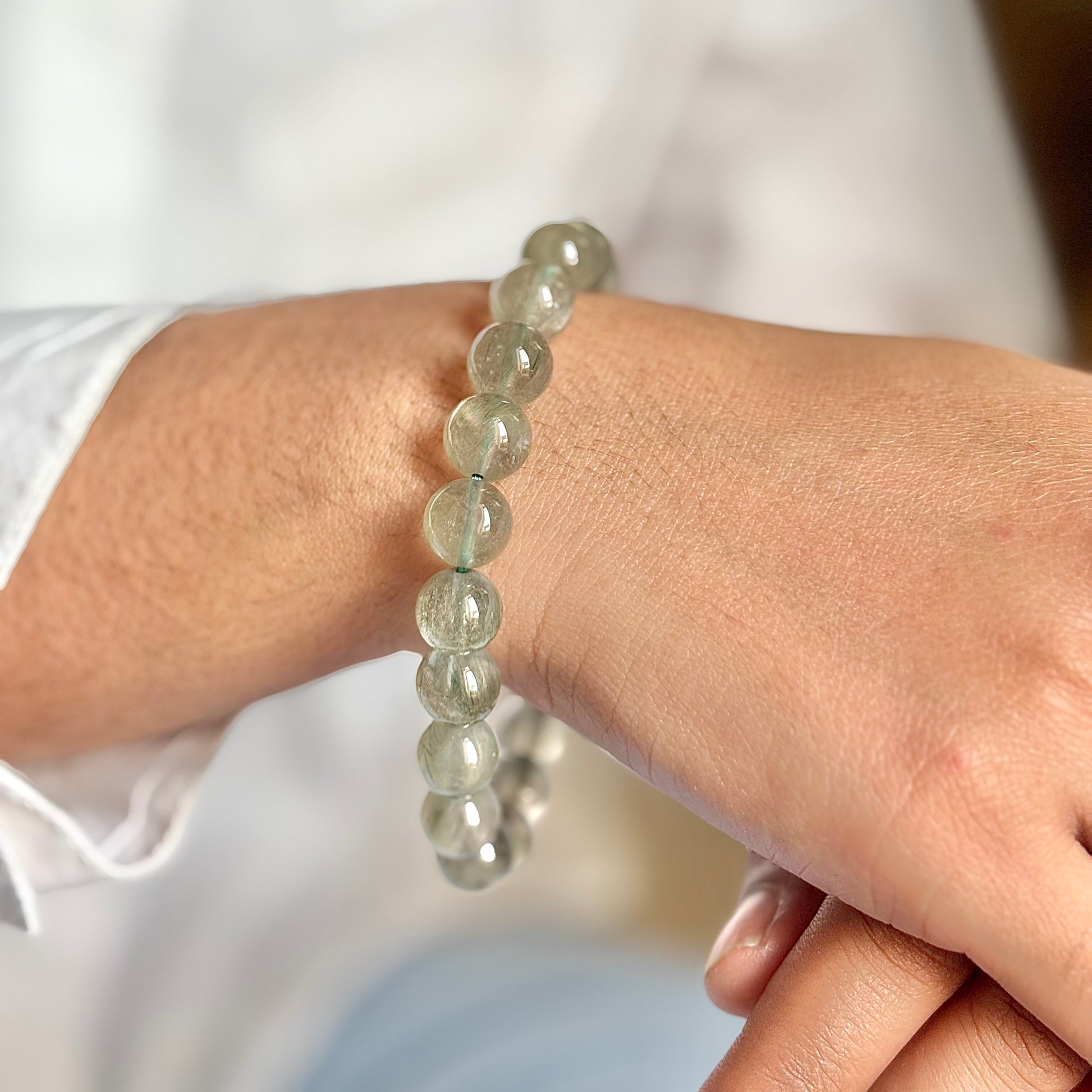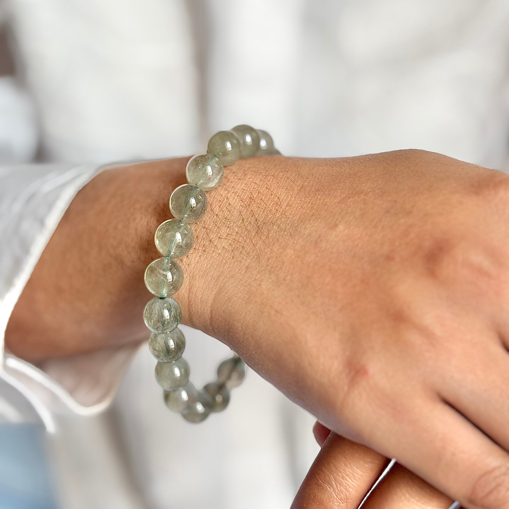 Superior Quality Green Hair Quartz Bead Bracelet - 10mm | Clear Energetic Blockages & Encourages Renewal & Growth