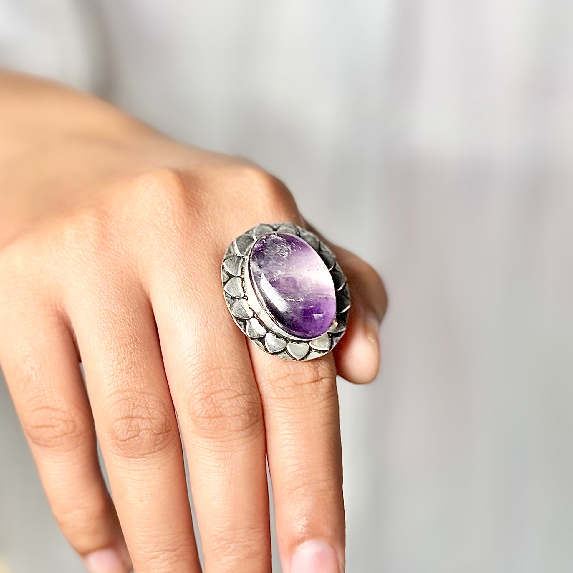 Amethyst Oxidised Crystal Ring | Helps activating Third Eye & Psychic abilities
