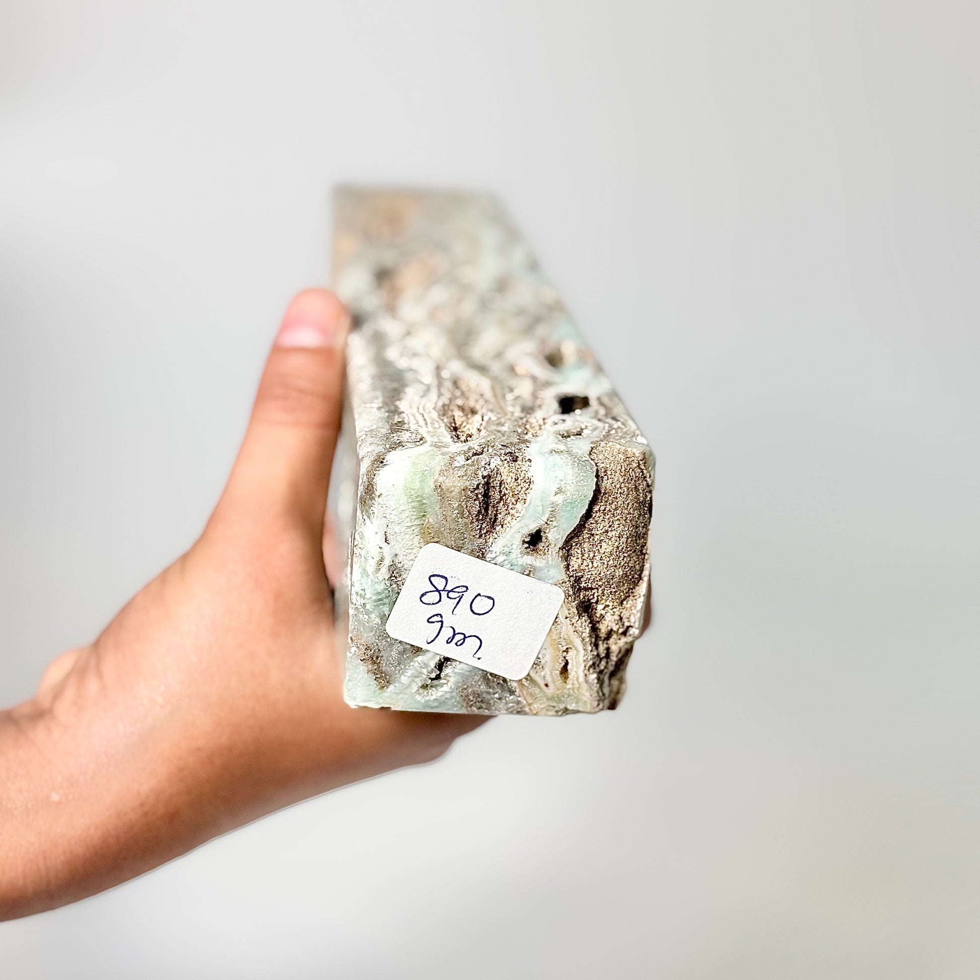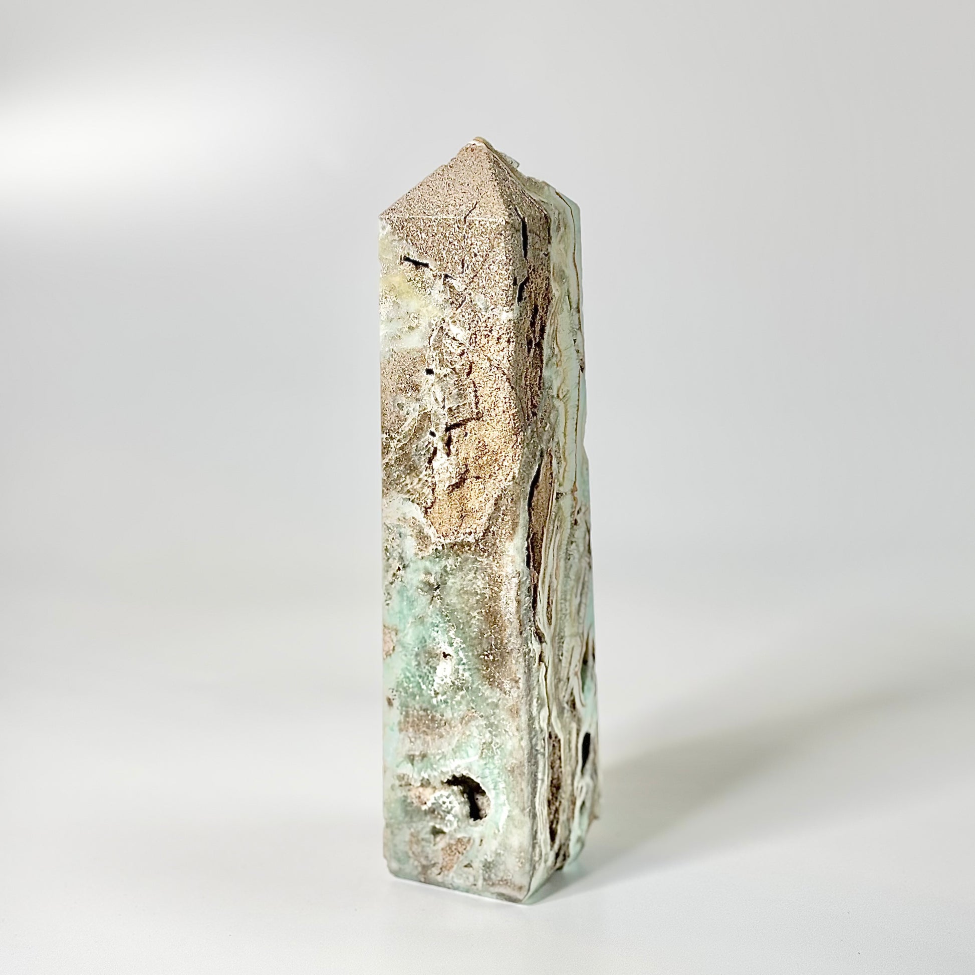 Embrace soothing energy with our natural Blue Aragonite four-facet tower, a stone known for its gentle vibrations that support emotional healing, clear communication, and inner peace. Its serene blue tones help calm the mind, ease tension, and promote spiritual connection.