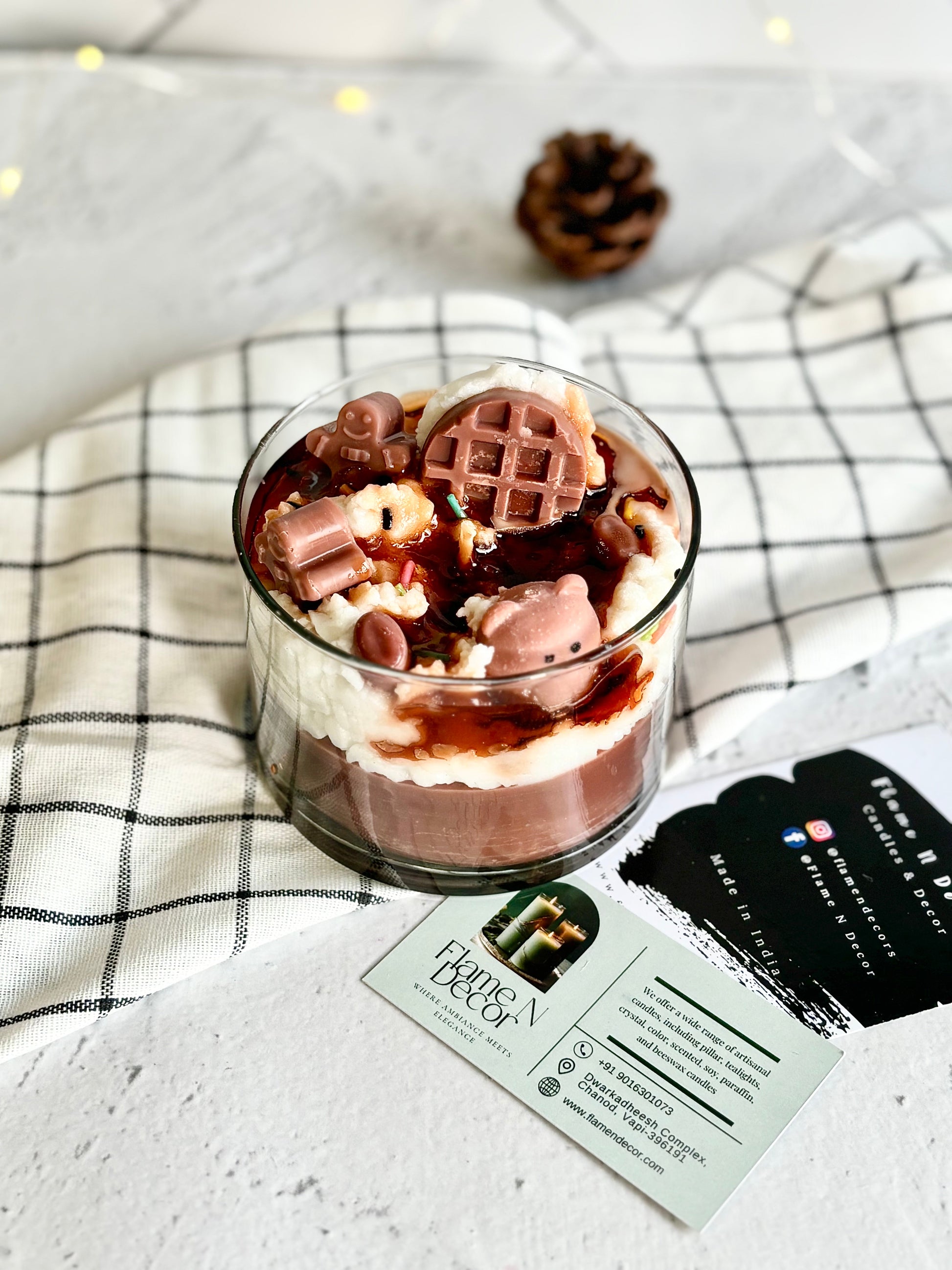 Indulge in the cozy aroma of our Coffee & Vanilla Desert Bowl Topped with Cream & Waffle Soy Scented Candle this season. The rich blend of coffee and vanilla will transport you to a warm and inviting atmosphere, perfect for unwinding and relaxing after a busy day. Plus, the adorable waffle-shaped candle adds a touch of whimsy to any room.