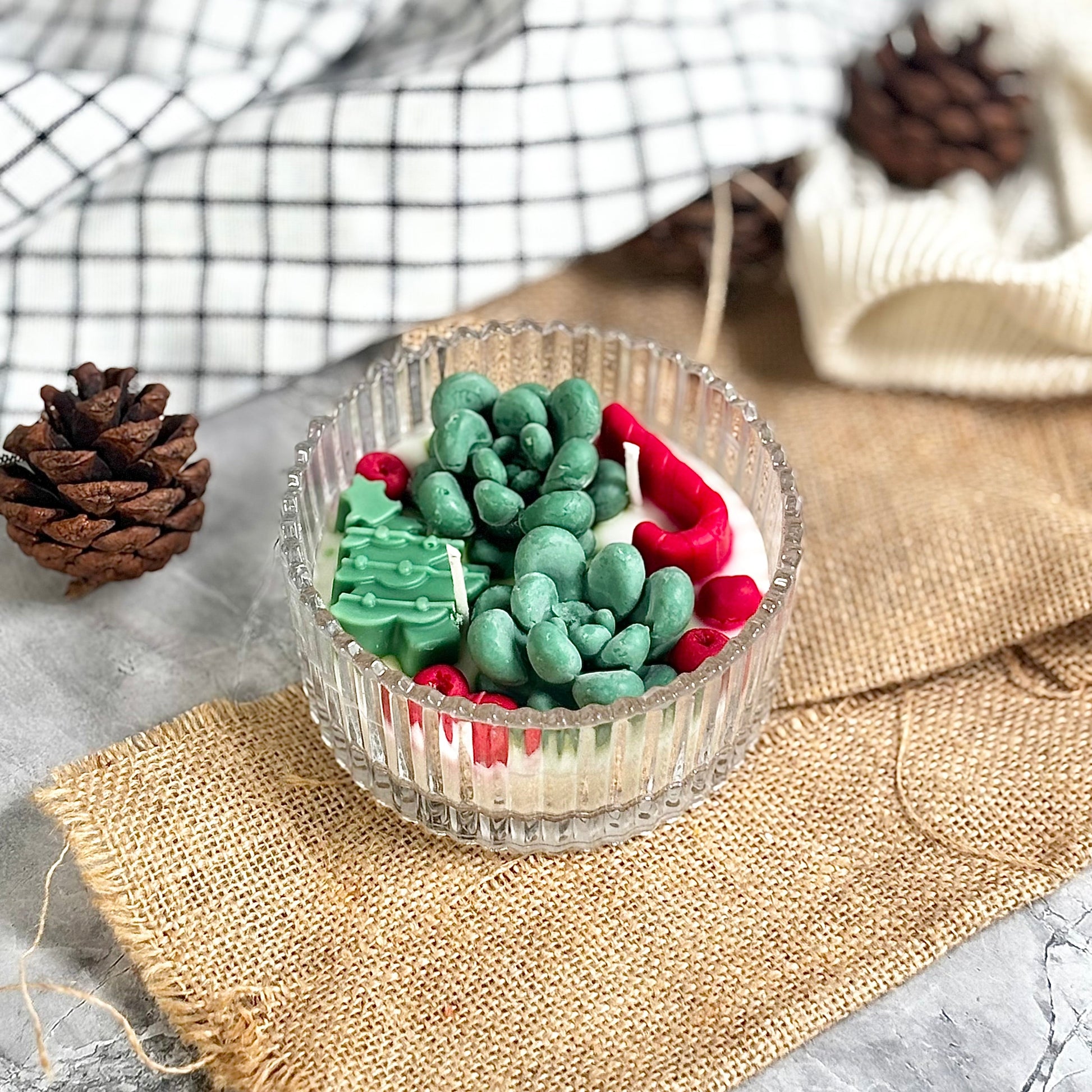 This candle combines the charm of holiday décor with a refreshing fragrance, making it perfect for cozy evenings, table styling, or festive gifting.