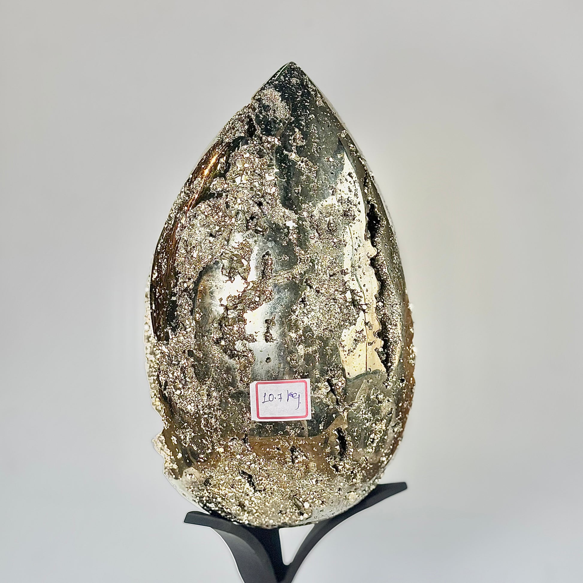 Add a touch of brilliance and prosperity to your space with this Extra Large Peruvian Pyrite Druzy Egg. Often admired as the Stone of Abundance, Pyrite is known for symbolizing success, motivation, and positivity.