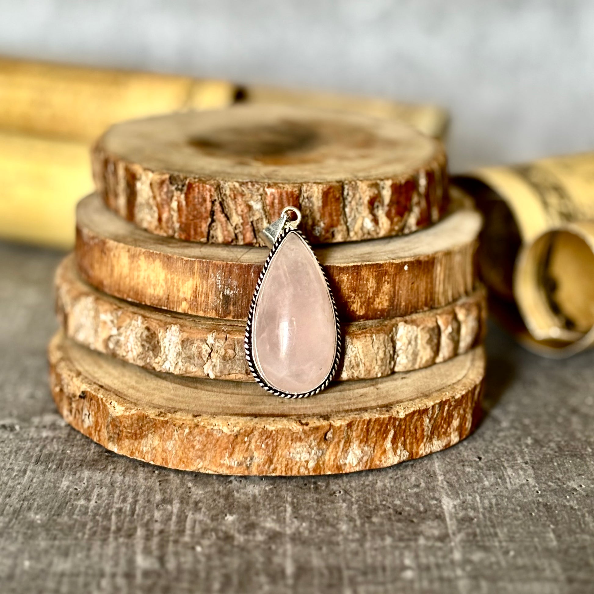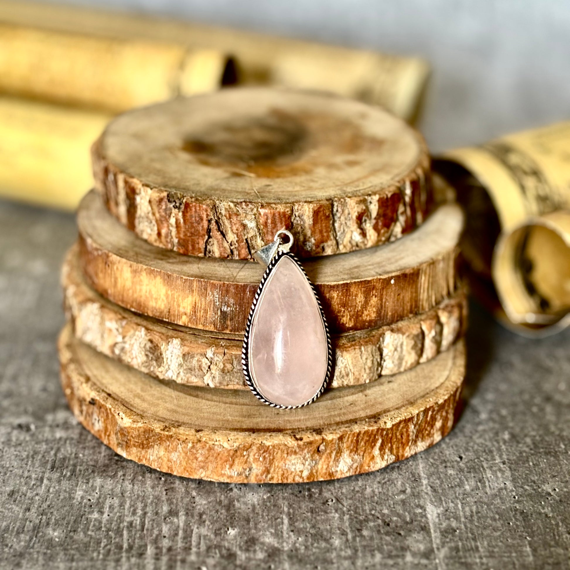 Rose Quartz Oxidised Pendant – Love & Gentle Energy