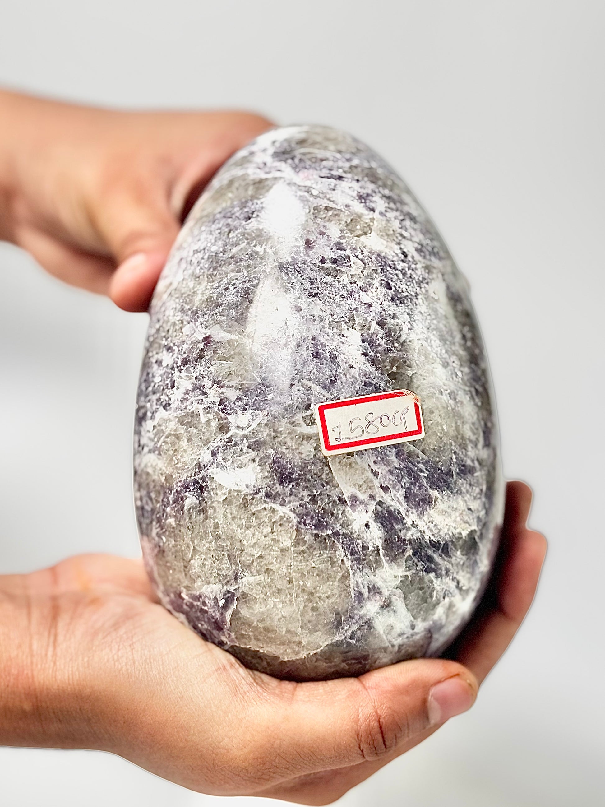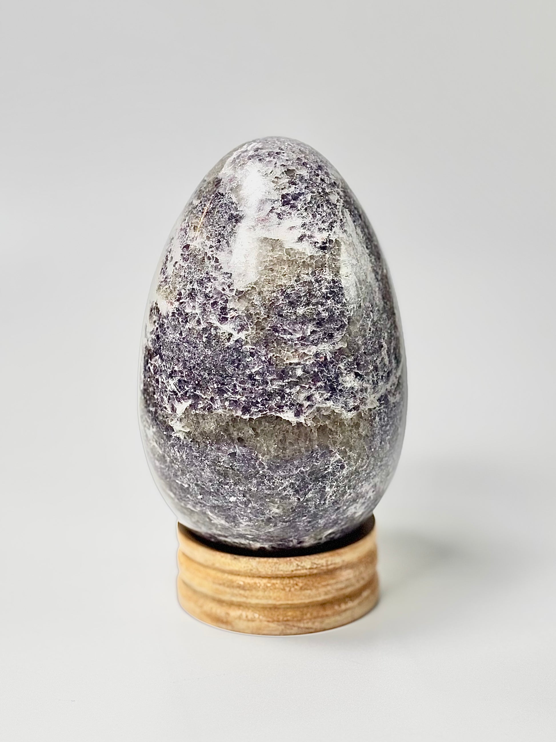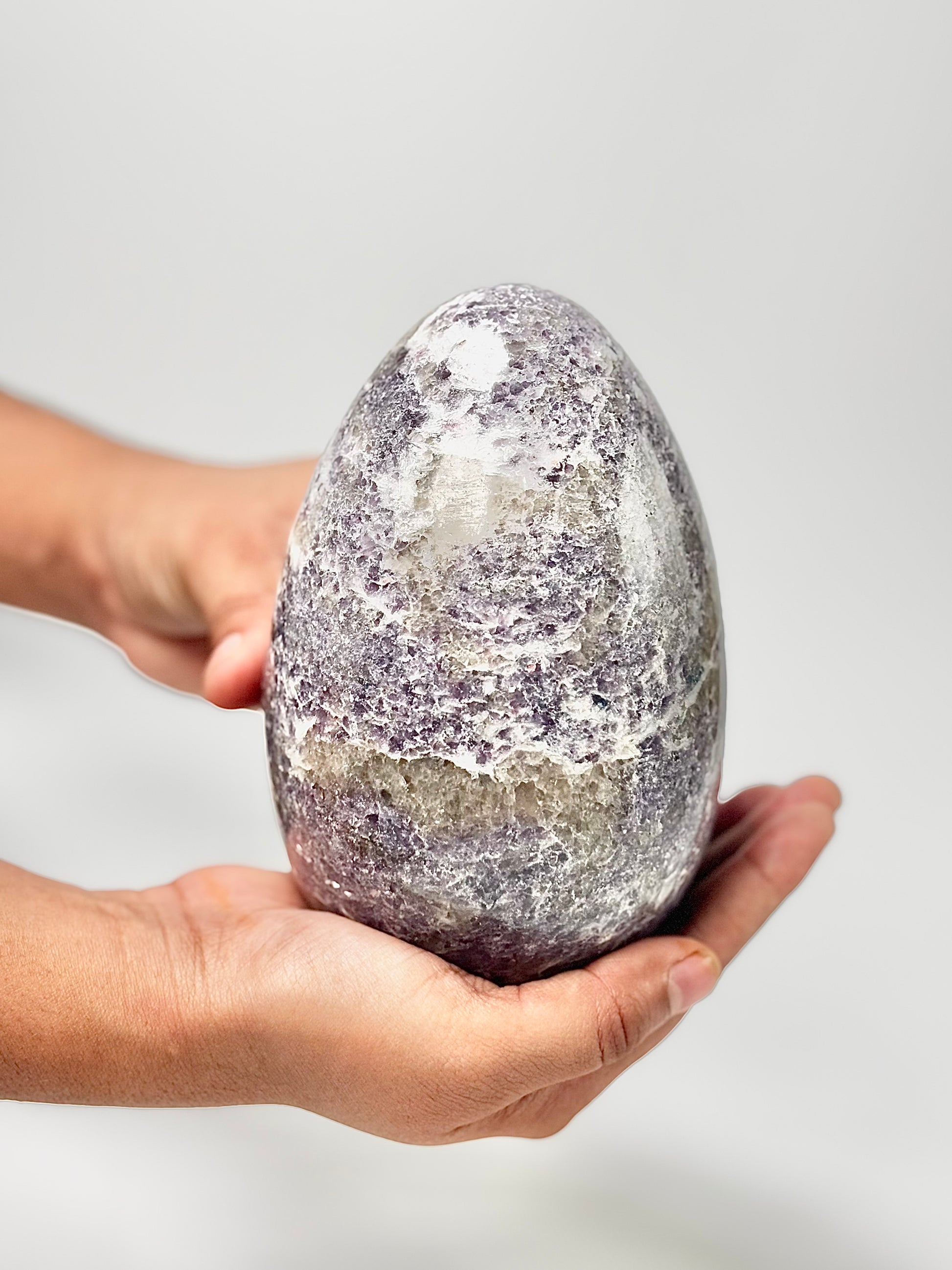 This large Lepidolite Egg is prized for its calming, mood-stabilizing energy. Rich in natural lithium, it supports emotional balance, stress relief, and restful sleep. Perfect for meditation, relaxation spaces, or energetic cleansing — a soothing presence for peace and clarity, only at The Lilith Store.
