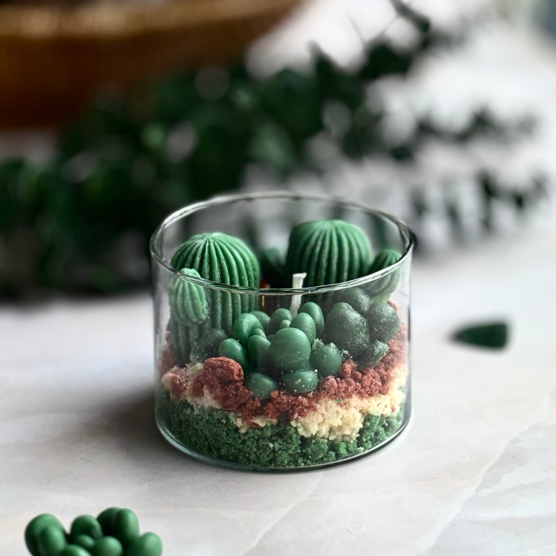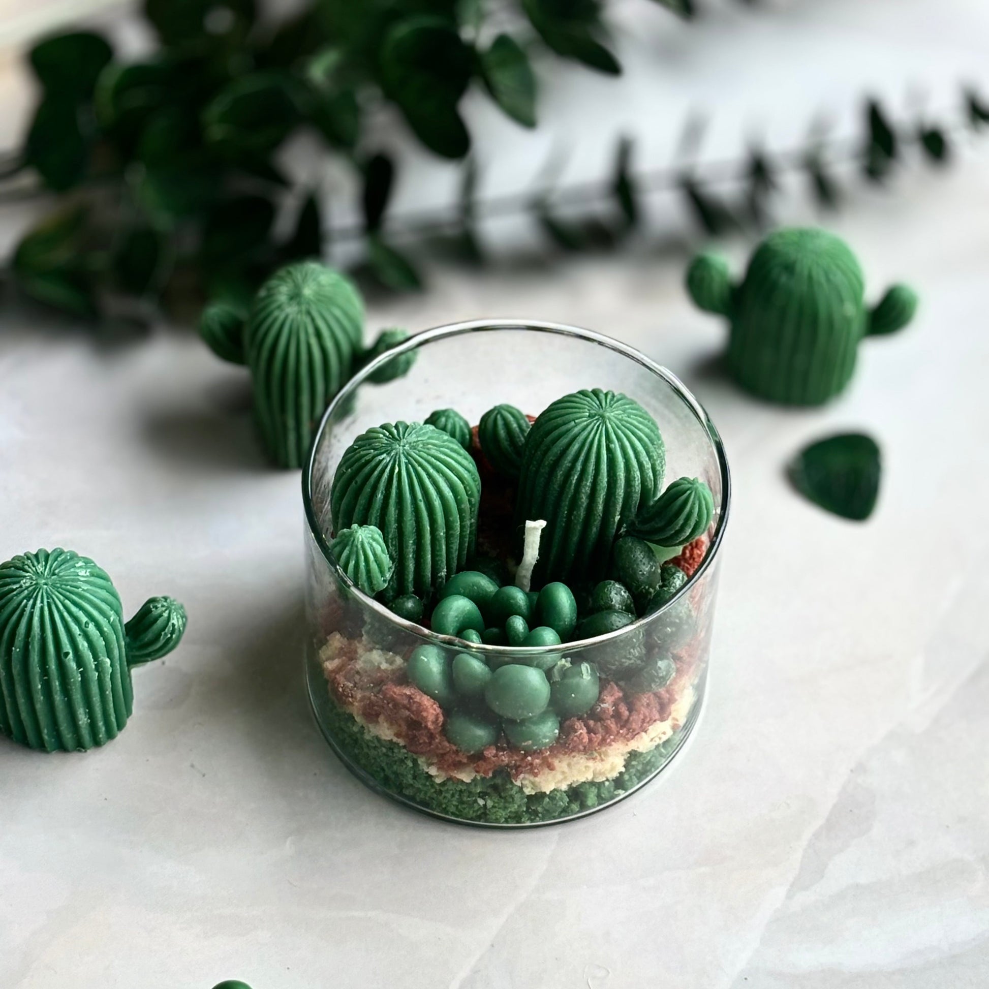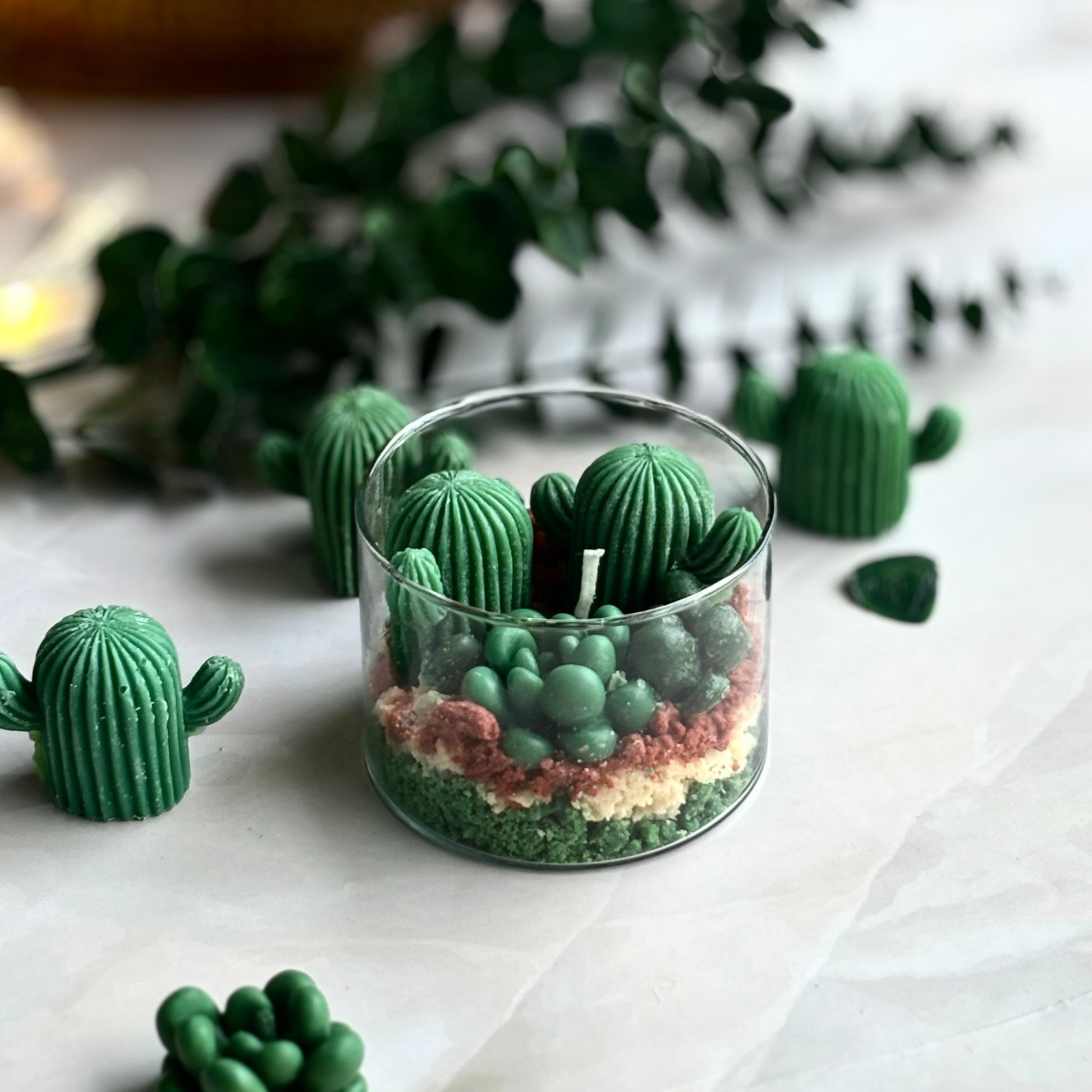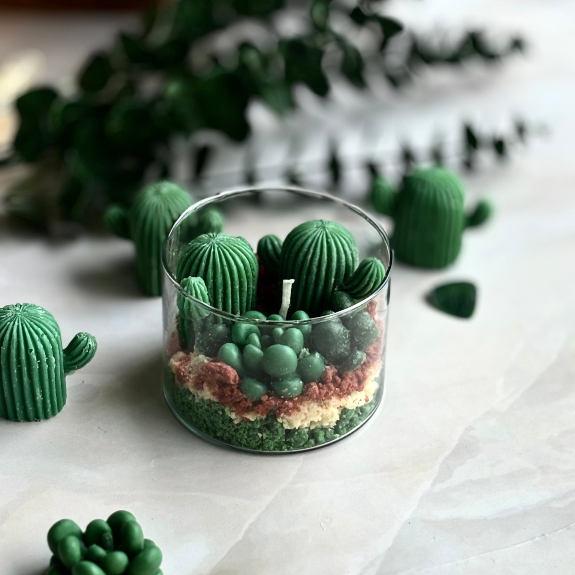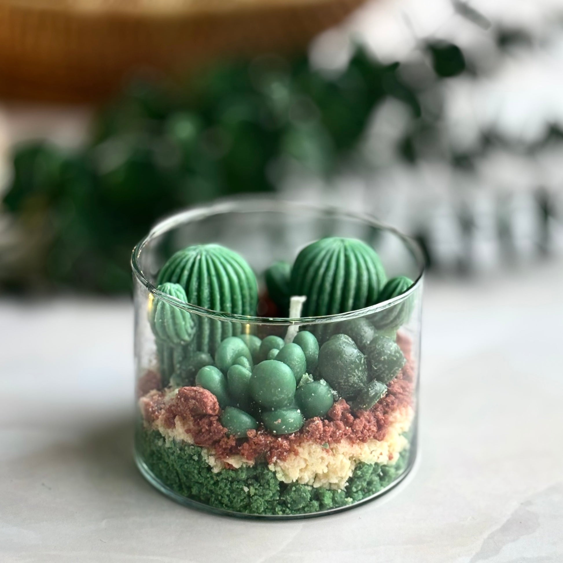 This Desert Cactus Soy Wax Candle weighs 160 gm and is made with soy wax infused with sandalwood fragrance. The jar is 3 inches in size and Dia 3 inches, perfect for adding a touch of warmth and relaxation to any room. Enjoy the benefits of a long-lasting burn time and environmentally friendly ingredients.