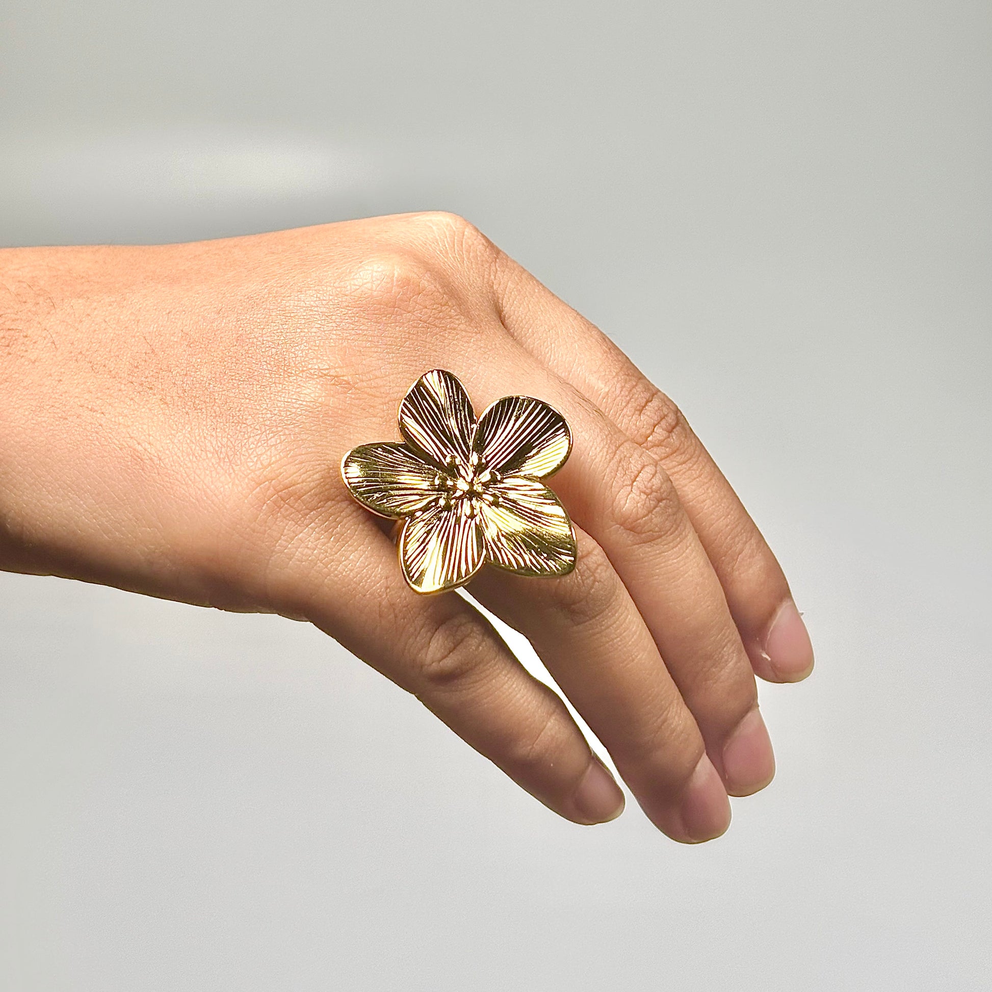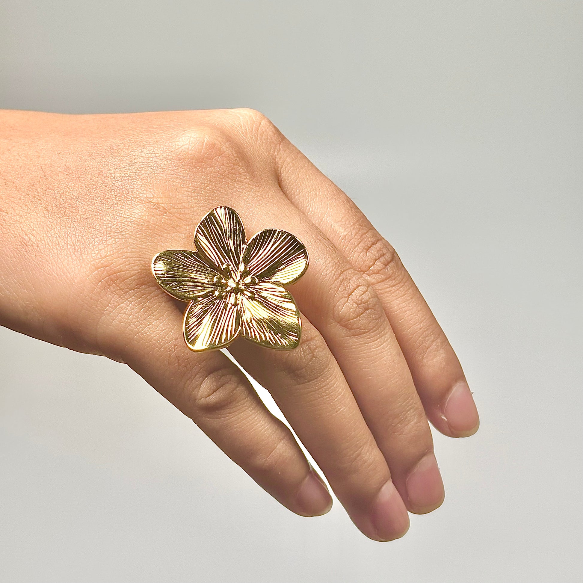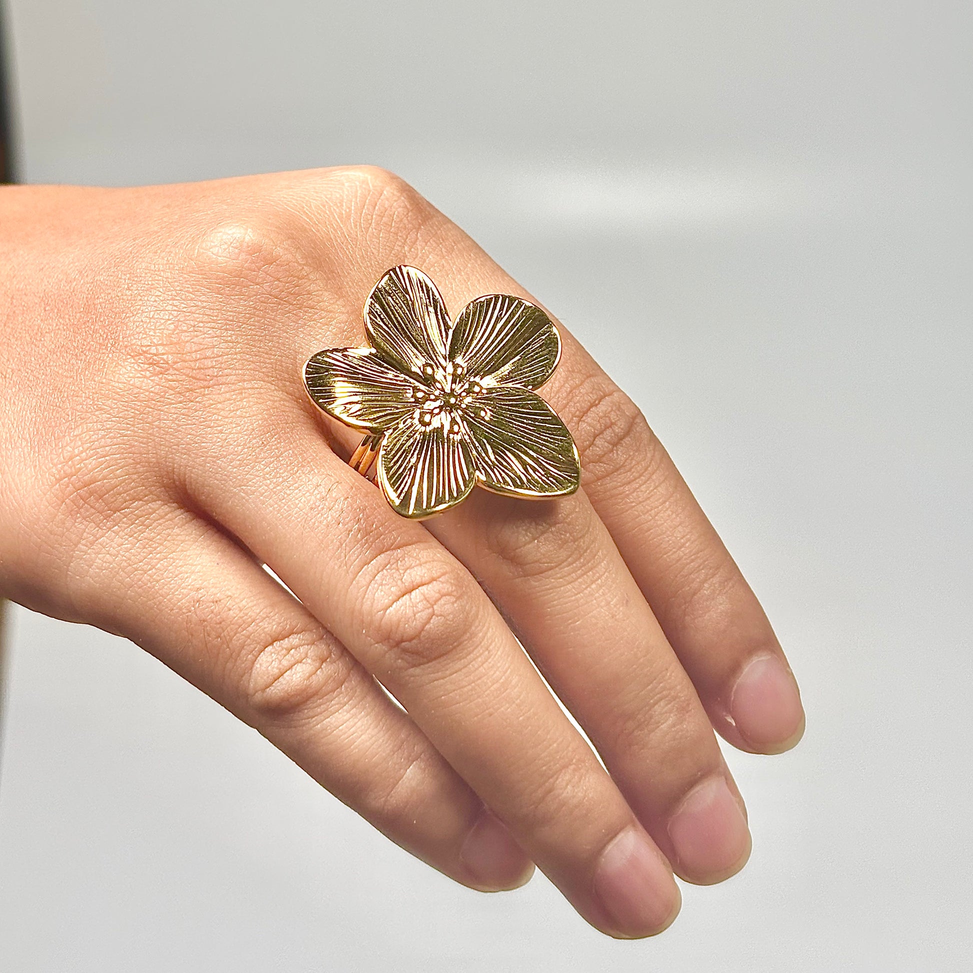 Inspired by Flora, the Roman goddess of flowers and spring, this radiant ring is a symbol of renewal, feminine grace, and abundance. With delicate floral motifs and a luminous 18k gold-plated finish, the Goddess Flora Ring invites you to embrace your blossoming energy and walk in the beauty of your divine essence.