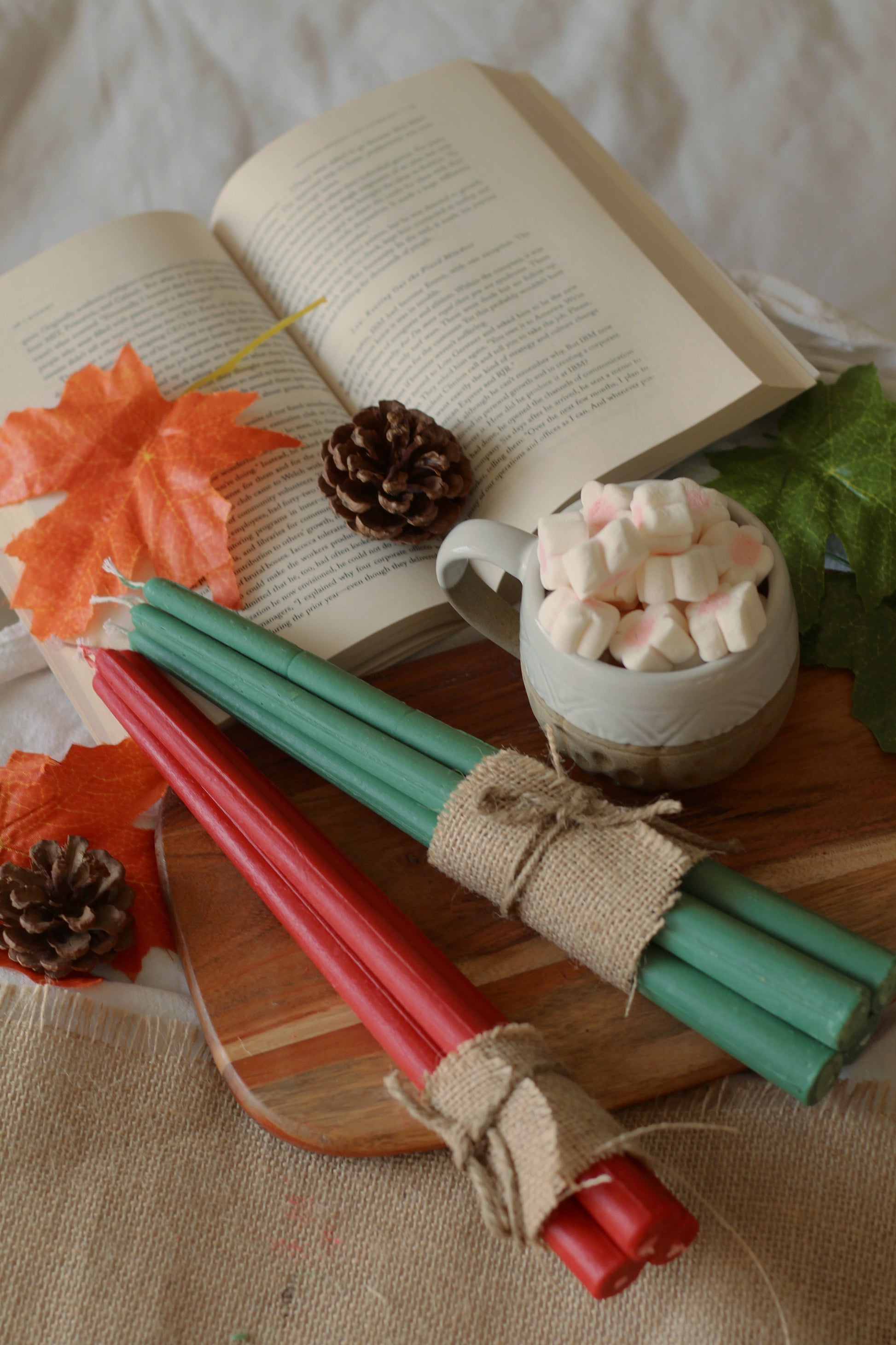Green & Red Taper Candles | Set of 10 | Soy Candle