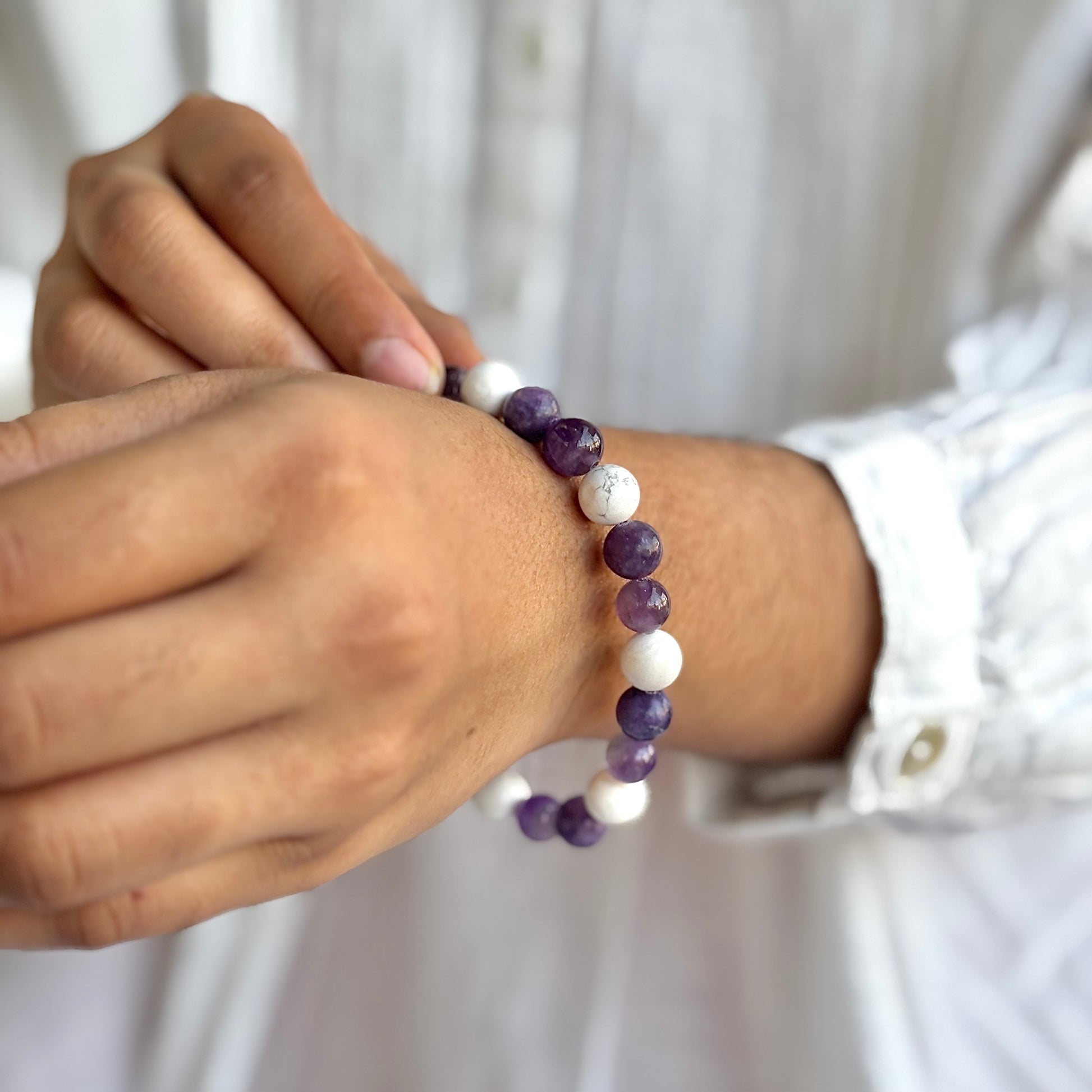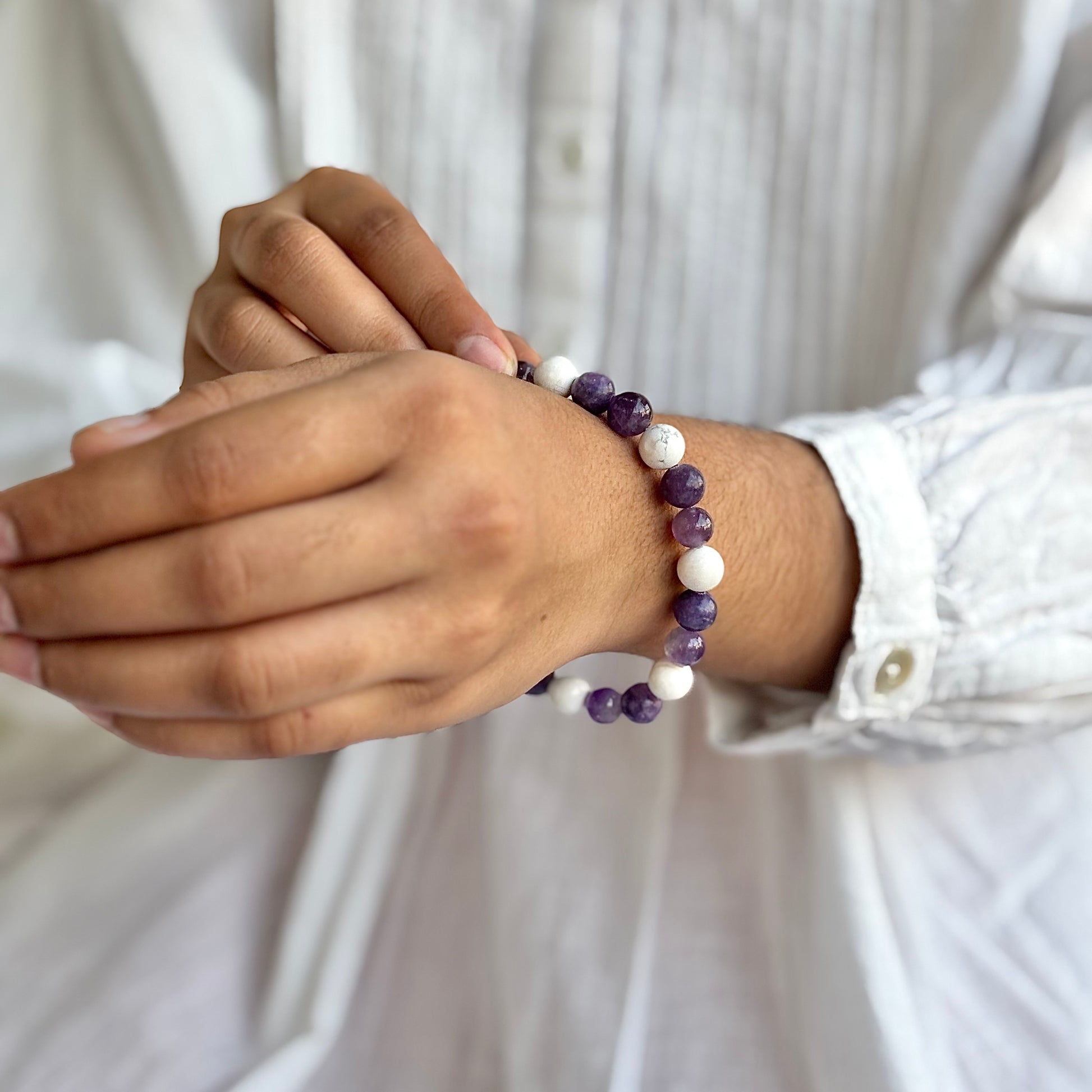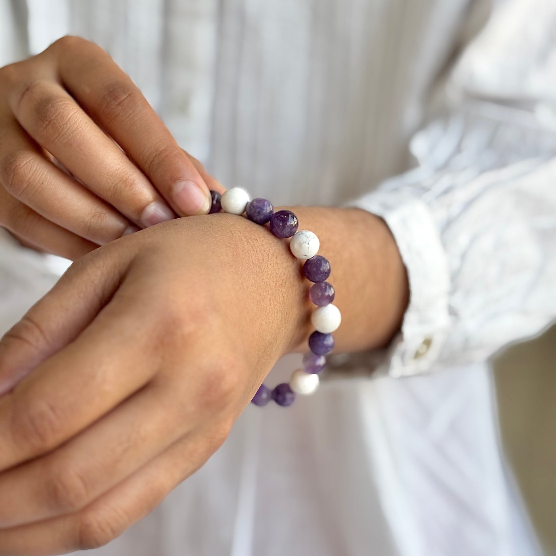 Drift into restful sleep and unlock the wisdom of your dreams with the Peaceful Sleep & Dream Divination Crystal Bracelet, featuring a calming blend of Lepidolite, Amethyst, and Howlite. This soothing combination is designed to ease your mind, enhance dream recall, and invite deep relaxation.