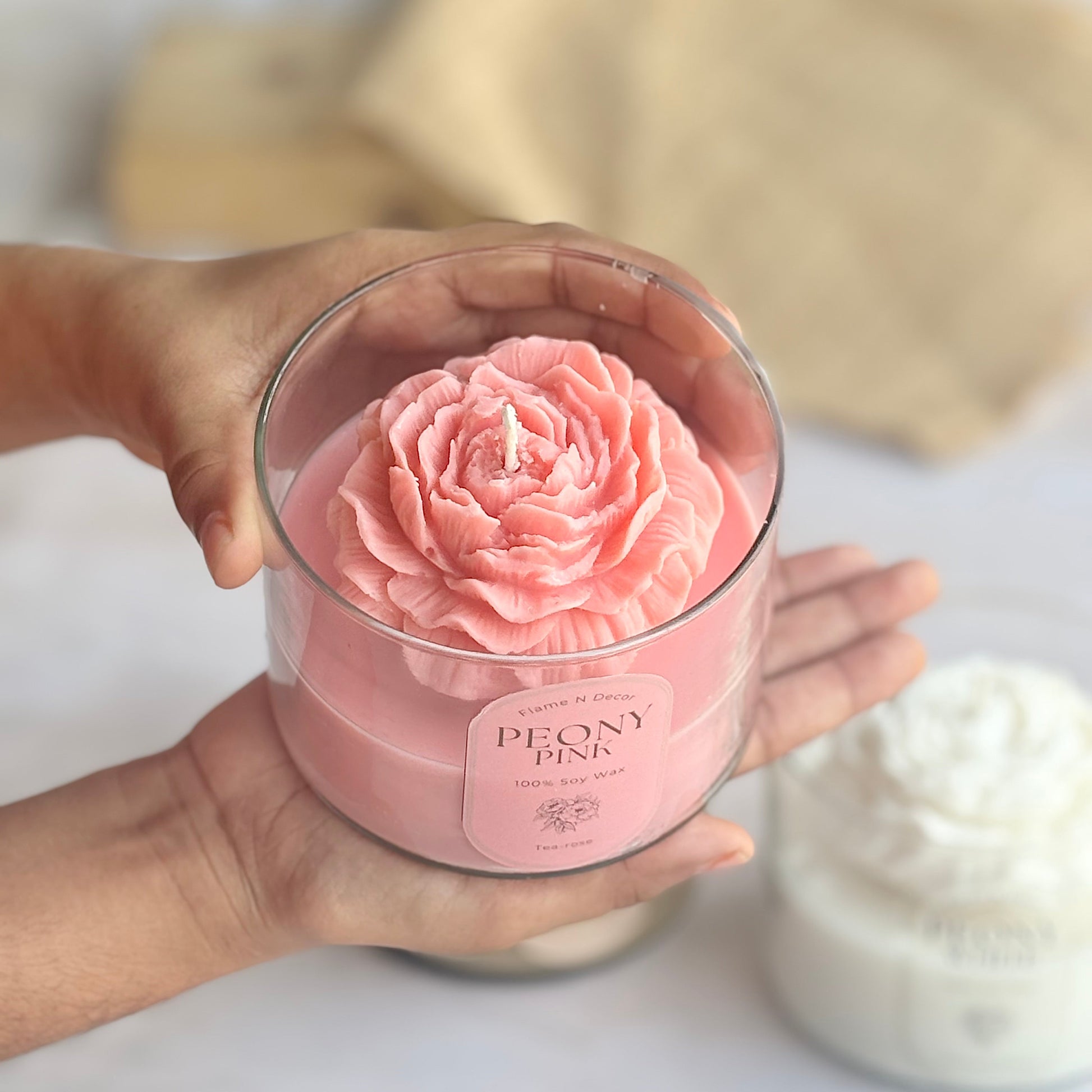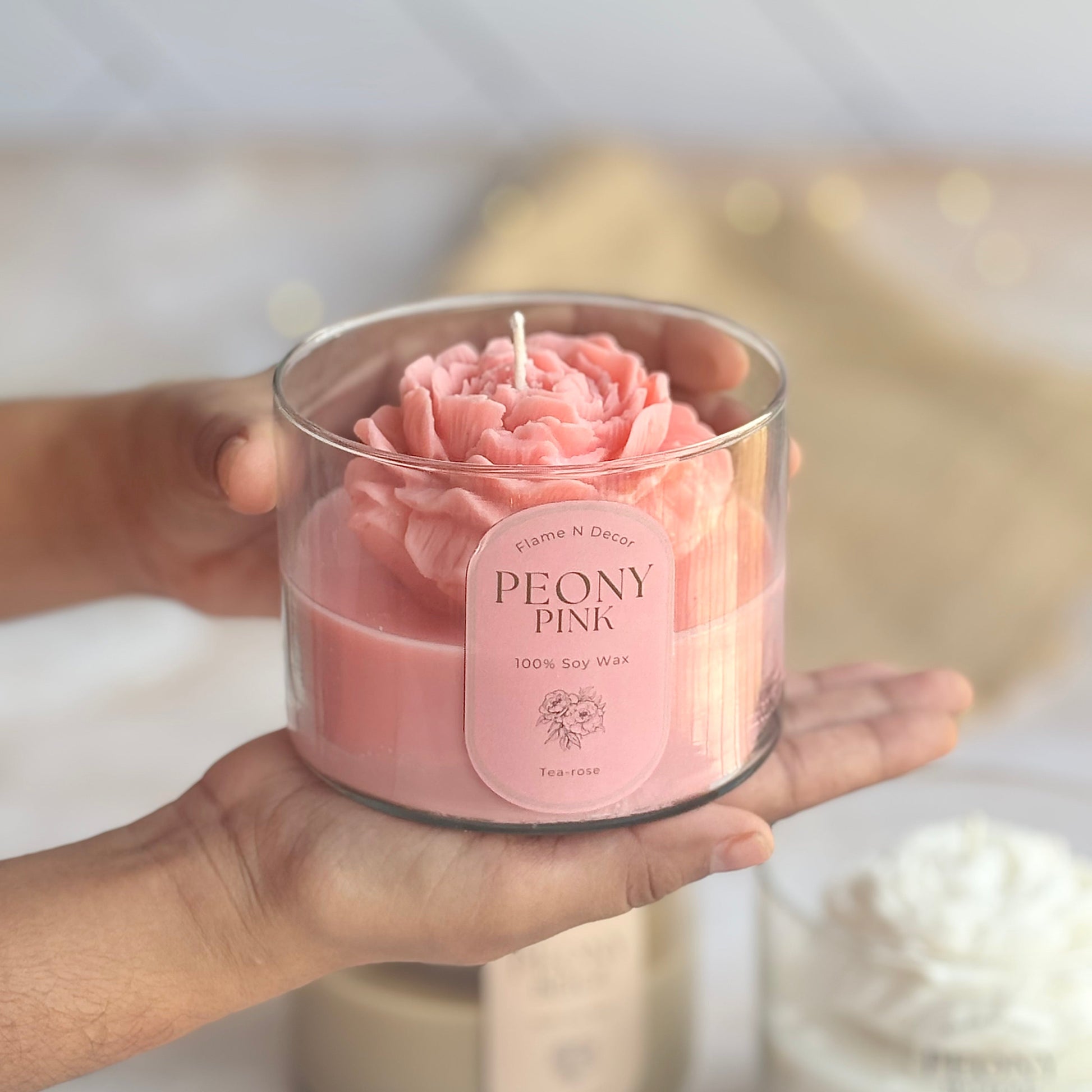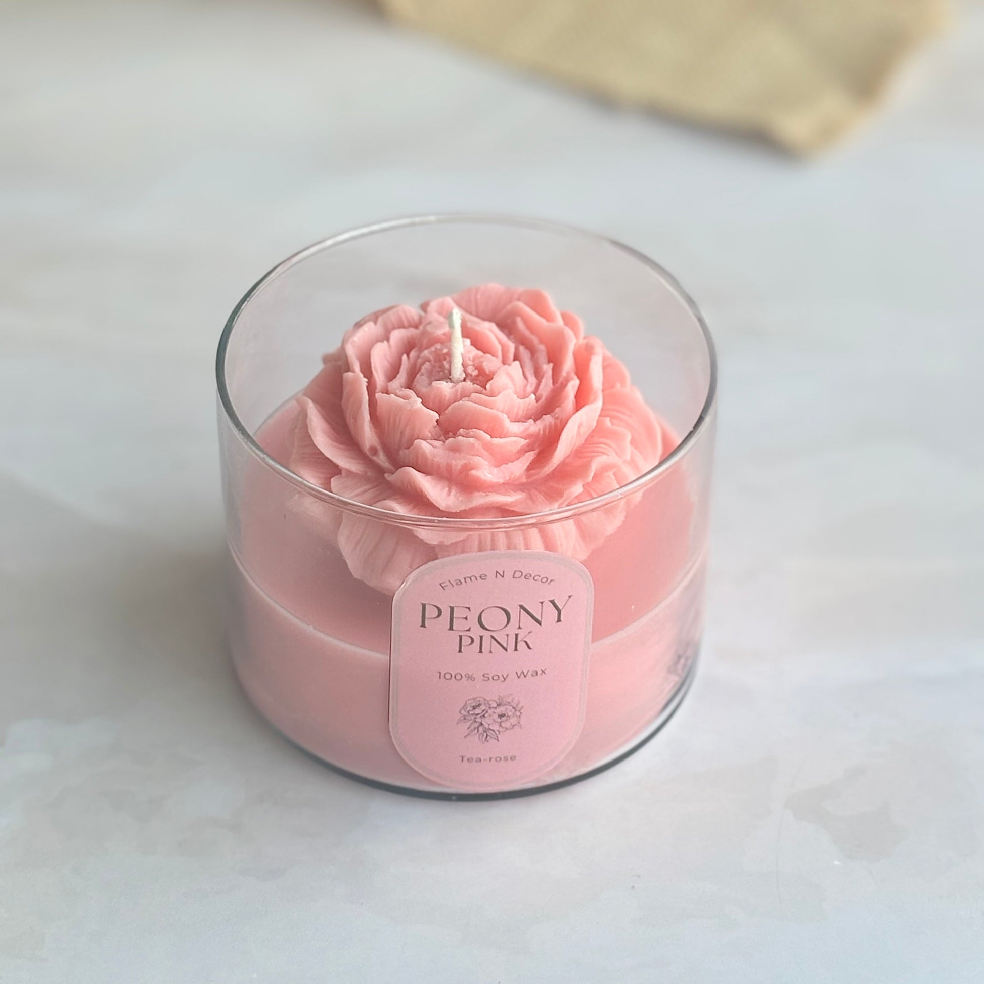 Pink Peony Soy Wax Scented Candle | Tea-rose