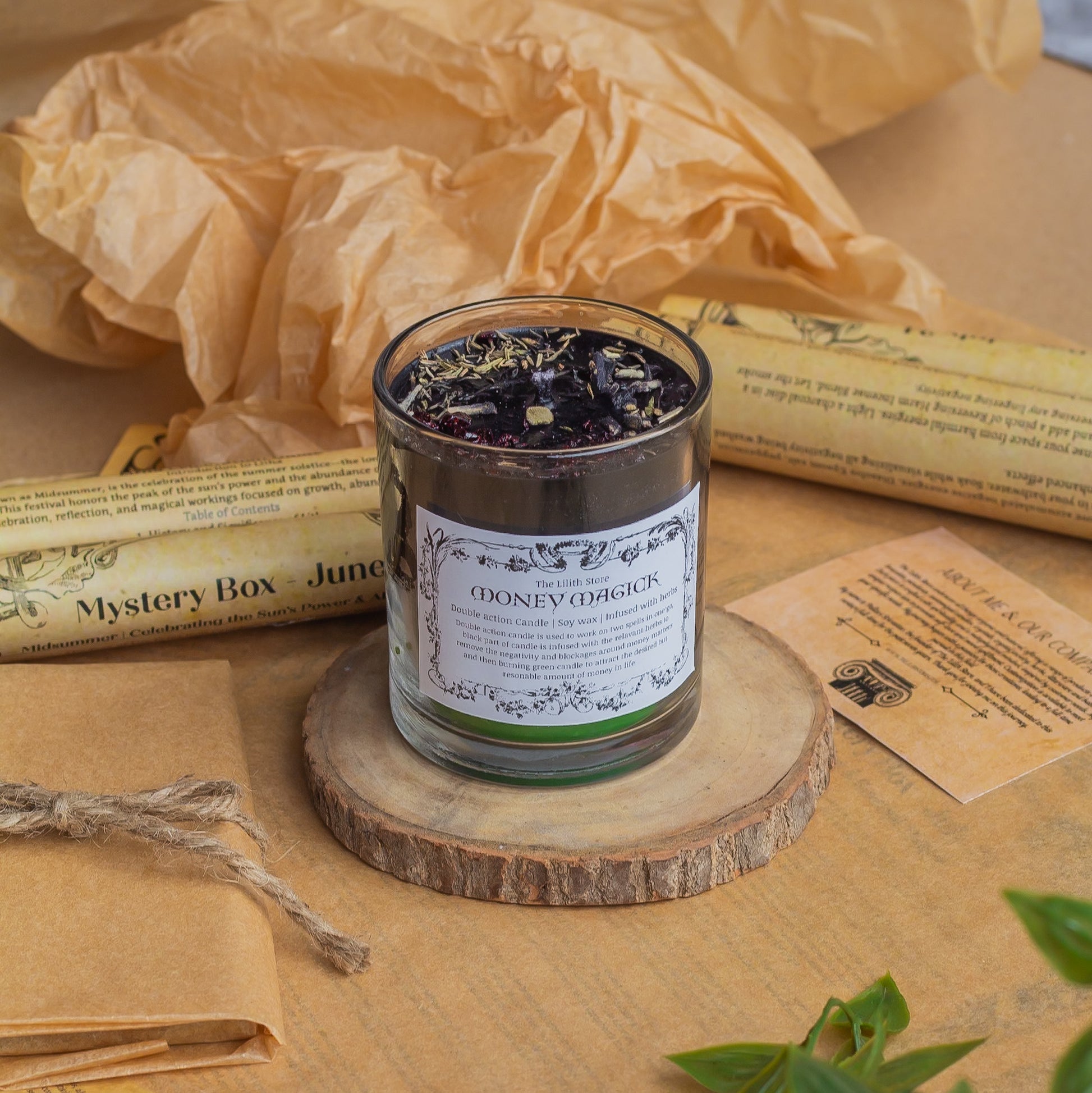 The Double Action Candle is the perfect tool for manifesting your desires. Made with soy wax, it is clean, long-lasting, and contains a unique blend of herbs and fragrance oils for increased focus and effectiveness. Light the candle to open channels for abundance and prosperity.