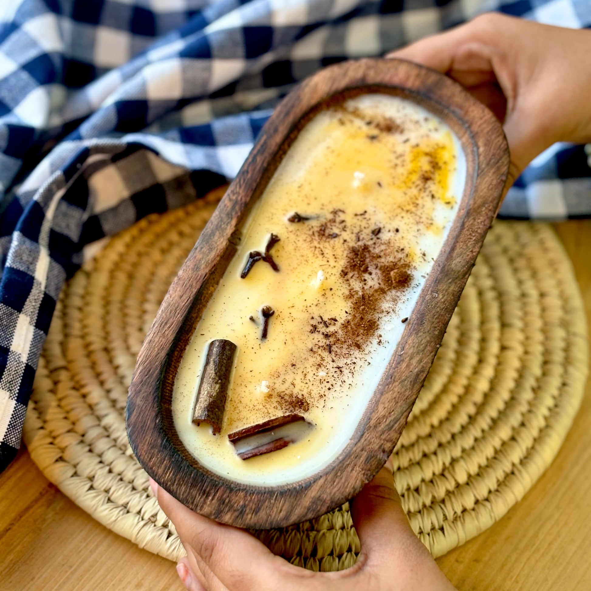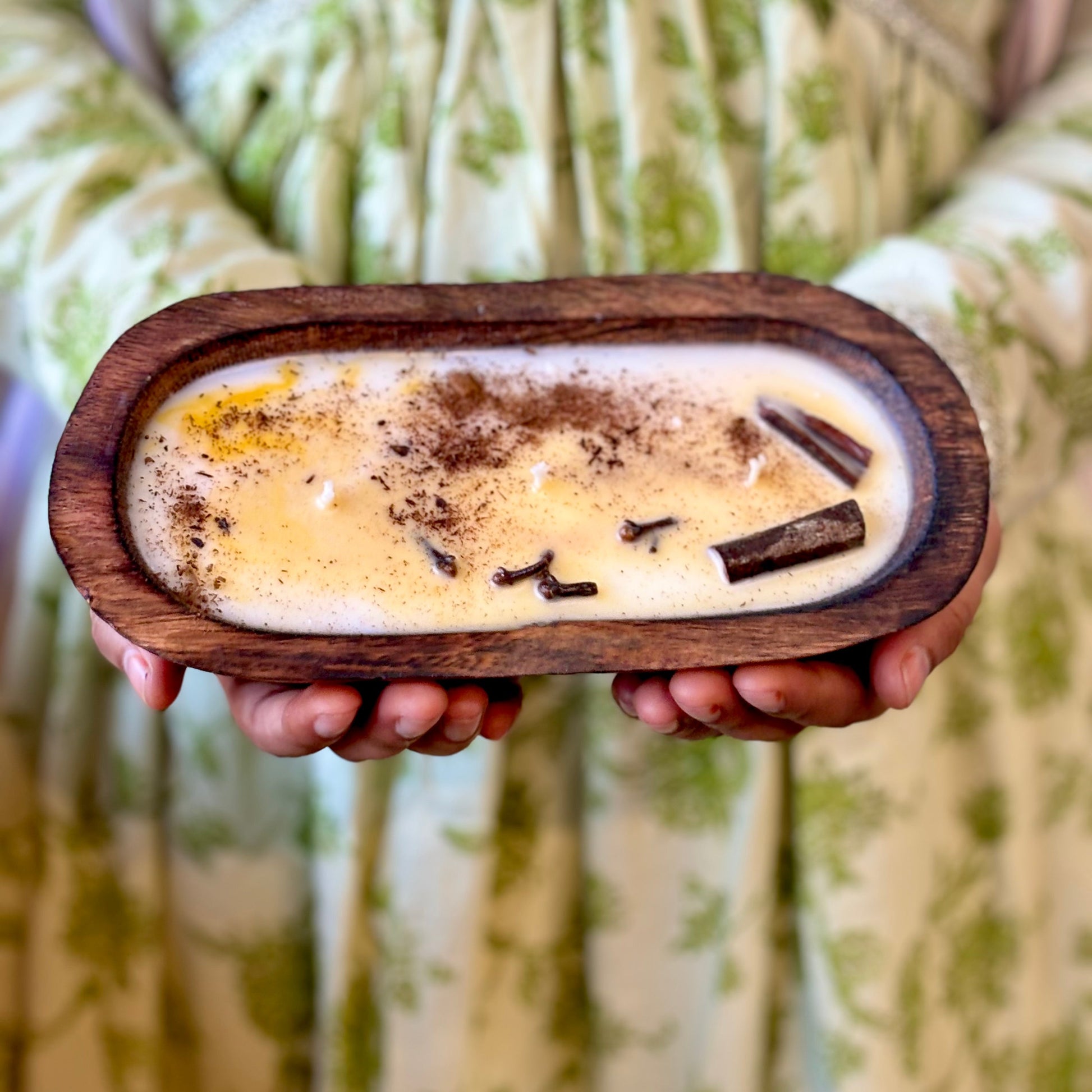 Pumpkin Spice Wooden Dough Bowl Soy Candle
