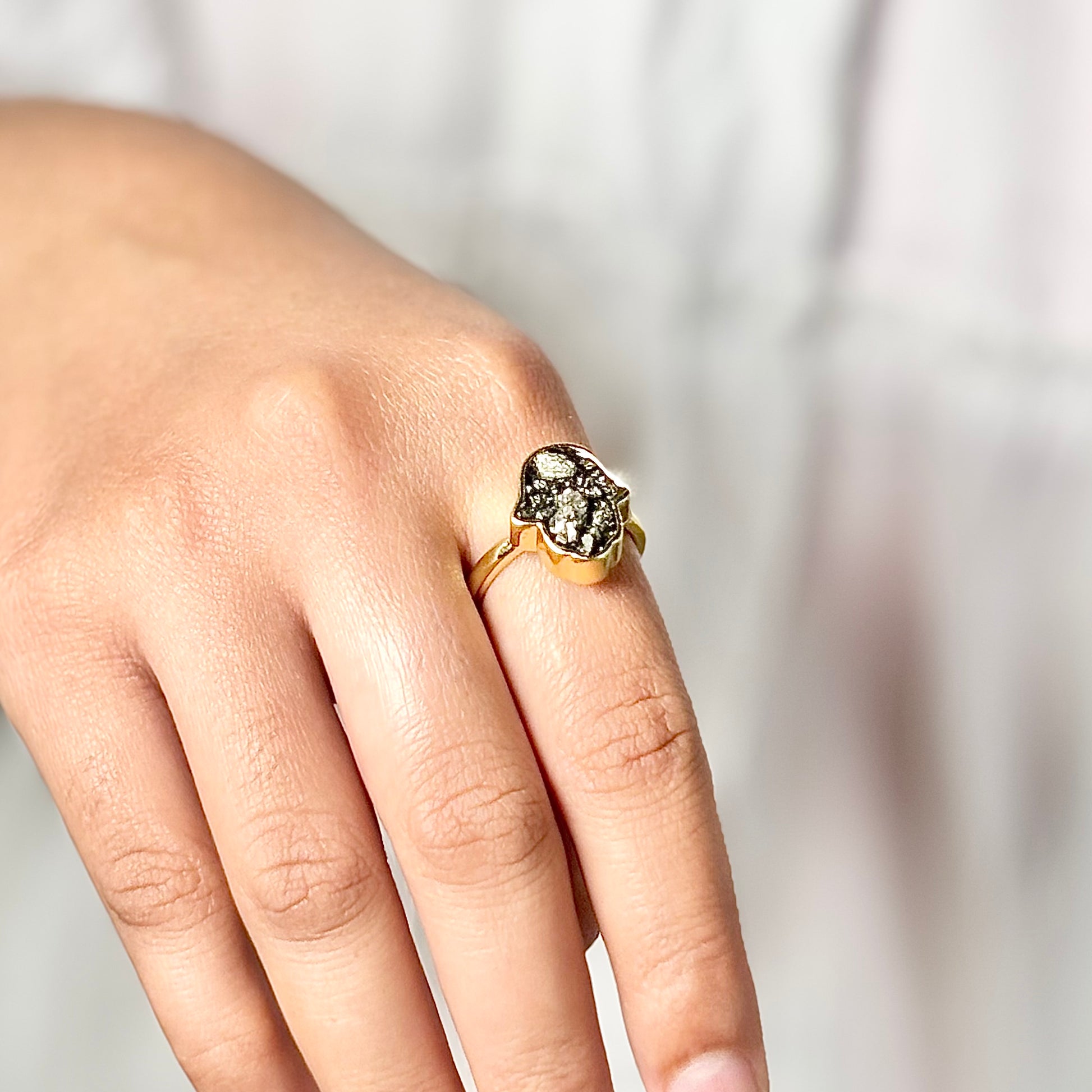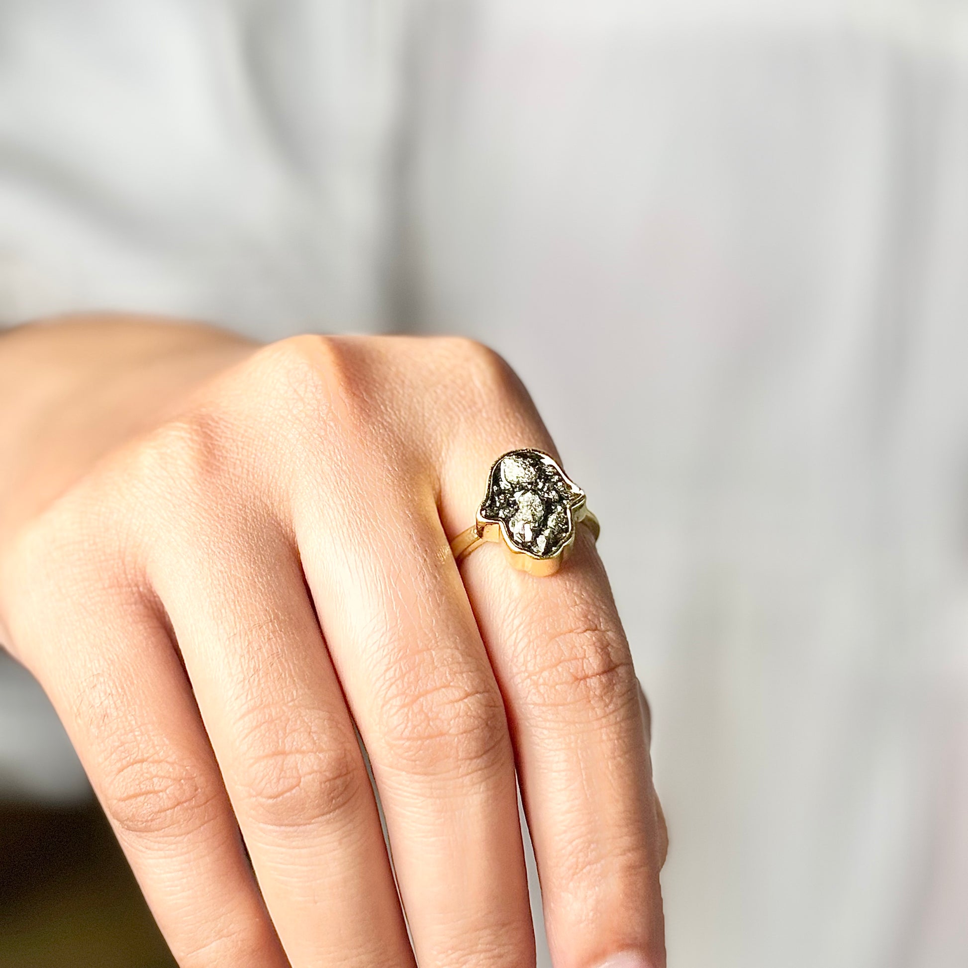 Pyrite Hamsa Adjustable Ring – Protection, Prosperity & Positive Energy