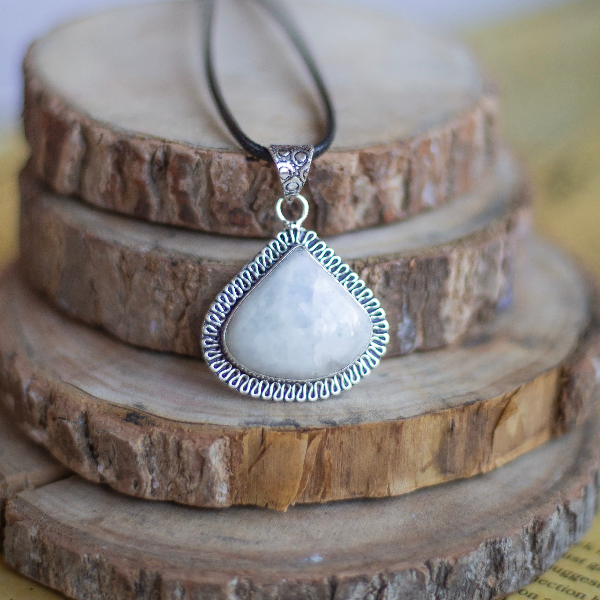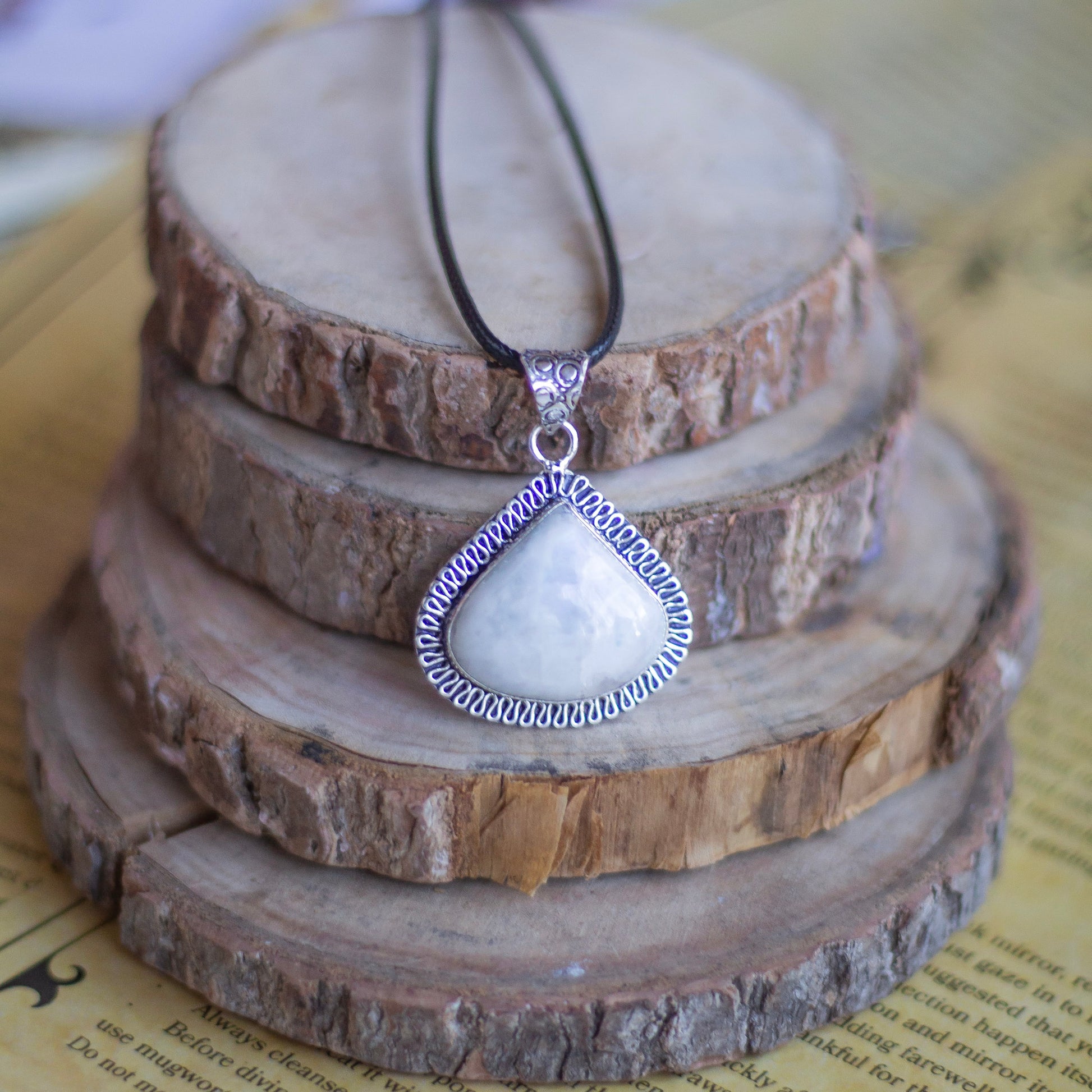 Rainbow moonstone Oxidised Pendant with Cord | Cultivates Compassion & empathy