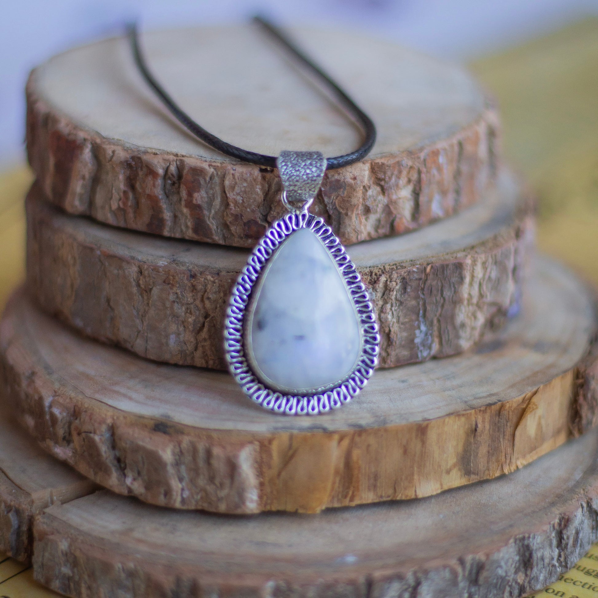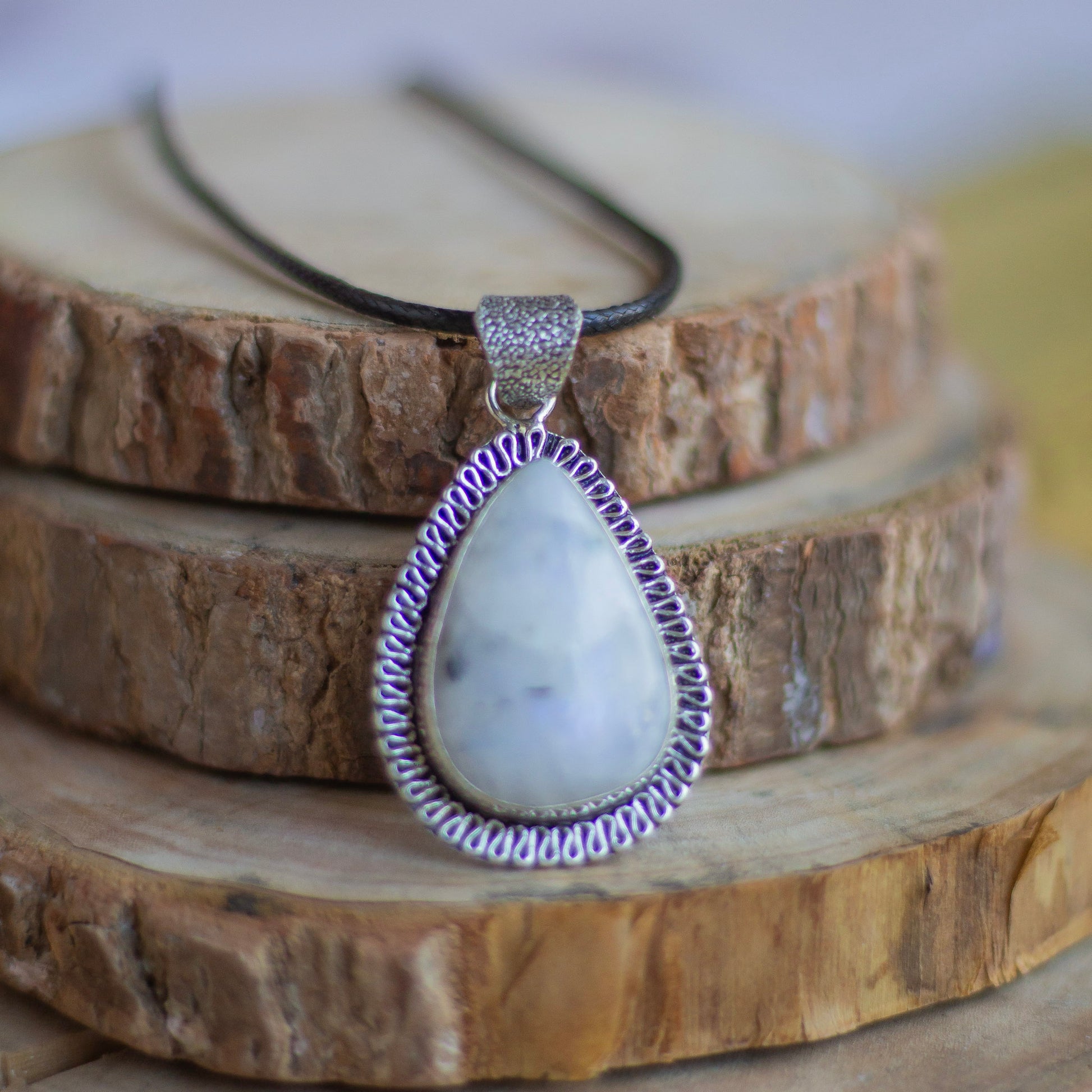 Rainbow moonstone Oxidised Pendant with Cord | Cultivates Compassion & empathy
