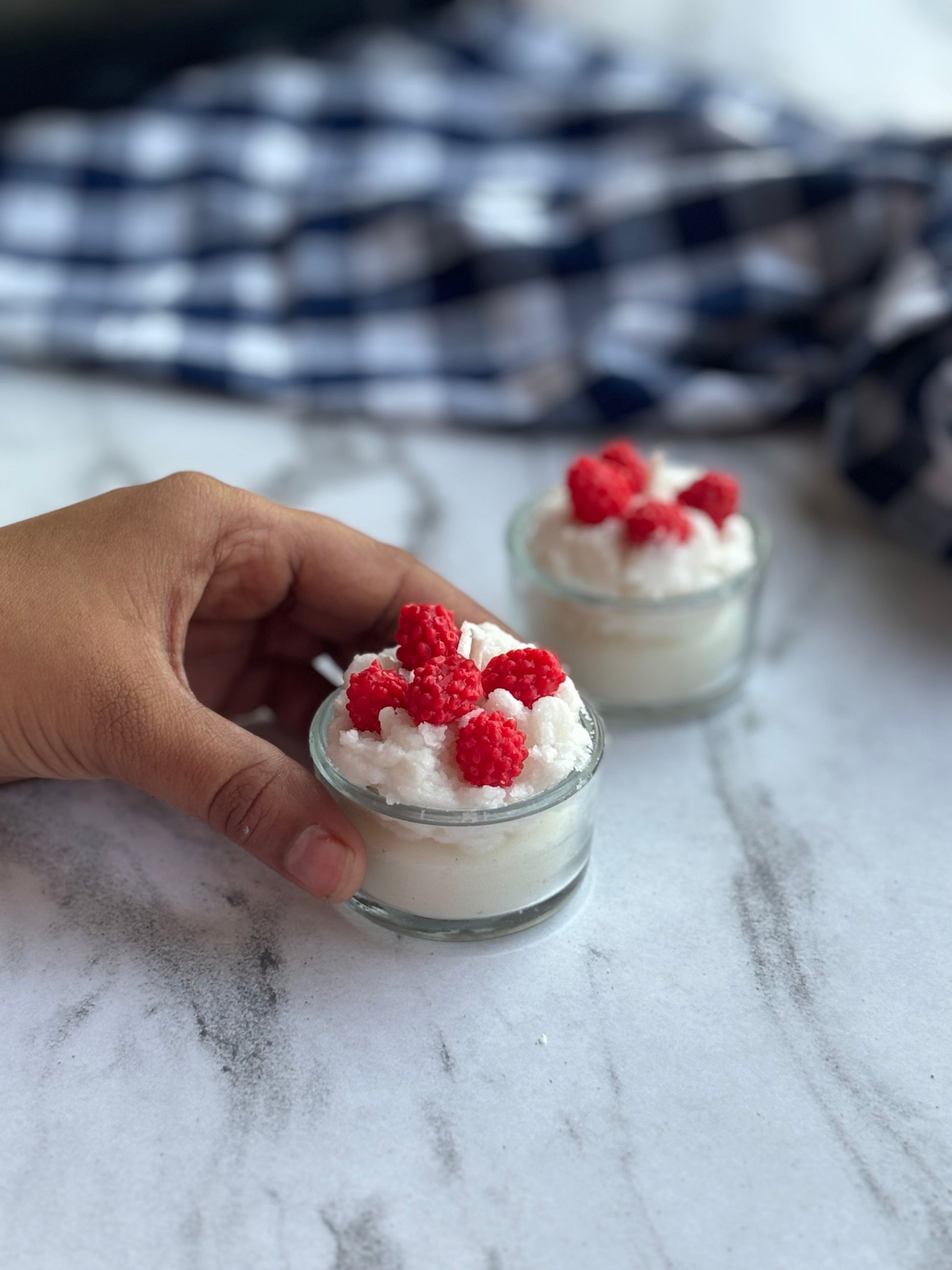 Experience the cozy and wonder of winter with our Raspberry Mini Cup Soy Scented Candles. Indulge in the delightful dessert candle with its fruity fragrance. Perfect for bookworms, gatherings, and creating a warm and inviting atmosphere. Pack of 2 for double the enjoyment.