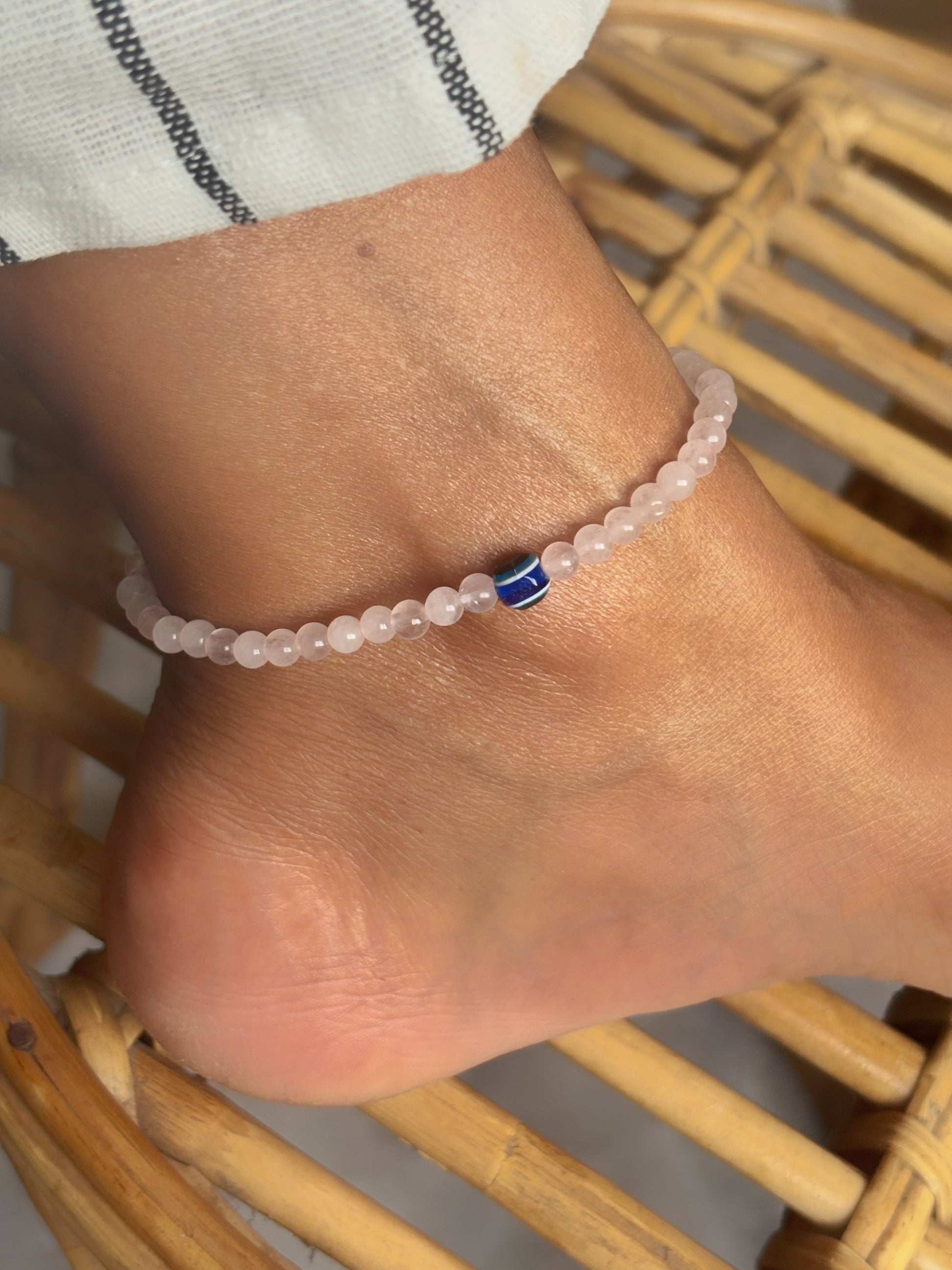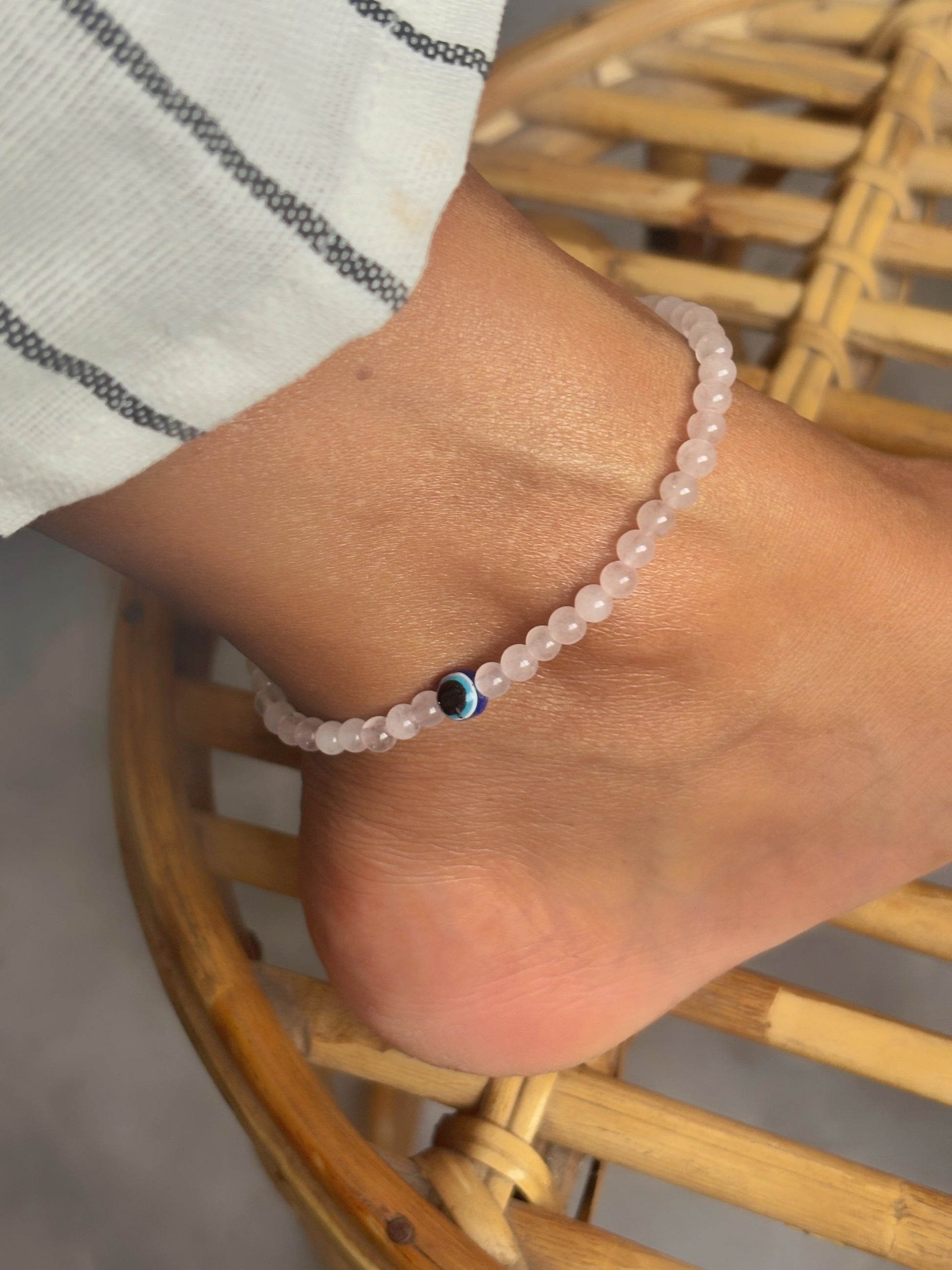Rose Quartz with Evil Eye Bead Anklet - 4mm | Stone of Love & Self Love