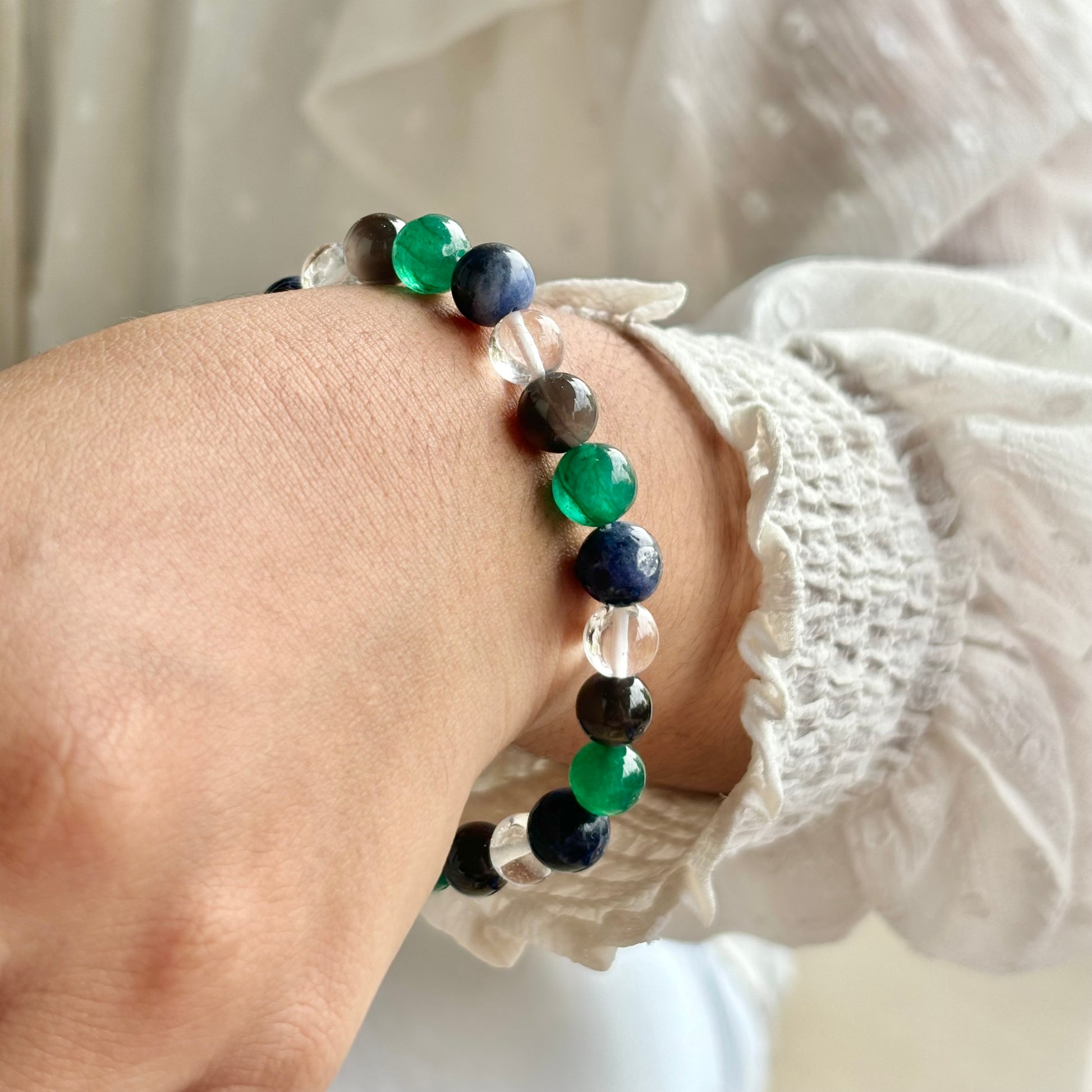 Combination of Clear Quartz, Sodalite, Green Jade & Black Tourmaline beads