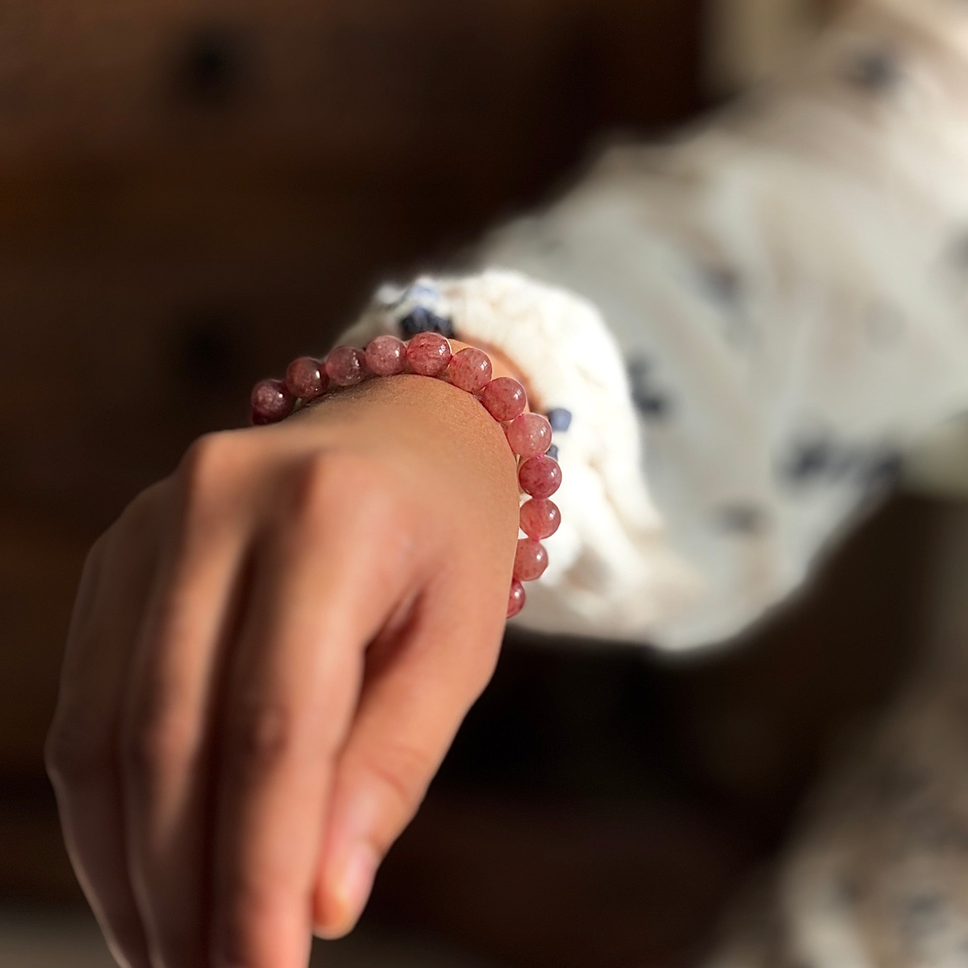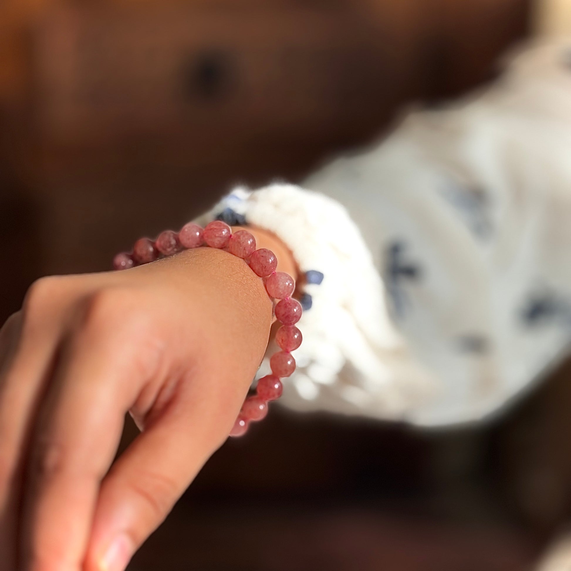 Strawberry Quartz Bead Bracelet - 8mm | Helps with Feeling of Stress, Depression & worry