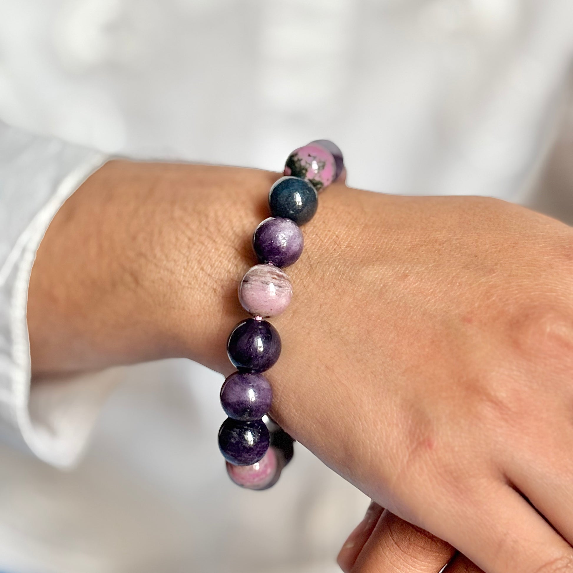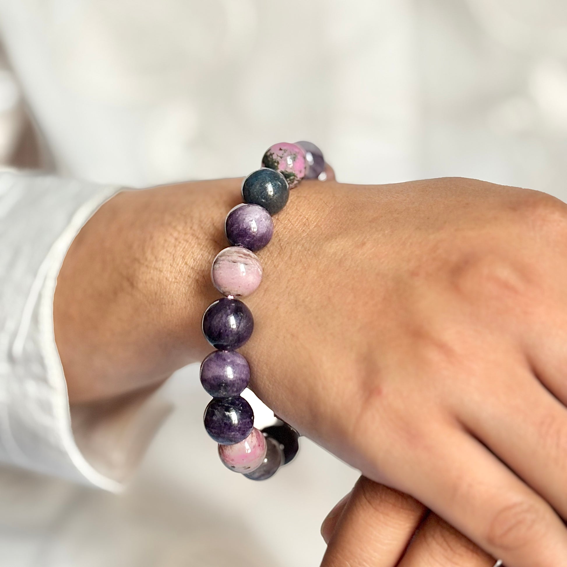 Superior Quality Sugilite Bead Bracelet- 12mm ( More Purple & Pink Colour Inclusion ) | Stimulate Crown Chakra, Enhance Intution & Spiritual Awarness