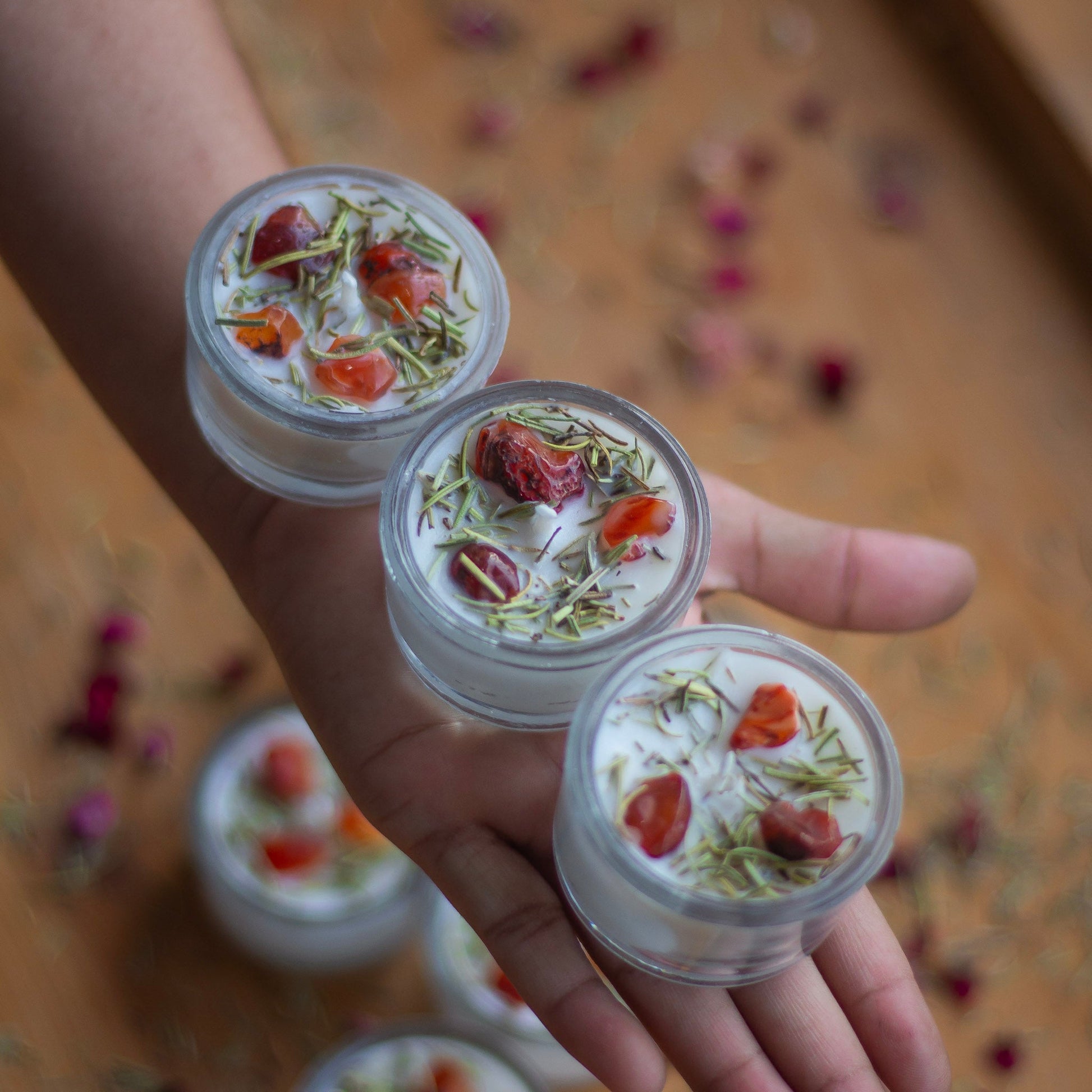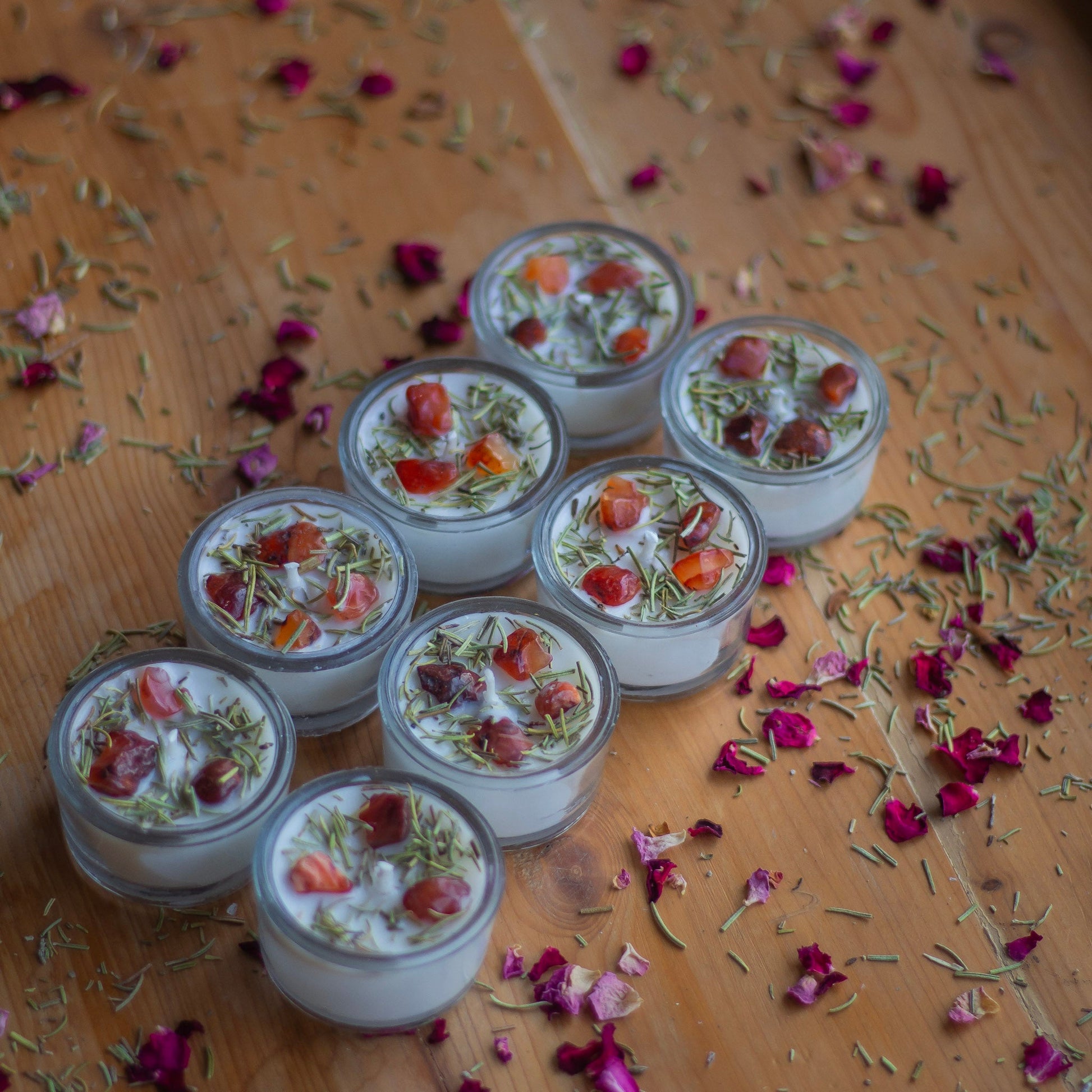 Orange Carnelian + Rosemary Soy Wax Tealight Candle - Set of 8 | Available in Glass Container & Refill