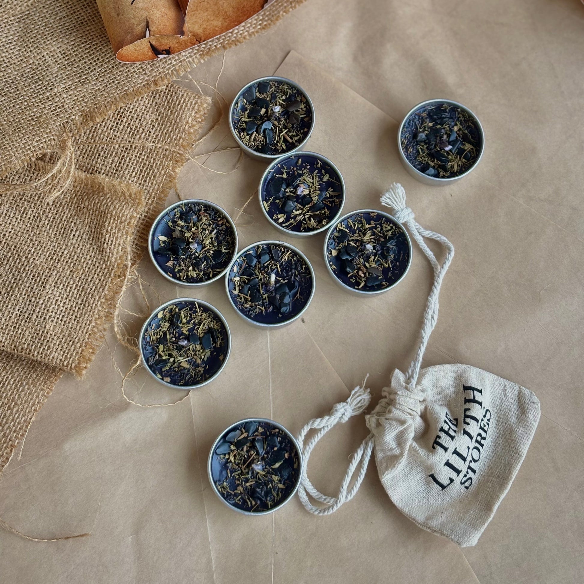 Hand-poured using natural soy wax, each tealight contains approximately 12 g wax and offers a clean, steady burn. The addition of Black Tourmaline makes it a meaningful piece for altar setups, intention practices, or everyday décor