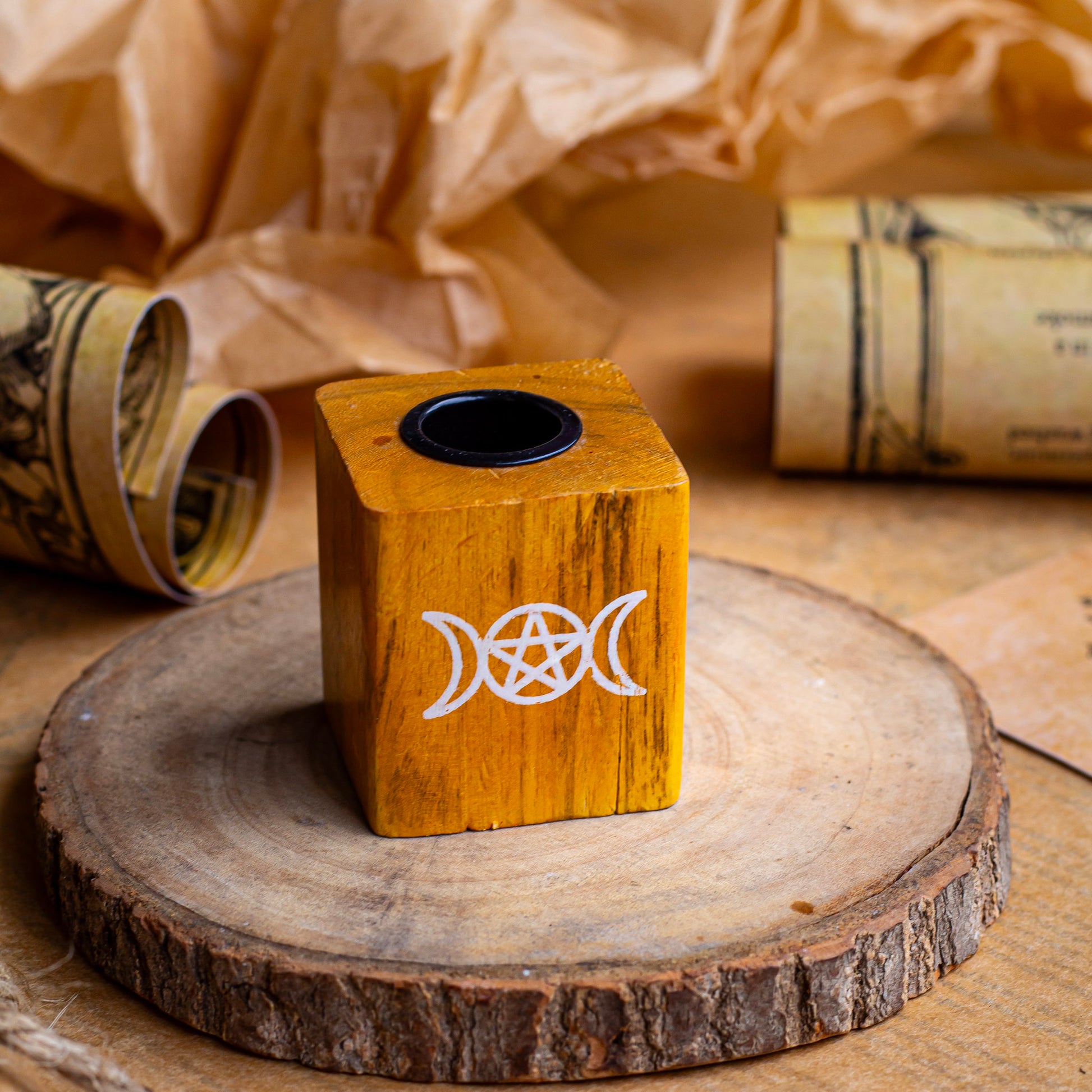 This wooden chime candle holder features a beautiful pentacle print, adding a touch of magic to any space. Made from high-quality materials, it is sturdy and durable, making it a long-lasting addition to your decor. Perfect for holding chime candles, it creates a calming and peaceful ambiance.